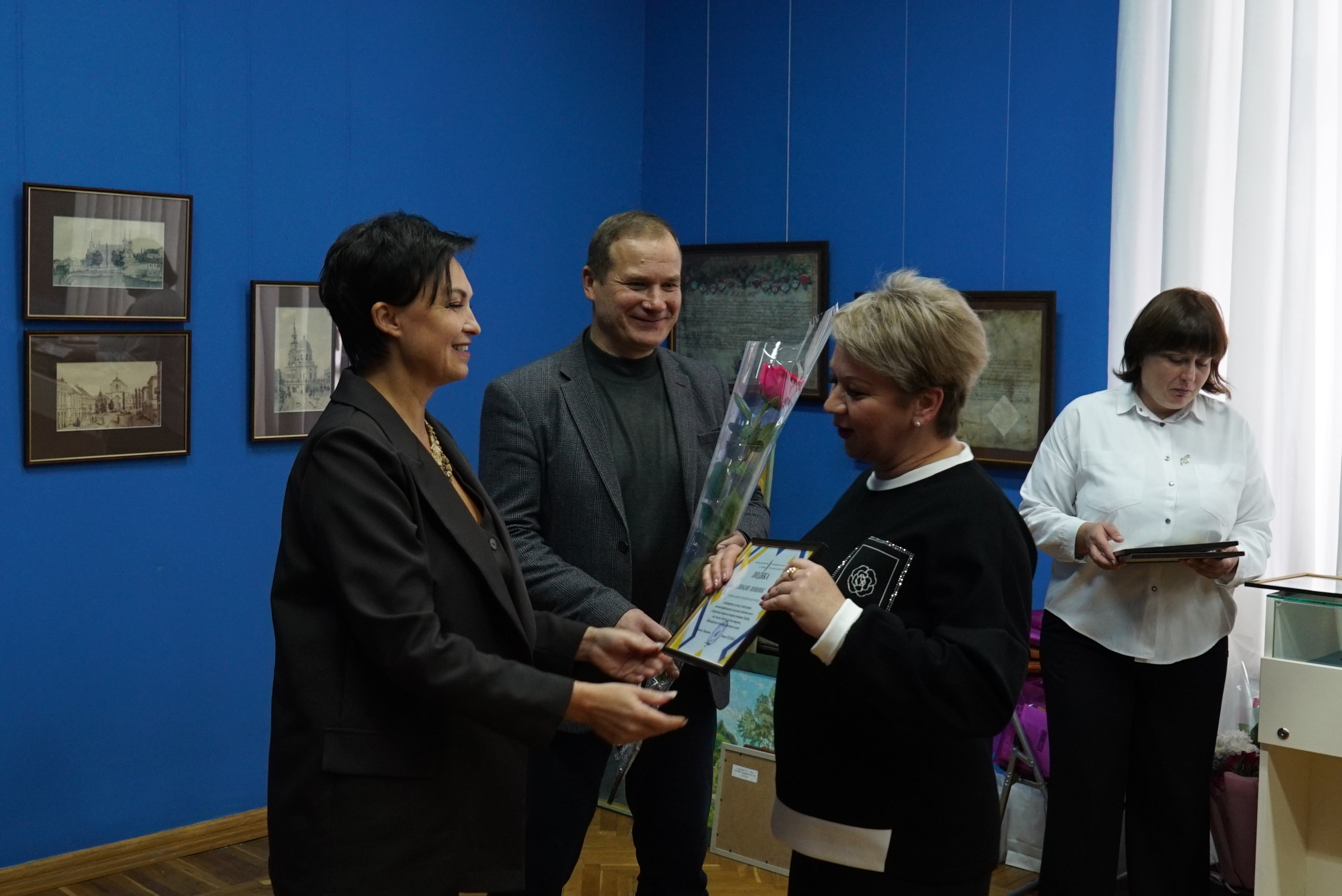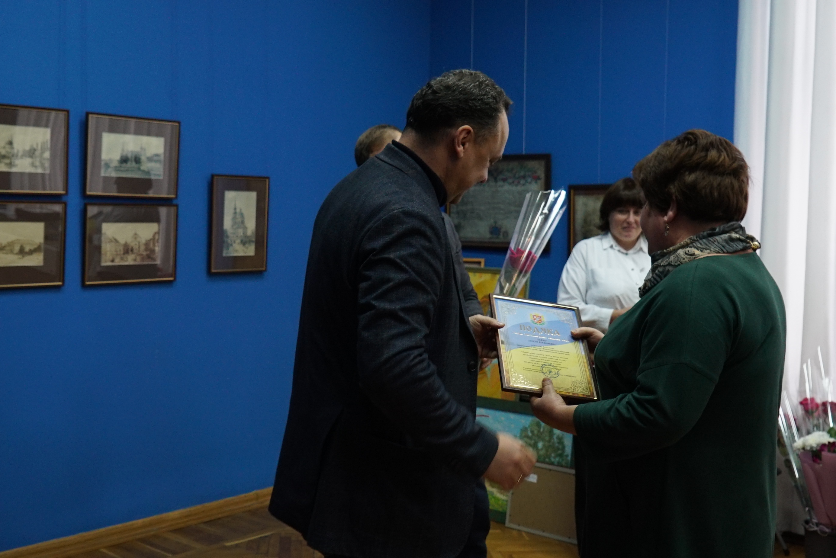 160 років Житомирському обласному краєзнавчому музею 28 жовтня у Житомирському обласному краєзнавчому музеї Житомирської обласної ради відбулися урочистості з нагоди 160-річчя від дня його заснування. Захід зібрав представників обласної та міської влади, музейників, науковців, митців, краєзнавців, археологів і громадськість. Житомирський обласний краєзнавчий музей — один із найстаріших культурних закладів України. Завдяки наполегливій праці багатьох поколінь музейників він став центром збереження й популяризації нашої культурної спадщини. Сьогодні працівники музею гідно продовжують традиції тих, хто розвивав його, відкриваючи нові сторінки минулого й надихаючи сучасників. Від імені першого заступника голови Житомирської обласної ради Олега Дзюбенка та депутатського корпусу колектив музею привітав керуючий справами виконавчого апарату обласної ради Віктор Назар. Він подякував працівникам за їхню працю, збереження історії, побажав подальших успіхів і натхнення, а також вручив відзнаки обласної ради. «Музей — це місце, де з нами розмовляє минуле. І поки ця розмова триває — ми маємо зв’язок зі своїм корінням, своєю землею, відчуваємо свою ідентичність. Дякуємо всім, хто віддано зберігає цю пам'ять і передає її далі», — сказав Віктор Назар. З нагоди 160-річчя від дня заснування Житомирського обласного краєзнавчого музею, за багаторічну сумлінну і плідну працю, високий професіоналізм, вагомий особистий внесок у збереження історико-культурної спадщини України Подякою голови Житомирської обласної ради нагороджено: МЕРУНКО Олесю Михайлівну, старшого наукового співробітника відділу фондів комунального закладу «Житомирський обласний краєзнавчий музей» Житомирської обласної ради; КАМІНСЬКУ Ірину Володимирівну, молодшого наукового співробітника сектору обліку фондів комунального закладу «Житомирський обласний краєзнавчий музей» Житомирської обласної ради; ПЕЧЕНЮКА Петра Петровича, завідувача відділу природи комунального закладу «Житомирський обласний краєзнавчий музей» Житомирської обласної ради; ХОЦЬКУ Вацлаву Антонівну, музейного доглядача художнього відділу комунальногозакладу «Житомирський обласний краєзнавчий музей» Житомирської обласної ради; ЛЕВКО Олену Вікторівну, головного бухгалтера музею комунального закладу «Житомирський обласний краєзнавчий музей» Житомирської обласної ради; ІЛІНБАЄВУ Ірину Анатоліївну, наукового співробітника історичного відділу комунального закладу «Житомирський обласний краєзнавчий музей» Житомирської обласної ради. Працівників музею також привітали заступниця начальника Житомирської ОВА Наталія Арендарчук, начальниця Управління культури та туризму Житомирської ОВА Тетяна Руденька, представники обласної організації Національної спілки краєзнавців України, Національної спілки художників України, громадських організацій та освітніх установ. Завершенням урочистостей стало відкриття виставки «Відреставровані шедеври з колекції Житомирського обласного краєзнавчого музею», де представлено унікальні експонати після реставрації. Довідково. Житомирський обласний краєзнавчий музей заснований у жовтні 1865 року. Основу музейного зібрання тоді склала приватна колекція місцевих гірських порід і мінералів волинського губернатора Михайла Черткова. З 1911 року 