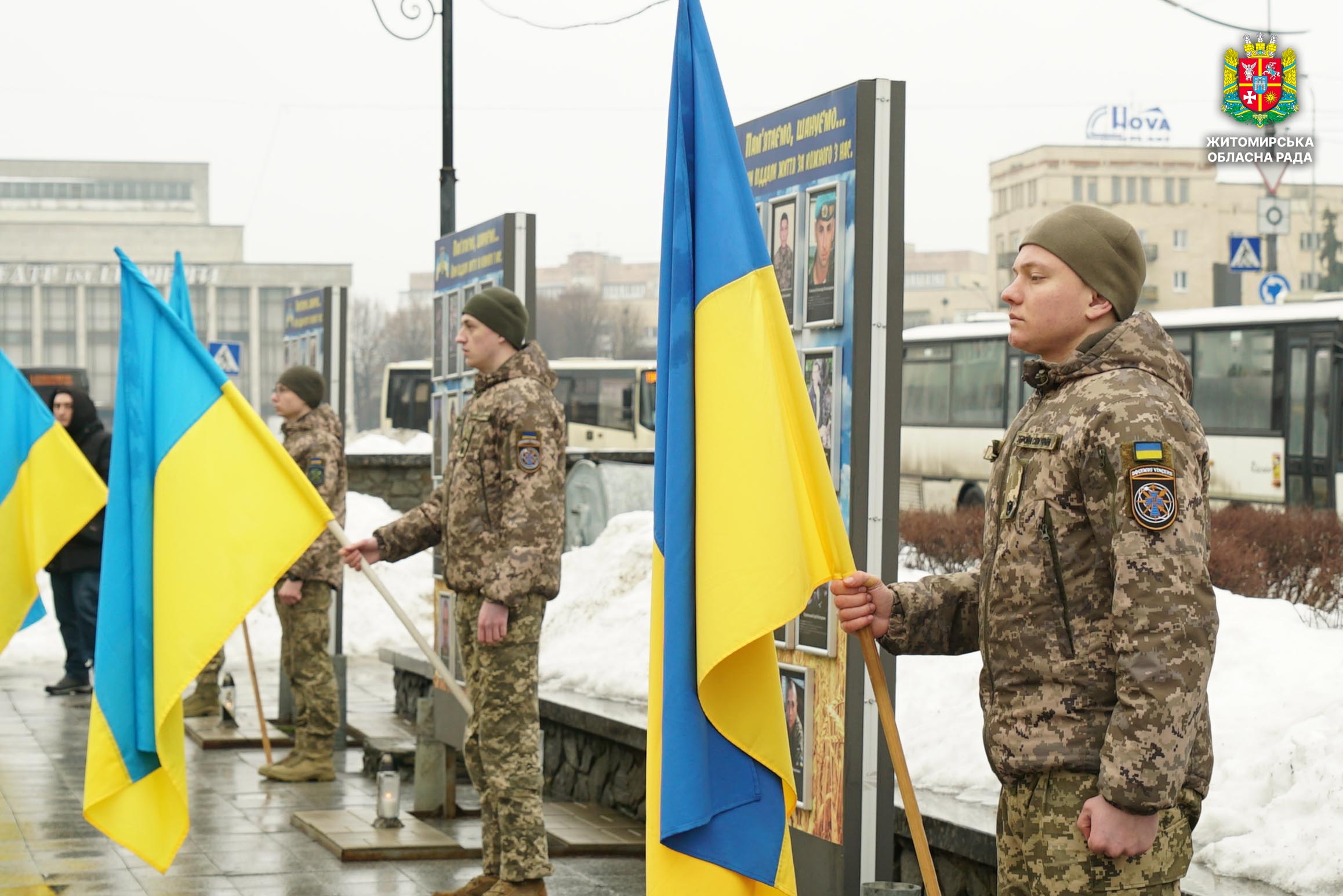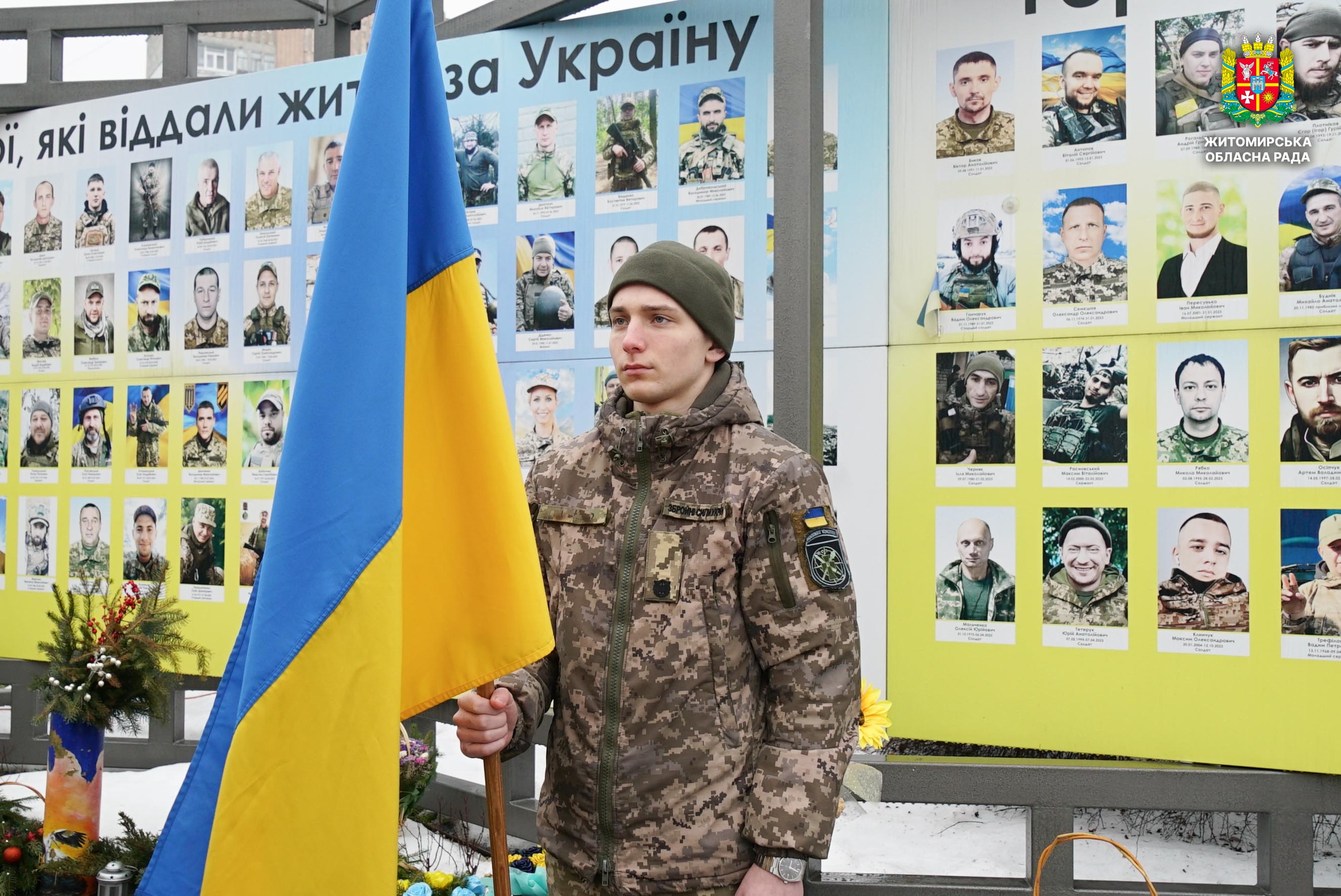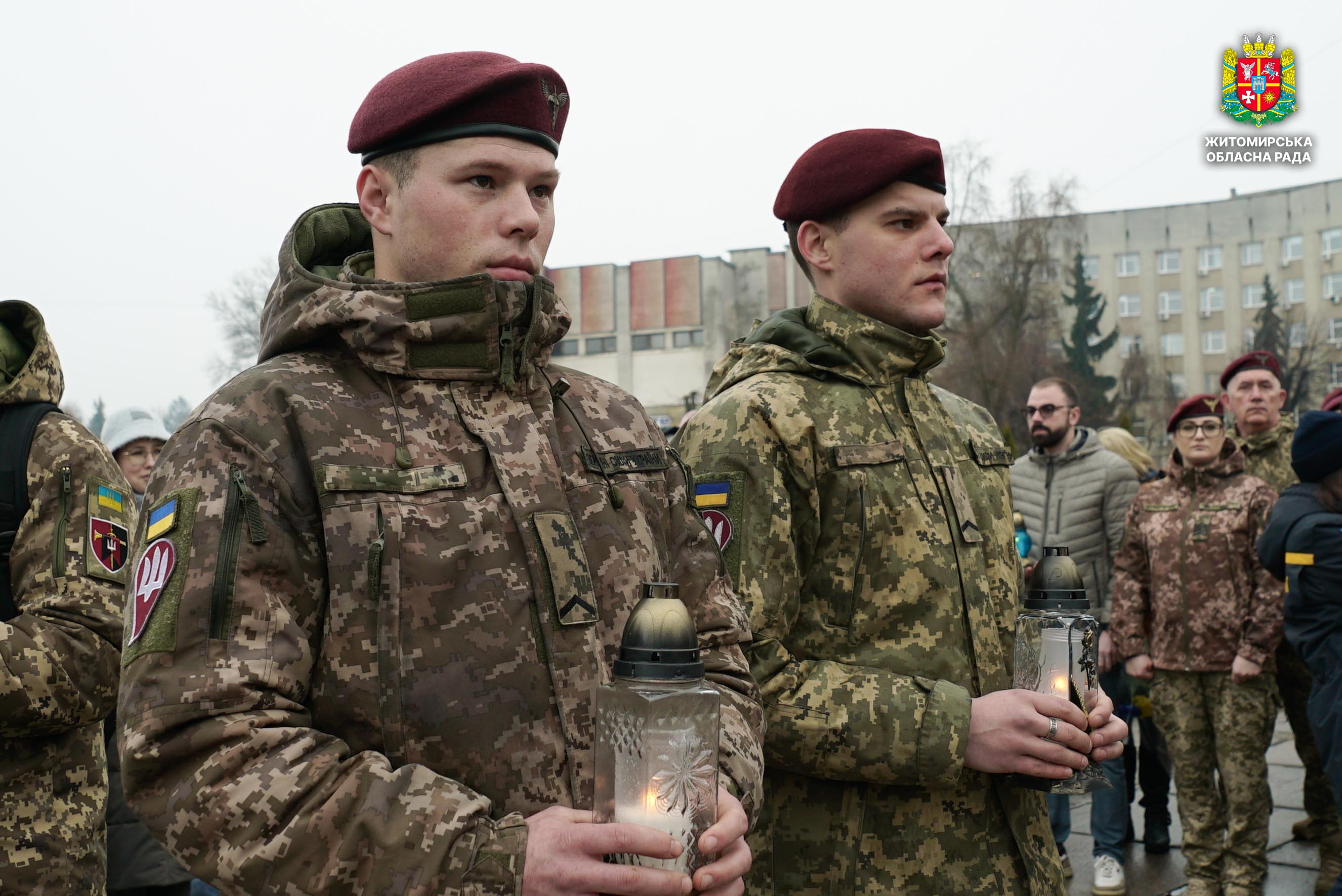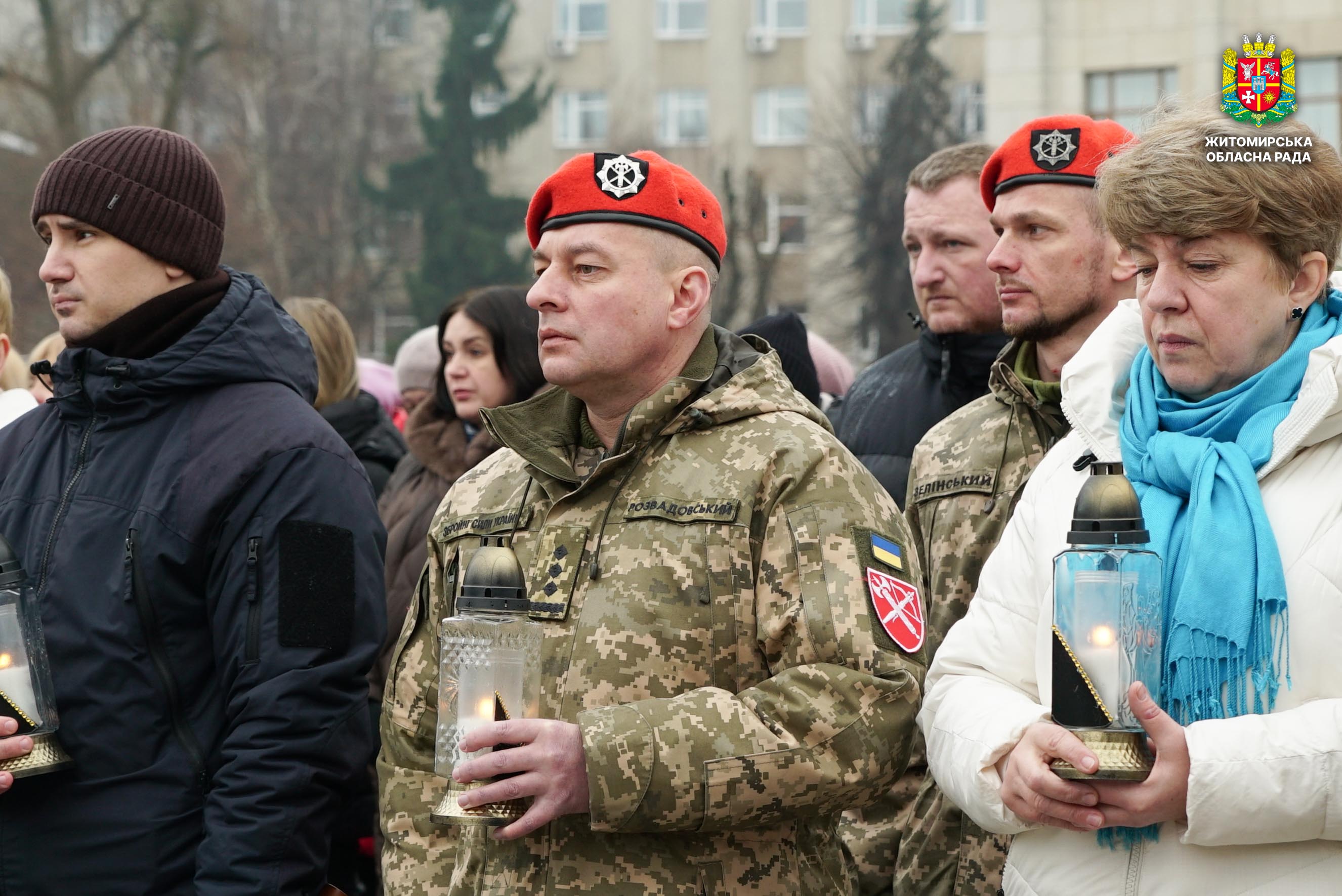 Чотири роки незламності: пам’ять, молитва і вдячність Героям 24 лютого 2026 року — четверта річниця повномасштабного вторгнення росії в Україну. Цей день про тих, хто віддав життя за свободу країни, і про силу народу, який встояв і продовжує боротися за своє майбутнє. Символічно, що цього дня відзначають Національний день молитви — день духовної єдності та спільного прохання про мир, захист і перемогу. З нагоди четвертої річниці повномасштабного російського вторгнення та Національного дня молитви у Житомирі відбулися пам’ятні заходи. У вшануваннях взяли участь перший заступник голови Житомирської обласної ради Олег Дзюбенко, керівництво Житомирської обласної військової адміністрації та Житомирської міської ради, представники виконавчого апарату обласної ради, духовенство, військові, правоохоронці, родини загиблих та громадськість. Меморіальний захід, сповнений скорботи та вдячності, пройшов на Алеї Слави Героїв. Присутні вшанували пам’ять полеглих воїнів хвилиною мовчання, спільно виконали Державний Гімн України у супроводі оркестру 199-го навчального центру Десантно-штурмових військ ЗСУ та встановили лампади до пам'ятних стендів. Представники Ради Християнських Церков Житомирщини провели поминальний молебень. Учасники заходу також вшанували пам’ять Героїв біля пам’ятного знака «Захисникам України у війні з російським агресором» на майдані Перемоги та меморіальних стендів загиблих і померлих учасників Антитерористичної операції та Операції об’єднаних сил. Опісля вшанування продовжилися у Житомирській обласній філармонії імені Святослава Ріхтера, де відбувся духовно-мистецький захід під назвою «Єдність у вірі — сила в боротьбі». Програма поєднала музику, слово та спільну молитву за Україну. «Сьогодні ми вшановуємо наших Героїв, які віддали життя за свободу України, і дякуємо всім, хто продовжує цю боротьбу. Наша сила — у єдності, у підтримці одне одного та вірі, яка не дає нам зламатися навіть у найтемніші часи. Поки ми разом — Україна непереможна», — зазначив перший заступник голови Житомирської обласної ради Олег Дзюбенко. Завершився захід проникливою композицією «Моє ім’я – Україна», що стала символом любові до Батьківщини та віри у її майбутнє.