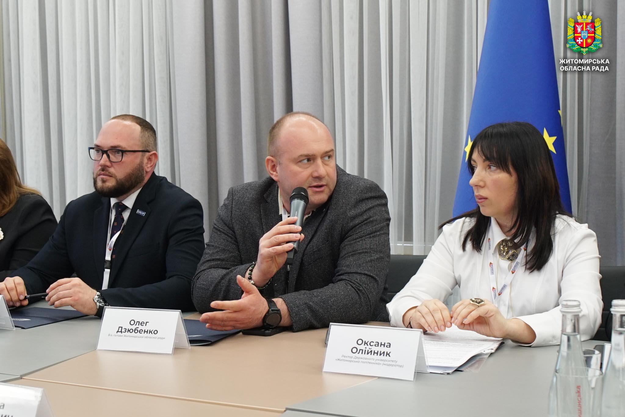 Олег Дзюбенко взяв участь у регіональному форумі з дуальної освіти 3 квітня у Державному університеті «Житомирська політехніка» відбувся форум «Дуальна освіта: інтеграція освіти та ринку праці», участь у якому взяв перший заступник голови Житомирської обласної ради Олег Дзюбенко. Захід об’єднав представників органів влади, освітян, бізнесу та експертів для обговорення розвитку дуальної освіти — ефективної моделі підготовки кадрів відповідно до потреб ринку праці. Форум відбувся за участі заступника Міністра освіти і науки України Миколи Трофименка, начальника Житомирської обласної військової адміністрації Віталія Бунечка, заступниці Житомирського міського голови Світлани Ольшанської, керуючого директора напряму освіти, науки та інновацій BGV Group Management Віктора Євдокимова, в.о. ректора Поліського національного університету, депутата обласної ради Олега Скидана, ректорки Житомирського державного університету імені Івана Франка Галини Киричук. Захід модерувала ректорка Державного університету «Житомирська політехніка», депутатка обласної ради Оксана Олійник. У межах заходу відбулися три панельні дискусії. Перша була присвячена стратегічній взаємодії влади, бізнесу та освіти. Друга зосереджувалася на розвитку екосистеми дуальної освіти і досвіді закладів Житомирщини. Під час третьої обговорювалися потреби сектору економіки та роль бізнесу у підготовці кадрів. «Наразі наша держава живе в реаліях серйозних викликів — війна, потреба у швидкому відновленні, трансформація економіки. У цих умовах важливо, щоб освіта була максимально практичною. Завдяки дуальній освіті студенти набувають реальних навичок ще під час навчання та стають фахівцями, які потрібні ринку праці вже сьогодні»,— зазначив перший заступник голови Житомирської обласної ради Олег Дзюбенко. Він також наголосив, що дуальна освіта має охоплювати не лише заклади вищої освіти, а й професійно-технічну та передвищу освіту, адже ці рівні формують основу кадрового потенціалу. Окрім того, у своєму виступі Олег Дзюбенко підкреслив важливість завершення реформи професійно-технічної освіти, щоб вона відповідала запитам ринку праці.