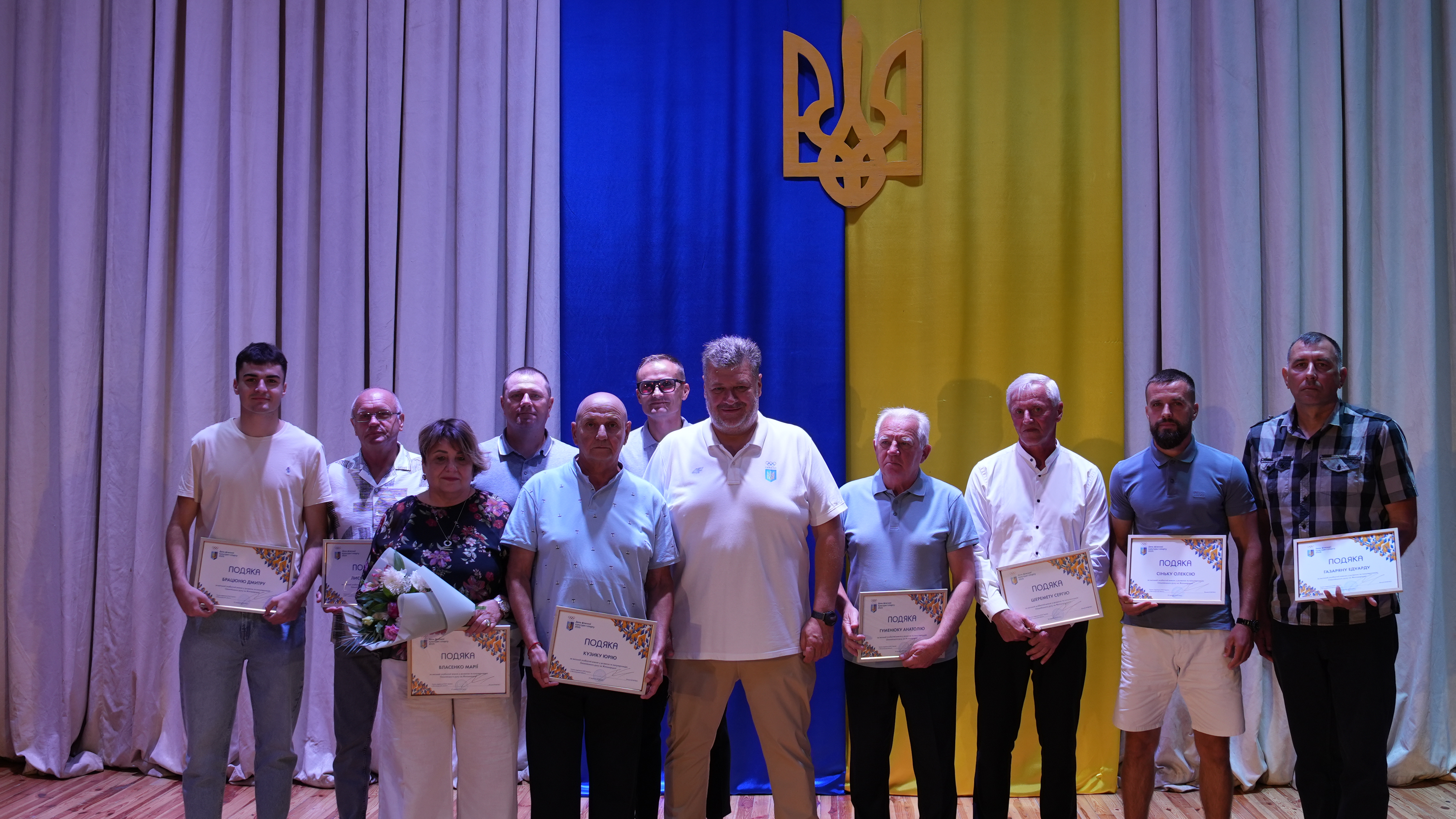 Спортивну спільноту Житомирщини відзначили з нагоди Дня фізичної культури і спорту 23 вересня у Бердичівському міському театрі на Європейській відбулися урочистості з нагоди Дня фізичної культури і спорту за участі голови Національного олімпійського комітету України, олімпійського чемпіона Вадима Гутцайта. Привітати спортивну спільноту області та відзначити їхні досягнення завітали депутати Житомирської обласної ради, члени виконавчого комітету Відділення Національного олімпійського комітету України в Житомирській області – Олександр Дмитрук та Микола Григорович. Від імені першого заступника голови Житомирської обласної ради Олега Дзюбенка та всього депутатського корпусу Олександр Дмитрук і Микола Григорович подякували всім, хто своїми здобутками прославляє Житомирщину на спортивних аренах, а також тим, хто щоденною працею та наполегливістю сприяє розвитку спорту в області. За вагомий особистий внесок у розвиток фізичної культури і спорту на Житомирщині Подякою голови Житомирської обласної ради нагороджено: ГОЛОВЕНЬ Анастасію Русланівну, головну спеціалістку відділу фізичної культури та спорту Управління національно-патріотичного виховання, молоді та спорту Житомирської обласної військової адміністрації; ДЖАМАНА Ігоря Васильовича, начальника управління освіти, молоді та спорту Коростишівської міської ради; ПАЛАГІНА Андрія Ігоровича, в.о. директора комунального закладу «Житомирська обласна школа вищої спортивної майстерності» Житомирської обласної ради; ТЕЙРЕКОВСЬКОГО Сергія Дмитровича, тренера волейбольного клубу «Житичі-Полісся»; УКРАЇНЦЯ Леоніда Михайловича, директора Житомирської обласної дитячо-юнацької спортивної школи «Динамівець» Житомирської обласної ради; ХІЛЬЧЕНКА Адама Івановича, директора Житомирського обласного центру фізичного здоровʼя населення «Спорт для всіх». Під час урочистостей Президент Національного олімпійського комітету України Вадим Гутцайт відзначив представників спортивної галузі області подяками Національного олімпійського комітету за вагомий особистий внесок у розвиток та популяризацію Олімпійського руху. Серед нагороджених — депутати Житомирської обласної ради Олександр Дмитрук та Микола Григорович. Спортивну спільноту області також привітали начальник Житомирської ОВА Віталій Бунечко, начальник Управління молоді та спорту Житомирської ОВА Сергій Козловець, керівництво Бердичівського району. Після церемонії нагородження урочистості продовжилися на Центральній площі міста, де голова Національного олімпійського комітету України Вадим Гутцайт відкрив Всеукраїнський олімпійський урок з нагоди проведення Європейського тижня спорту в Україні. Для гостей свята підготували різноманітні спортивні локації, зокрема яскраві виступи юних гімнастів, показові виступи з фехтування, волейболу, вільної боротьби та інших видів спорту.