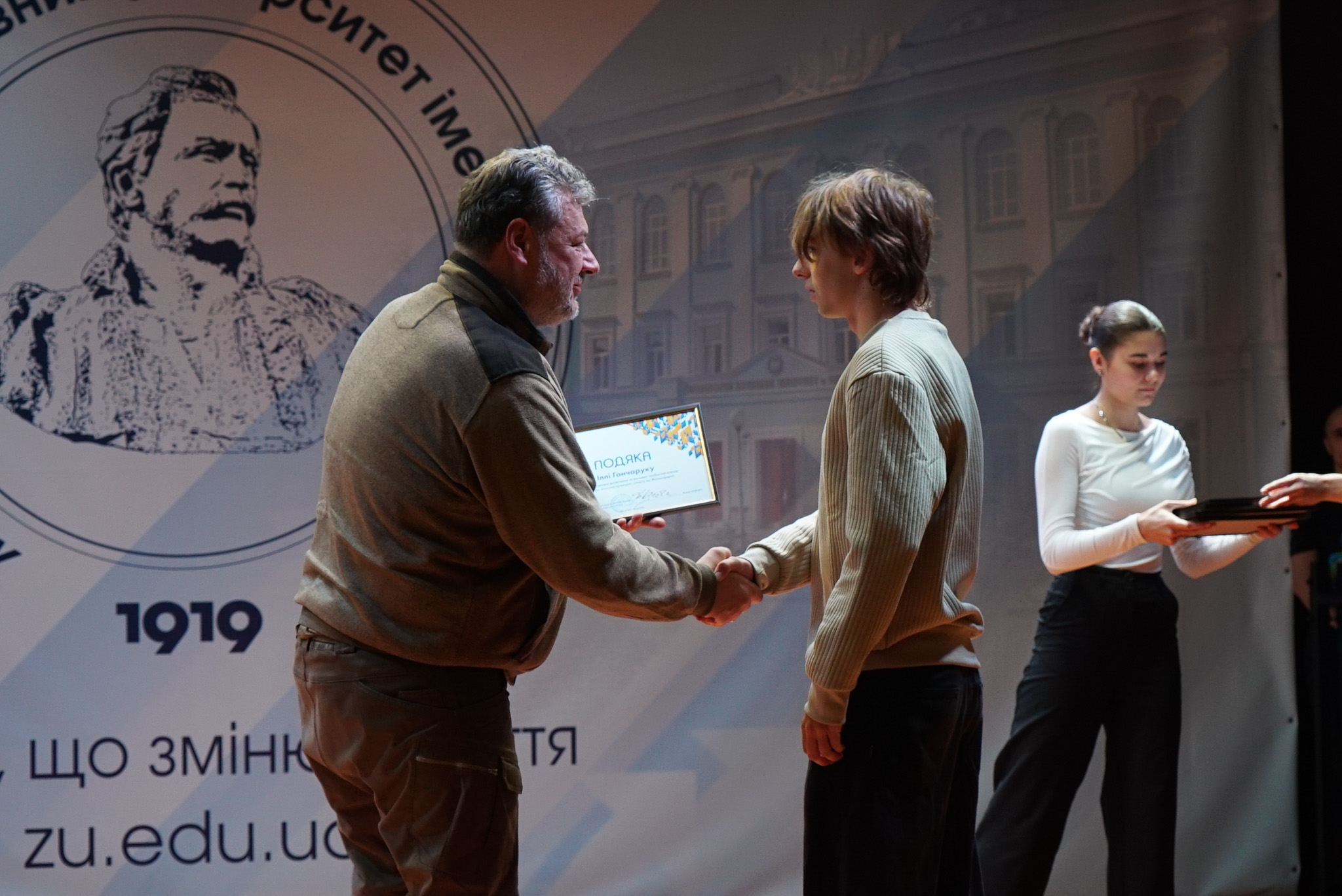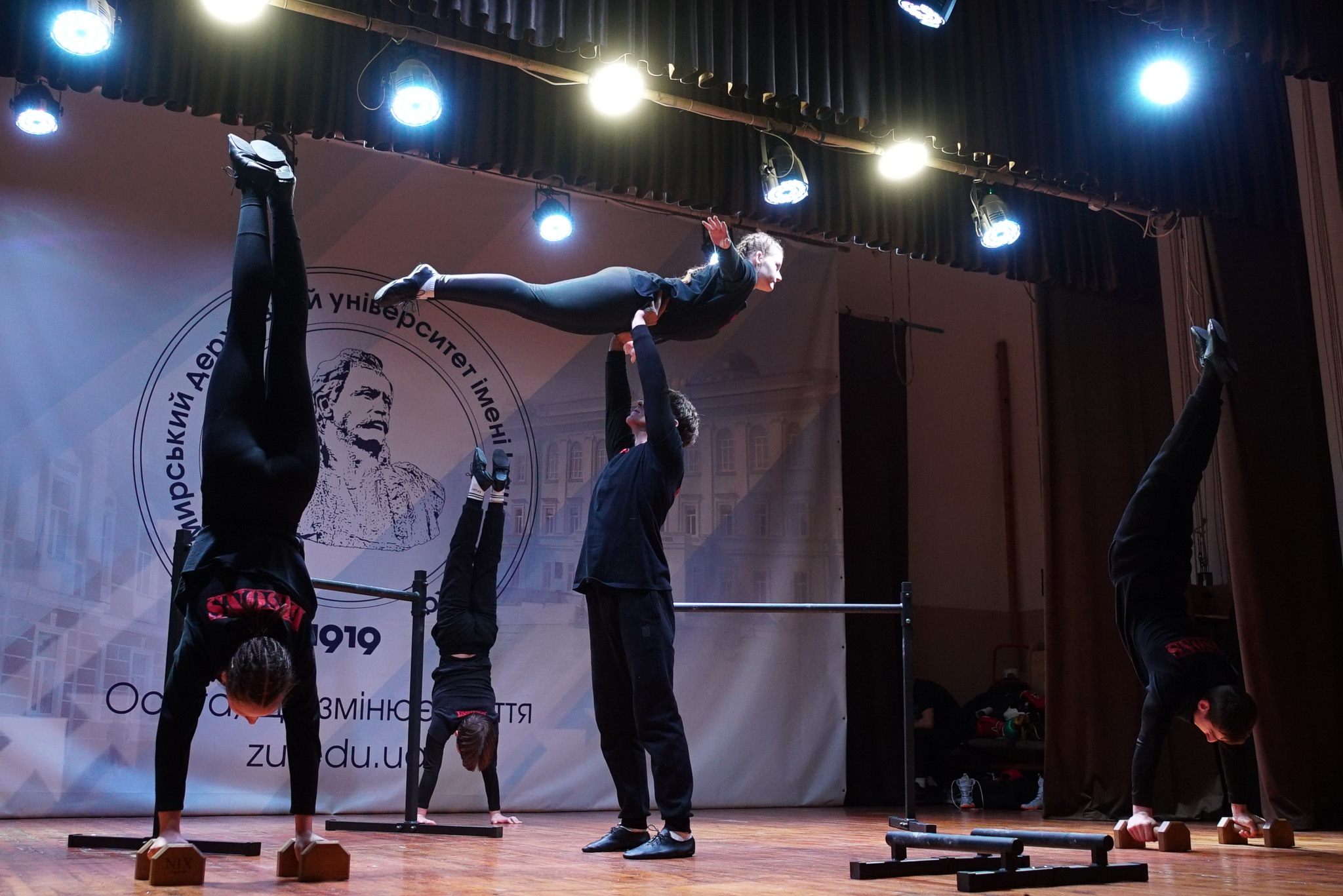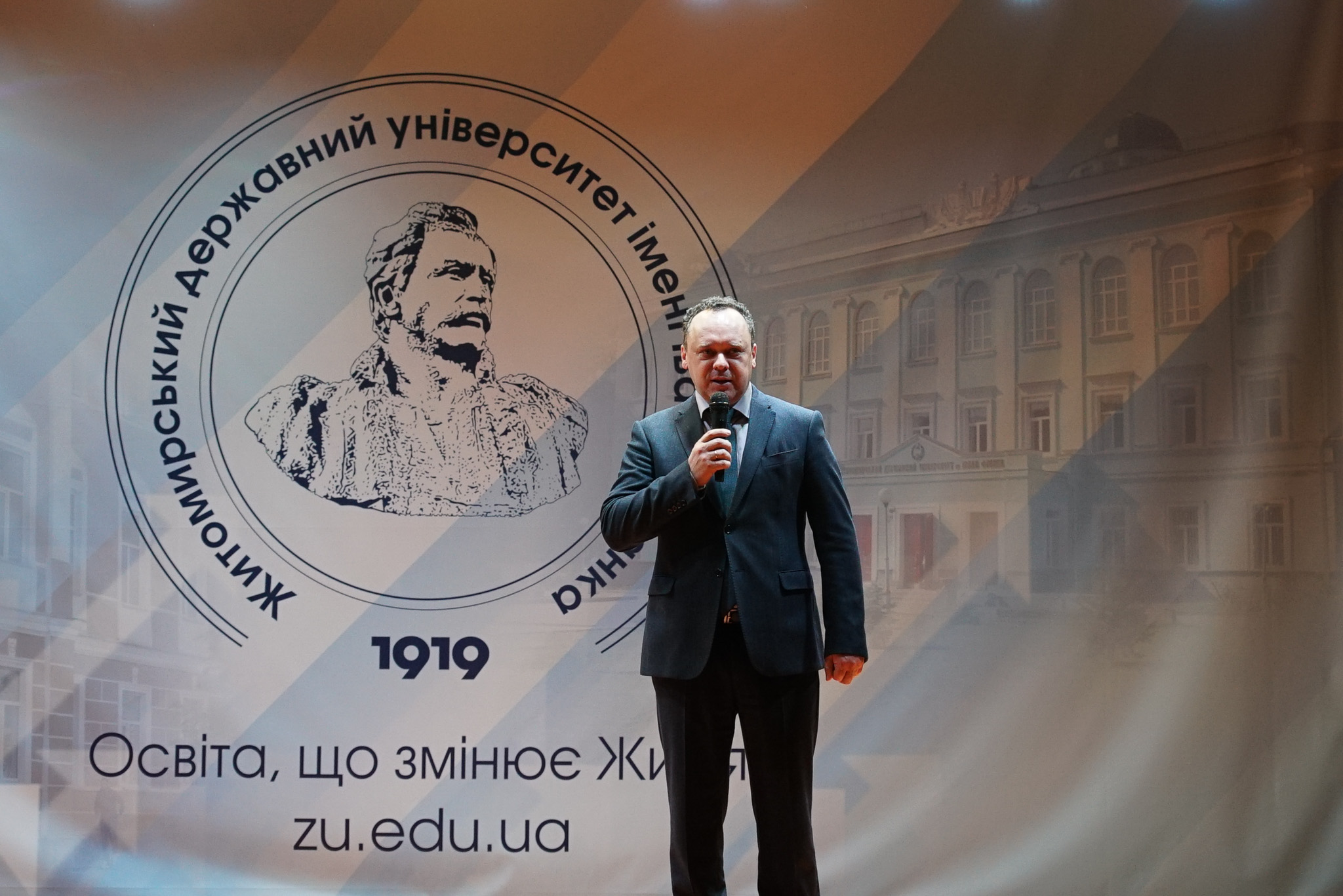 У ЖДУ імені Івана Франка відбувся "Вечір спортивної слави" 3 грудня в актовій залі Житомирського державного університету імені Івана Франка відбувся "Вечір спортивної слави" з нагоди 21-ї річниці факультету фізичного виховання і спорту. В урочистостях взяли участь представники обласної та міської влади, спортсмени, тренери, випускники, викладачі та студенти. За роки свого існування факультет став справжньою кузнею чемпіонів – переможців та призерів всеукраїнських, європейських та світових спортивних змагань, місцем формування характеру й професіоналізму. Серед почесних гостей свята був керуючий справами виконавчого апарату Житомирської обласної ради Віктор Назар. Від імені першого заступника голови обласної ради Олега Дзюбенка та всього депутатського корпусу він привітав спортивну родину факультету з річницею, а також вручив грамоти та подяки обласної ради. «Успіх у спорті народжується там, де є наполеглива праця, дисципліна і командна підтримка. Ваш колектив демонструє це протягом багатьох років, готуючи спортсменів, які здатні досягати високих результатів та прославляти Житомирщину на змаганнях різного рівня. Бажаю вам продовжувати цей шлях, здобувати нові перемоги та впевнено рухатися до найамбітніших цілей»,— зазначив у своїй вітальній промові Віктор Назар. Присутніх також привітали начальник Житомирської ОВА Віталій Бунечко, начальник Управління молоді та спорту Житомирської ОВА Сергій Козловець, ректорка ЖДУ імені Івана Франка Галина Киричук, декан факультету фізичного виховання і спорту Андрій Лайчук та інші гості.
