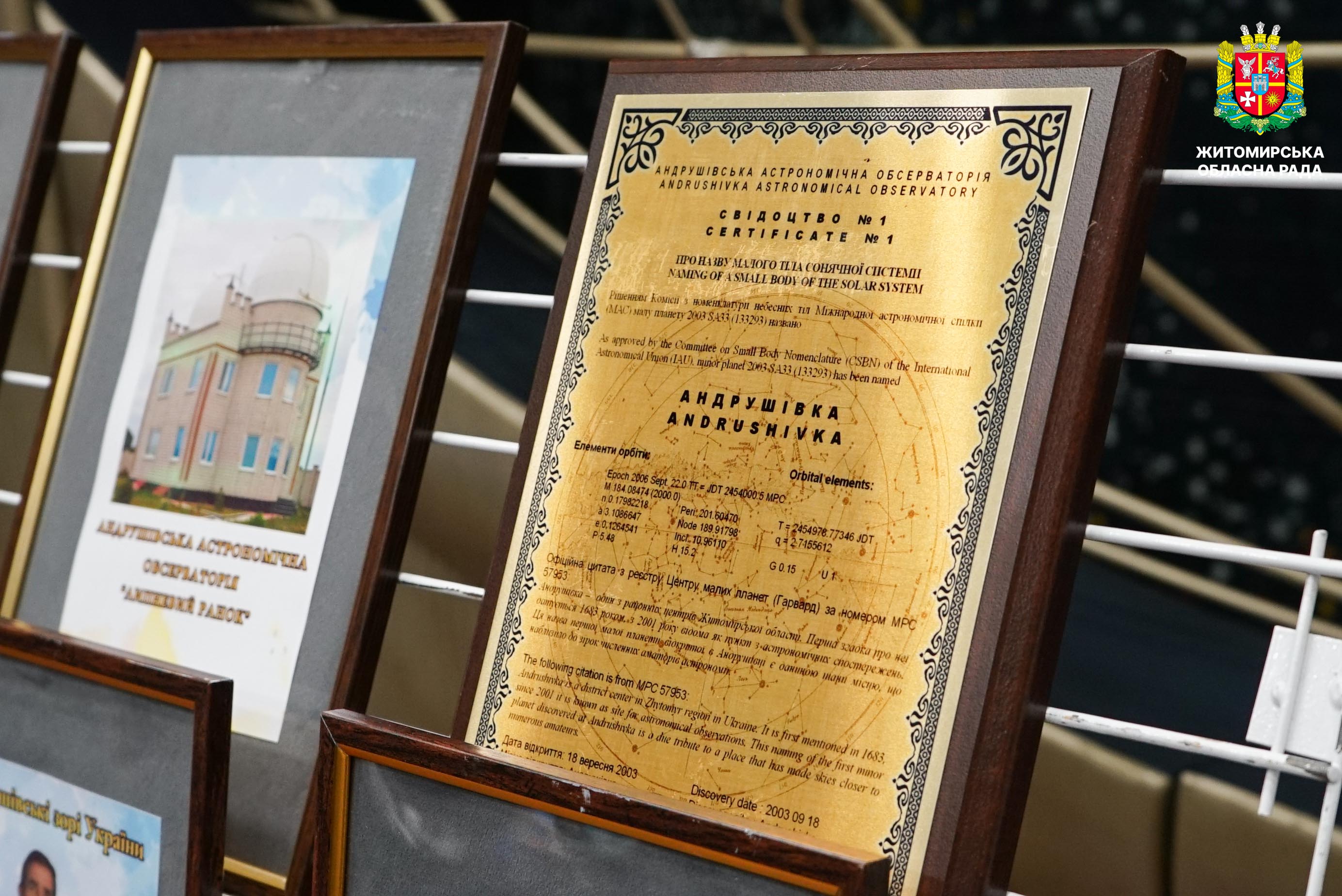У Житомирі відзначили 25-річчя Андрушівської астрономічної обсерваторії «Липневий ранок» 14 квітня у Національному музеї космонавтики імені Сергія Павловича Корольова відбулися урочистості з нагоди 25-річчя єдиної в Україні приватної астрономічної обсерваторії «Липневий ранок». Захід об’єднав представників наукової спільноти, органів влади, партнерів установи та громадськість. Зокрема, в урочистостях взяли участь депутат Житомирської обласної ради Олег Скидан, заступниця начальника Житомирської обласної військової адміністрації Наталія Арендарчук, начальниця Управління культури та туризму Житомирської ОВА Тетяна Руденька, керуючий справами виконавчого апарату Житомирської обласної ради Віктор Назар. Захід відкрила директорка Національного музею космонавтики імені С. П. Корольова, депутатка Житомирської обласної ради Ірина Дячук. Вона привітала засновника та директора обсерваторії Юрія Іващенка з ювілеєм установи від імені першого заступника голови Житомирської обласної ради Олега Дзюбенка та всього депутатського корпусу. У своєму виступі Ірина Дячук побажала подальших наукових здобутків, нових відкриттів та невичерпного натхнення. Також Ірина Дячук вручила Юрію Іващенку грамоту Житомирської обласної ради. Під час заходу учасники мали змогу ознайомитися з історією створення обсерваторії, її етапами розвитку та науковими досягненнями. Зокрема, директор обсерваторії Юрій Іващенко представив результати 25-річної діяльності установи. Окрім того, у межах заходу відкрито ювілейну виставку з архівними матеріалами та фотографіями. Довідково. Андрушівська астрономічна обсерваторія — перша приватна астрономічна обсерваторія в Україні, створена 12 квітня 2001 року в селі Гальчин поблизу міста Андрушівка на Житомирщині. Її засновником став український астроном-ентузіаст Юрій Іващенко, який започаткував проєкт із метою розвитку незалежних астрономічних спостережень в Україні та участі в міжнародних дослідженнях малих тіл Сонячної системи. Від початку діяльності обсерваторія стала одним із наукових центрів аматорської та напівпрофесійної астрономії в Україні. Вона спеціалізується на пошуку астероїдів, спостереженнях за космічним сміттям і об’єктами техногенного походження. Завдяки систематичним спостереженням тут було відкрито понад 300 астероїдів, частина з яких отримала назви, пов’язані з українською географією та культурою. У міжнародному науковому середовищі обсерваторія здобула визнання як один із активних центрів відкриття малих планет, увійшовши до світового рейтингу відкривачів астероїдів. Сьогодні обсерваторія продовжує роботу, використовуючи сучасне телескопічне обладнання та відкриваючи можливості для екскурсій, освітніх програм і популяризації астрономічних знань серед широкої аудиторії.