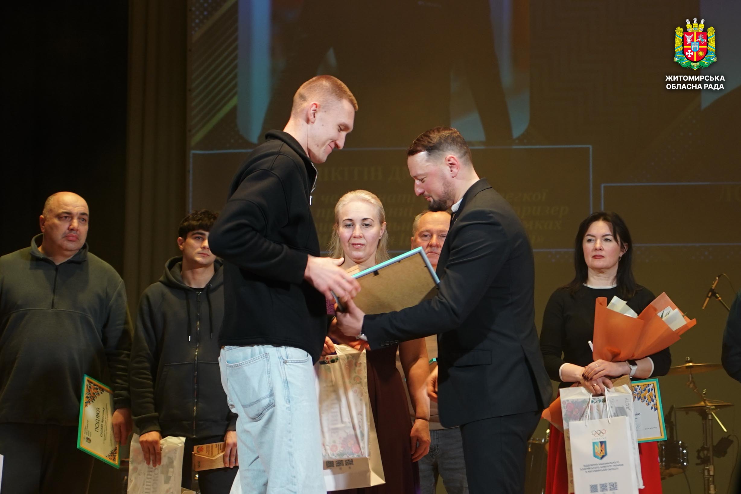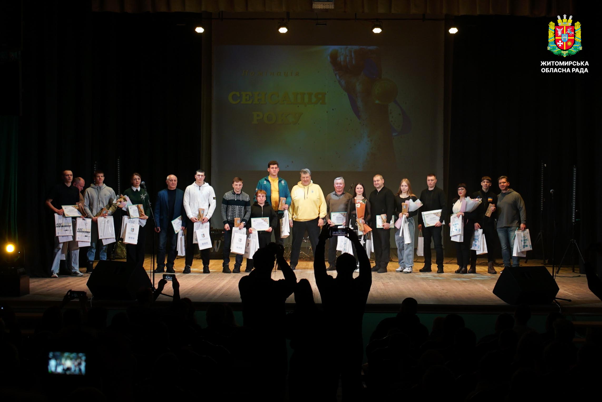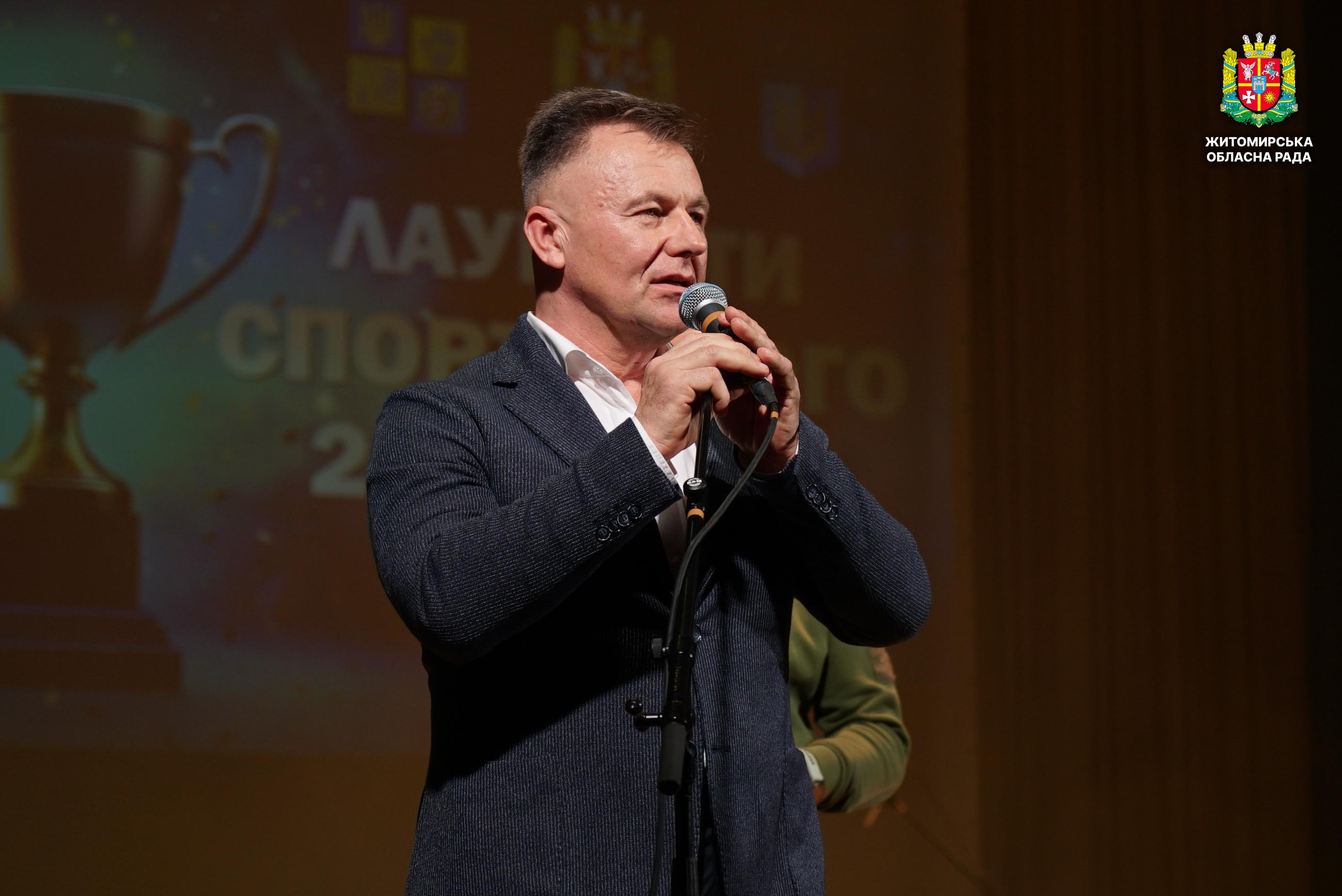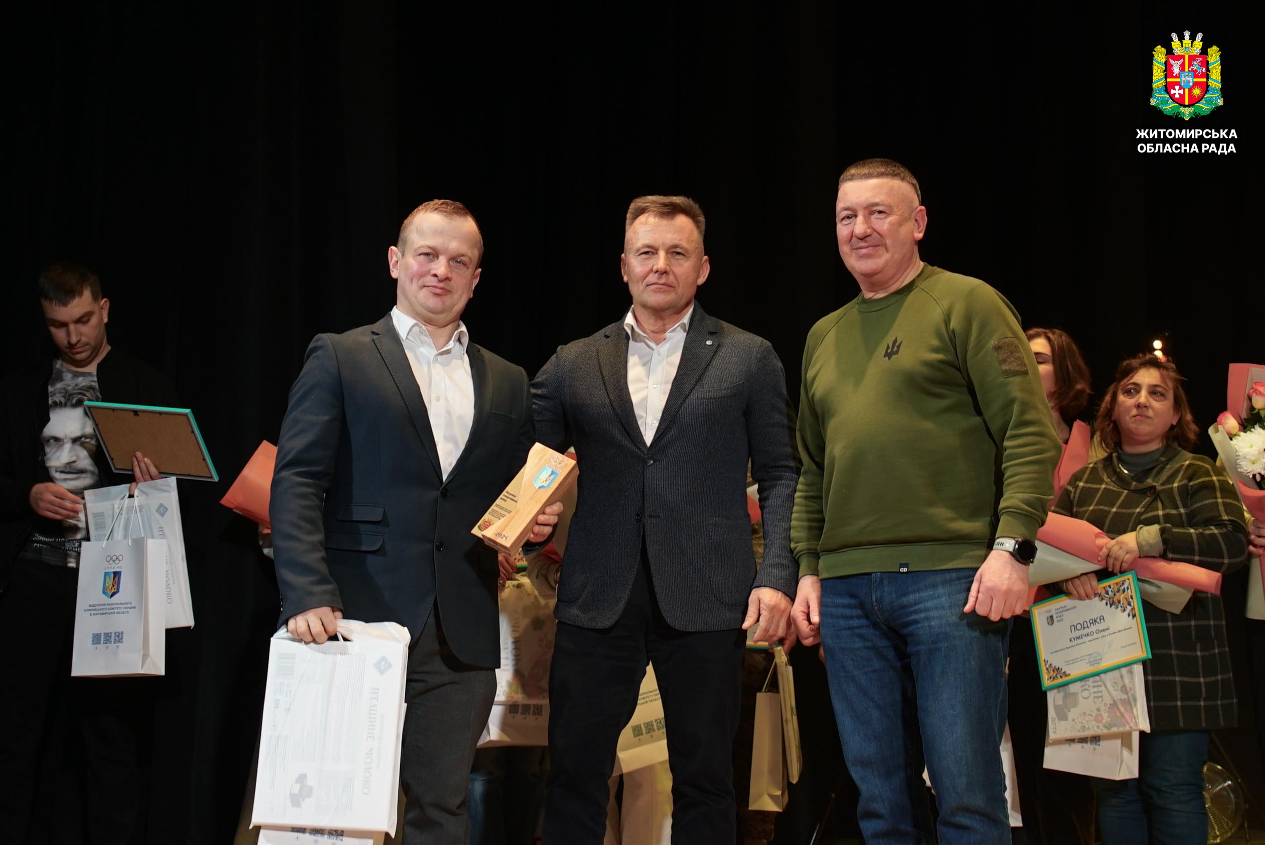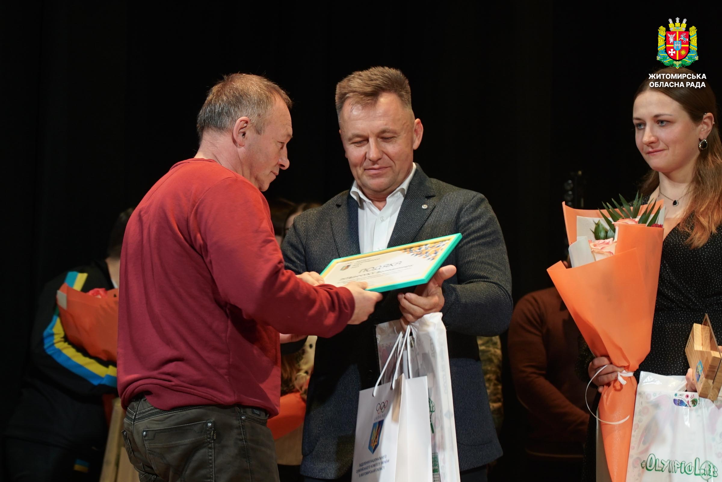 У Житомирі відзначили лауреатів спортивного 2025 року 28 січня у Житомирській обласній філармонії імені Святослава Ріхтера відбулася урочиста церемонія нагородження «Лауреати спортивного 2025 року» — одна з найяскравіших подій спортивного життя області. Церемонія пройшла в особливій атмосфері — зі словами вдячності українським захисникам і захисницям та вшануванням пам’яті представників спортивної спільноти, які віддали життя за свободу України. Під час заходу відзначили спортсменів і тренерів — призерів всеукраїнських і міжнародних змагань, представників олімпійських і неолімпійських видів спорту, спортсменів з інвалідністю, команди й клуби, а також меценатів і партнерів, які підтримують розвиток спорту на Житомирщині. Серед відзначених благодійників — депутат Житомирської обласної ради, президент АТ «Рудь» Петро Рудь, який активно сприяє розвитку олімпійського руху та підтримує спортсменів. Від імені першого заступника голови Житомирської обласної ради Олега Дзюбенка та всього депутатського корпусу учасників урочистостей привітали депутати обласної ради Олександр Дмитрук та Микола Григорович, які подякували спортсменам і тренерам за працю, наполегливість і гідне представлення області на спортивних аренах. «Спорт — це характер, дисципліна та витривалість. Сильна, свідома молодь, яка займається спортом, формує міцну націю, а міцна нація — запорука нашої Перемоги», — підкреслив у своєму вітальному слові Олександр Дмитрук. Микола Григорович висловив слова вдячності чемпіонам, викладачам та батькам, а також окремо подякував факультету фізичного виховання і спорту Житомирського державного університету імені Івана Франка за підготовку вчителів та тренерів. Під час церемонії також пролунали вітальні слова від керівництва Житомирської обласної військової адміністрації, Національного олімпійського комітету України. Відбулися вручення нагород, почесних звань та відзнак лауреатам спортивного року. Окрасою заходу стали музичні та хореографічні виступи, показові номери спортивних і творчих колективів області.