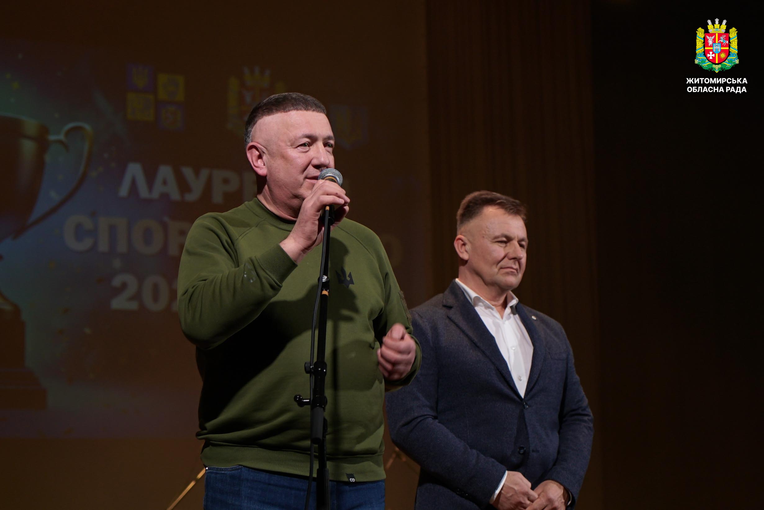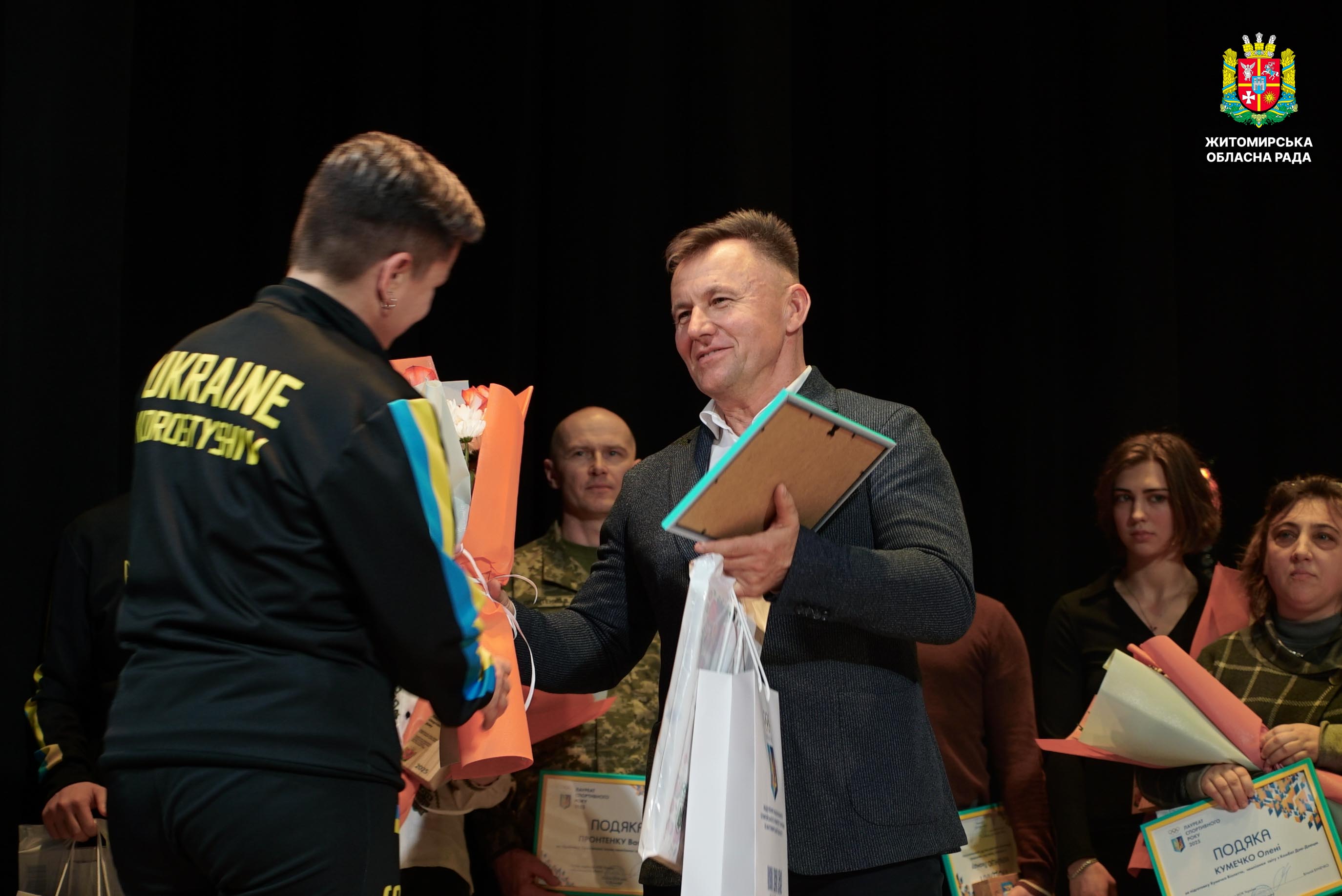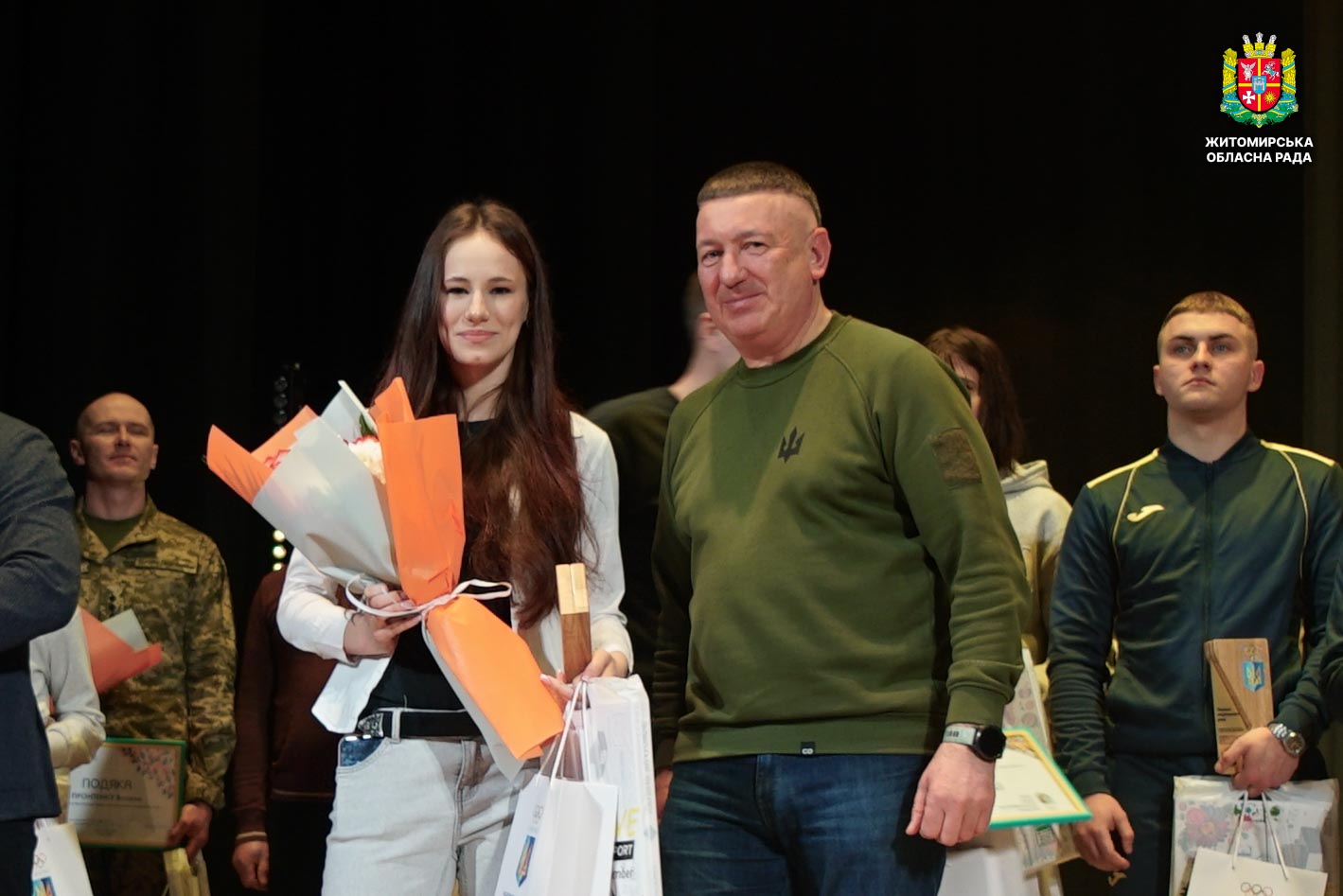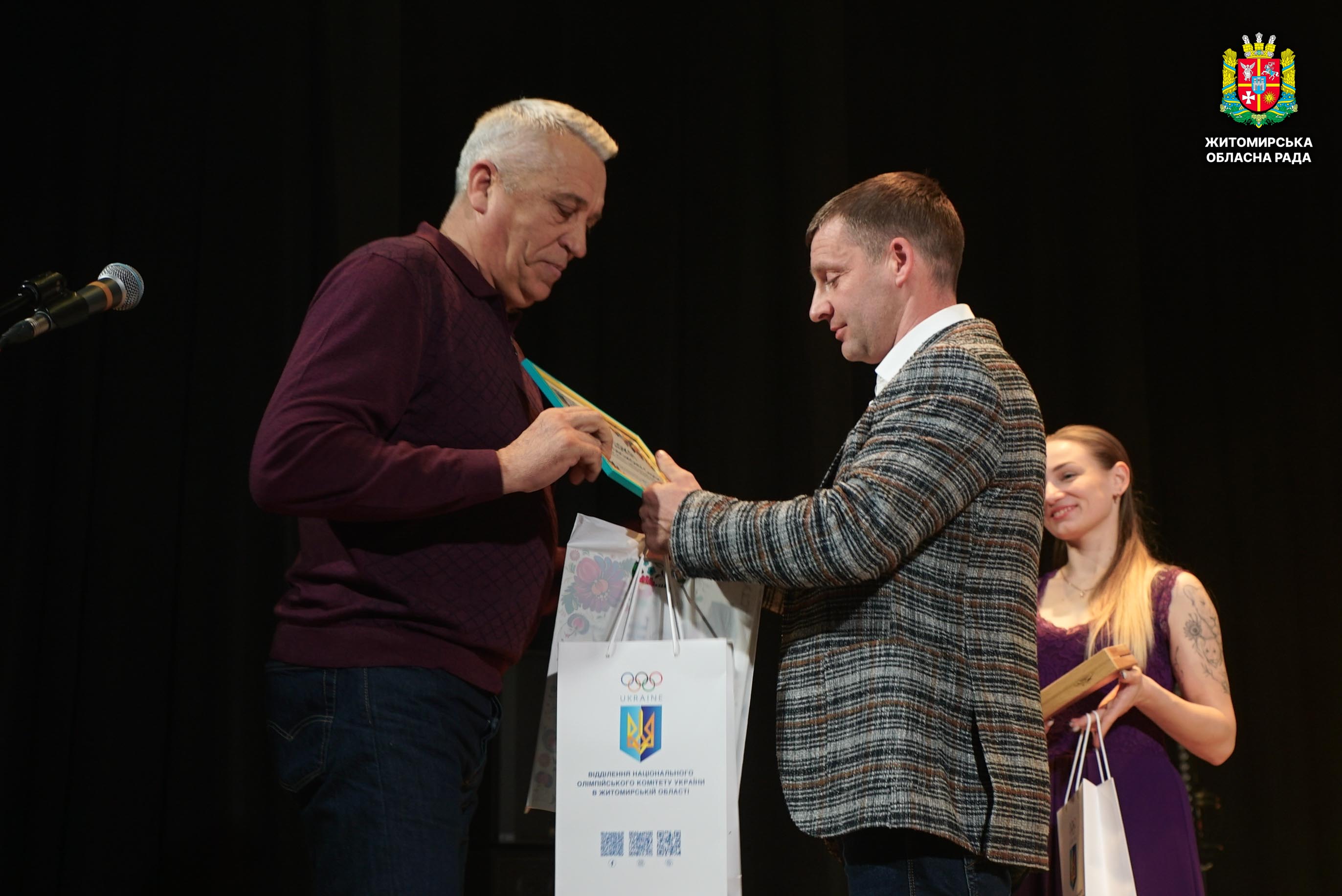У Житомирі відзначили лауреатів спортивного 2025 року 28 січня у Житомирській обласній філармонії імені Святослава Ріхтера відбулася урочиста церемонія нагородження «Лауреати спортивного 2025 року» — одна з найяскравіших подій спортивного життя області. Церемонія пройшла в особливій атмосфері — зі словами вдячності українським захисникам і захисницям та вшануванням пам’яті представників спортивної спільноти, які віддали життя за свободу України. Під час заходу відзначили спортсменів і тренерів — призерів всеукраїнських і міжнародних змагань, представників олімпійських і неолімпійських видів спорту, спортсменів з інвалідністю, команди й клуби, а також меценатів і партнерів, які підтримують розвиток спорту на Житомирщині. Серед відзначених благодійників — депутат Житомирської обласної ради, президент АТ «Рудь» Петро Рудь, який активно сприяє розвитку олімпійського руху та підтримує спортсменів. Від імені першого заступника голови Житомирської обласної ради Олега Дзюбенка та всього депутатського корпусу учасників урочистостей привітали депутати обласної ради Олександр Дмитрук та Микола Григорович, які подякували спортсменам і тренерам за працю, наполегливість і гідне представлення області на спортивних аренах. «Спорт — це характер, дисципліна та витривалість. Сильна, свідома молодь, яка займається спортом, формує міцну націю, а міцна нація — запорука нашої Перемоги», — підкреслив у своєму вітальному слові Олександр Дмитрук. Микола Григорович висловив слова вдячності чемпіонам, викладачам та батькам, а також окремо подякував факультету фізичного виховання і спорту Житомирського державного університету імені Івана Франка за підготовку вчителів та тренерів. Під час церемонії також пролунали вітальні слова від керівництва Житомирської обласної військової адміністрації, Національного олімпійського комітету України. Відбулися вручення нагород, почесних звань та відзнак лауреатам спортивного року. Окрасою заходу стали музичні та хореографічні виступи, показові номери спортивних і творчих колективів області.