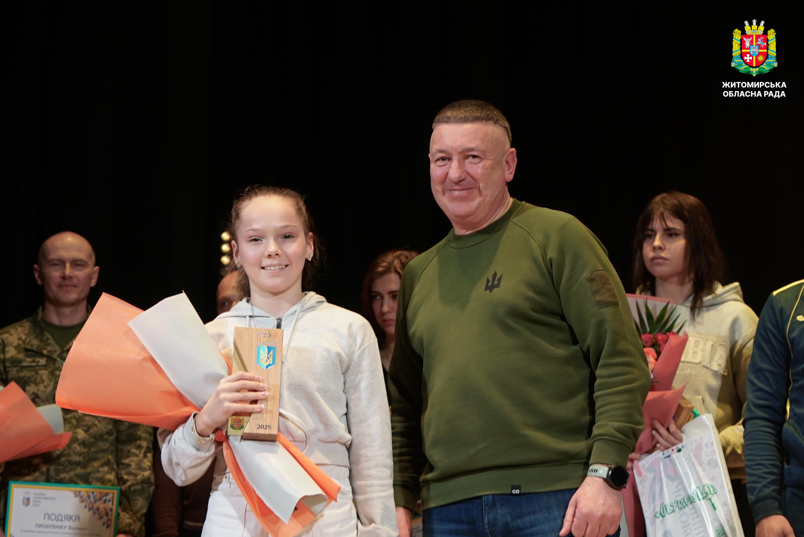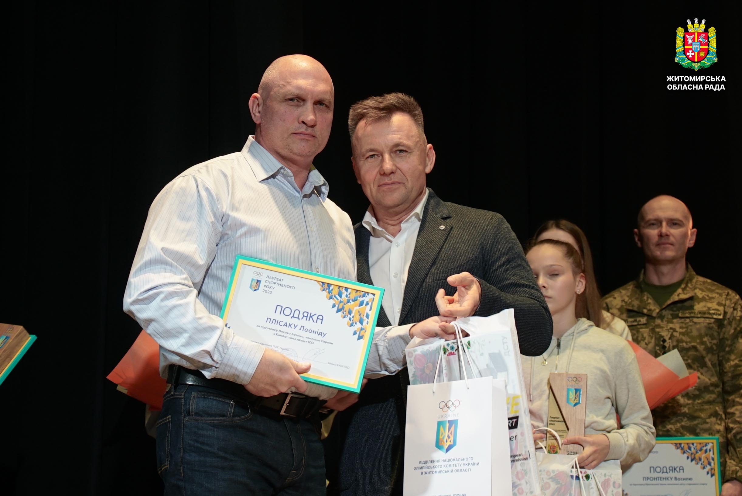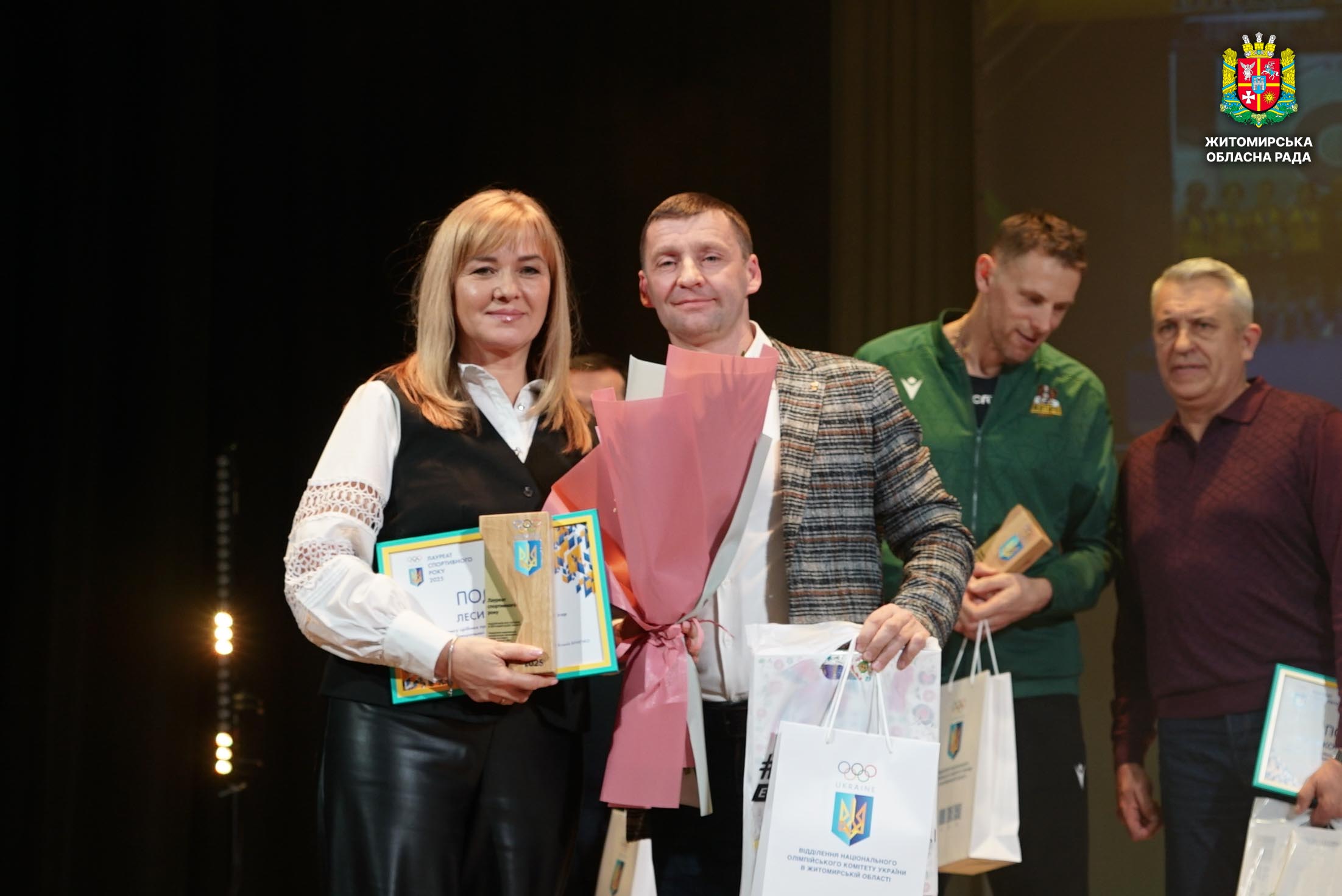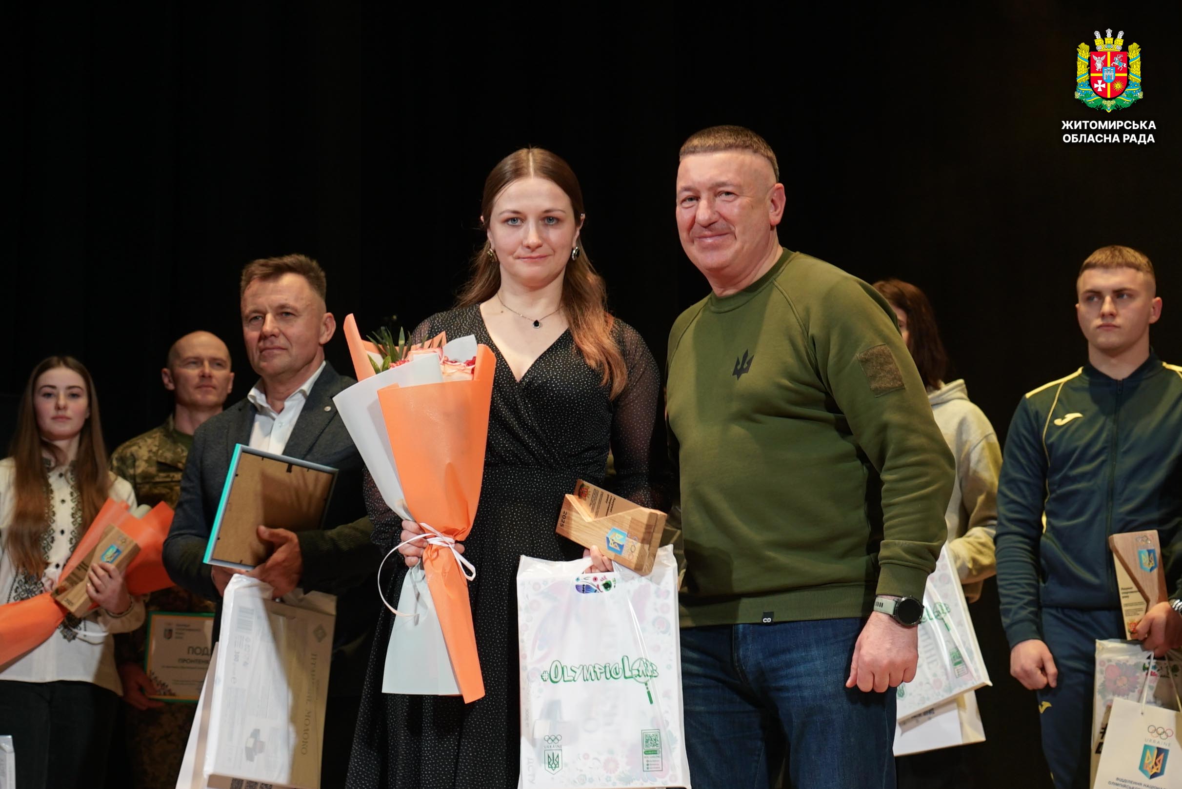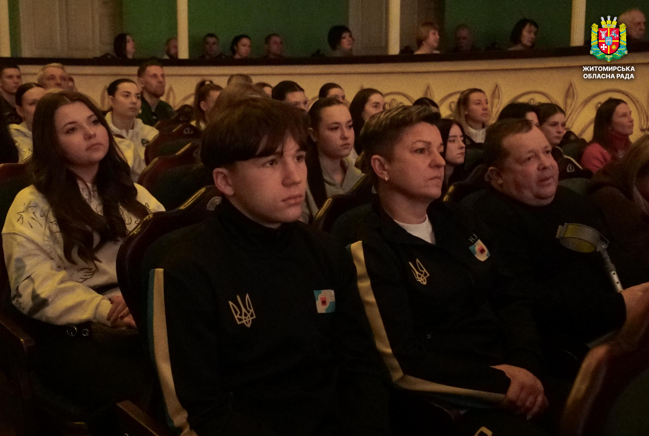 У Житомирі відзначили лауреатів спортивного 2025 року 28 січня у Житомирській обласній філармонії імені Святослава Ріхтера відбулася урочиста церемонія нагородження «Лауреати спортивного 2025 року» — одна з найяскравіших подій спортивного життя області. Церемонія пройшла в особливій атмосфері — зі словами вдячності українським захисникам і захисницям та вшануванням пам’яті представників спортивної спільноти, які віддали життя за свободу України. Під час заходу відзначили спортсменів і тренерів — призерів всеукраїнських і міжнародних змагань, представників олімпійських і неолімпійських видів спорту, спортсменів з інвалідністю, команди й клуби, а також меценатів і партнерів, які підтримують розвиток спорту на Житомирщині. Серед відзначених благодійників — депутат Житомирської обласної ради, президент АТ «Рудь» Петро Рудь, який активно сприяє розвитку олімпійського руху та підтримує спортсменів. Від імені першого заступника голови Житомирської обласної ради Олега Дзюбенка та всього депутатського корпусу учасників урочистостей привітали депутати обласної ради Олександр Дмитрук та Микола Григорович, які подякували спортсменам і тренерам за працю, наполегливість і гідне представлення області на спортивних аренах. «Спорт — це характер, дисципліна та витривалість. Сильна, свідома молодь, яка займається спортом, формує міцну націю, а міцна нація — запорука нашої Перемоги», — підкреслив у своєму вітальному слові Олександр Дмитрук. Микола Григорович висловив слова вдячності чемпіонам, викладачам та батькам, а також окремо подякував факультету фізичного виховання і спорту Житомирського державного університету імені Івана Франка за підготовку вчителів та тренерів. Під час церемонії також пролунали вітальні слова від керівництва Житомирської обласної військової адміністрації, Національного олімпійського комітету України. Відбулися вручення нагород, почесних звань та відзнак лауреатам спортивного року. Окрасою заходу стали музичні та хореографічні виступи, показові номери спортивних і творчих колективів області.