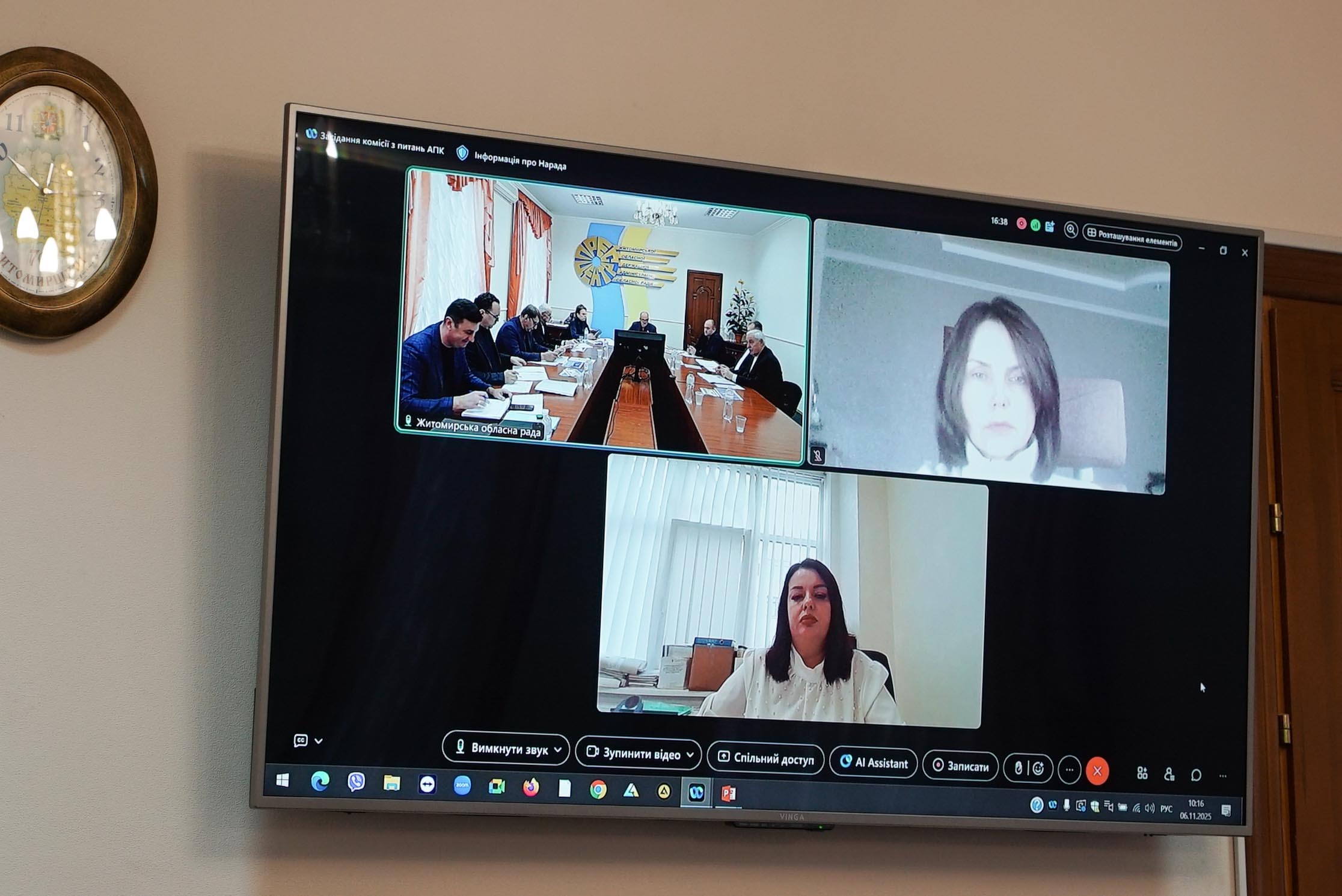 У Житомирській обласній раді пройшли засідання ще трьох постійних комісій Сьогодні, 6 листопада, відбулися засідання трьох профільних комісій обласної ради: з питань агропромислового комплексу, земельних відносин та розвитку села; з питань охорони здоров’я, соціального захисту населення та у справах ветеранів; а також з питань екології, охорони навколишнього середовища та використання природних ресурсів. У роботі комісій взяли участь перший заступник голови Житомирської обласної ради Олег Дзюбенко, заступники начальника Житомирської ОВА Наталія Арендарчук та Віктор Градівський. На засідання постійної комісії з питань агропромислового комплексу, земельних відносин та розвитку села, яку провів депутат Олександр Ющенко, було винесено 19 питань. Вони стосувалися управління землями та майном, зокрема затвердження технічної документації, надання дозволів на розроблення проєктів землеустрою, визначення меж ділянок та передачі землі у комунальну власність. Окремо депутати розглянули звернення народного депутата України Дмитра Костюка щодо обвалу мосту в селі Вербівка Звягельського району. За результатами обговорення було вирішено рекомендувати Житомирській ОВА розглянути можливість виділення коштів на капітальний ремонт моста коштом перевиконання обласного бюджету. На засіданні постійної комісії з питань охорони здоров’я, соціального захисту населення та у справах ветеранів депутати розглянули 28 питань. Серед них – продовження контрактів із директорами медичних закладів, призначення нових керівників за результатами конкурсів, а також зміни до статутів комунальних установ. Також комісія розглянула звернення КНП «Обласний медичний центр реабілітації» Житомирської обласної ради щодо створення обласної програми реабілітації ветеранів війни. Доповідаючи, керівник медичного закладу Олександр Данищук наголосив, що кількість ветеранів, які потребують реабілітації, постійно зростає. Він зазначив, що частину важливих послуг, що мають суттєве значення для фізичного та емоційного відновлення, наразі заклад надає на платній основі, оскільки вони не покриваються НСЗУ. Тому просить створити програму, яка дозволить надавати ветеранам ці послуги безплатно. За результатами обговорення депутати вирішили звернутися до Житомирської ОВА з проханням підготувати пропозиції до комплексної програми підтримки ветеранів війни та членів їх сімей, залучивши до цього й інші обласні заклади охорони здоров'я, та до 15 грудня 2025 року подати їх на розгляд комісії. На засіданні постійної комісії з питань екології, охорони навколишнього середовища та використання природних ресурсів було розглянуто понад 20 питань. Провів засідання депутат Олександр Рабінович. На комісії, зокрема, погоджено проєкти рішень щодо зміни меж кількох природно-заповідних об’єктів з метою укріплення прикордонної смуги на півночі області. Також було розглянуто низку питань про надання мисливських угідь у користування громадським організаціям та погоджено відповідні проєкти рішень. Крім того, члени комісії підтримали рішення про встановлення ставок рентної плати за спеціальне використання лісових ресурсів, погодили ліміти на їх використання на 2025 – 2029 роки, а також низку земельних питань щодо розроблення проєктів землеустрою та укладення сервітуті