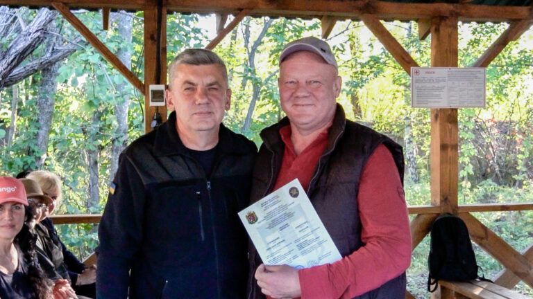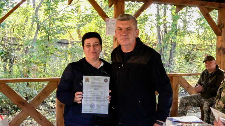 У Житомирському обласному центрі національного спротиву ще дві групи учасників завершили курс і отримали сертифікати 20 вересня під керівництвом Житомирського обласного центру підготовки громадян до національного спротиву Житомирської обласної ради відбулися завершальні тактико-стройові навчання для майже 30 учасників – чоловіків і жінок, які пройшли інтенсивний 48-годинний курс. Заняття проводилися за всебічного сприяння та на території навчального полігону громадської організації “Ліга сприяння обороні”. Програма розпочалася з фізичної розминки та вправ. Далі курсанти відпрацьовували переміщення визначеним маршрутом у лісовій місцевості з дотриманням правил прихованого руху. Під час цього завдання вони потрапляли в умовні засідки та тренувалися надавати допомогу «пораненим» і евакуйовувати їх. Навчання проводилися на трьох навчальних місцях: • Стрілецька підготовка – стрільба з АК-74 з відпрацюванням точності та прицільності. • Тактична підготовка – дії у складі підрозділу зі зброєю в умовах, наближених до бойових. • Домедична допомога – накладання турнікетів, пов’язок, надання першої допомоги та евакуація постраждалих. За результатами занять керівник Центру Олег Держанівський вручив сертифікати 26 випускникам. Нагадаємо, 10 липня під час 27-ї позачергової сесії Житомирської обласної ради восьмого скликання депутати ухвалили рішення про створення комунального закладу «Житомирський обласний центр підготовки громадян до національного спротиву» та призначення його керівника Олега Держанівського. Метою діяльності Центру є підвищення готовності населення до дій в умовах загроз, надзвичайних ситуацій та військової агресії.