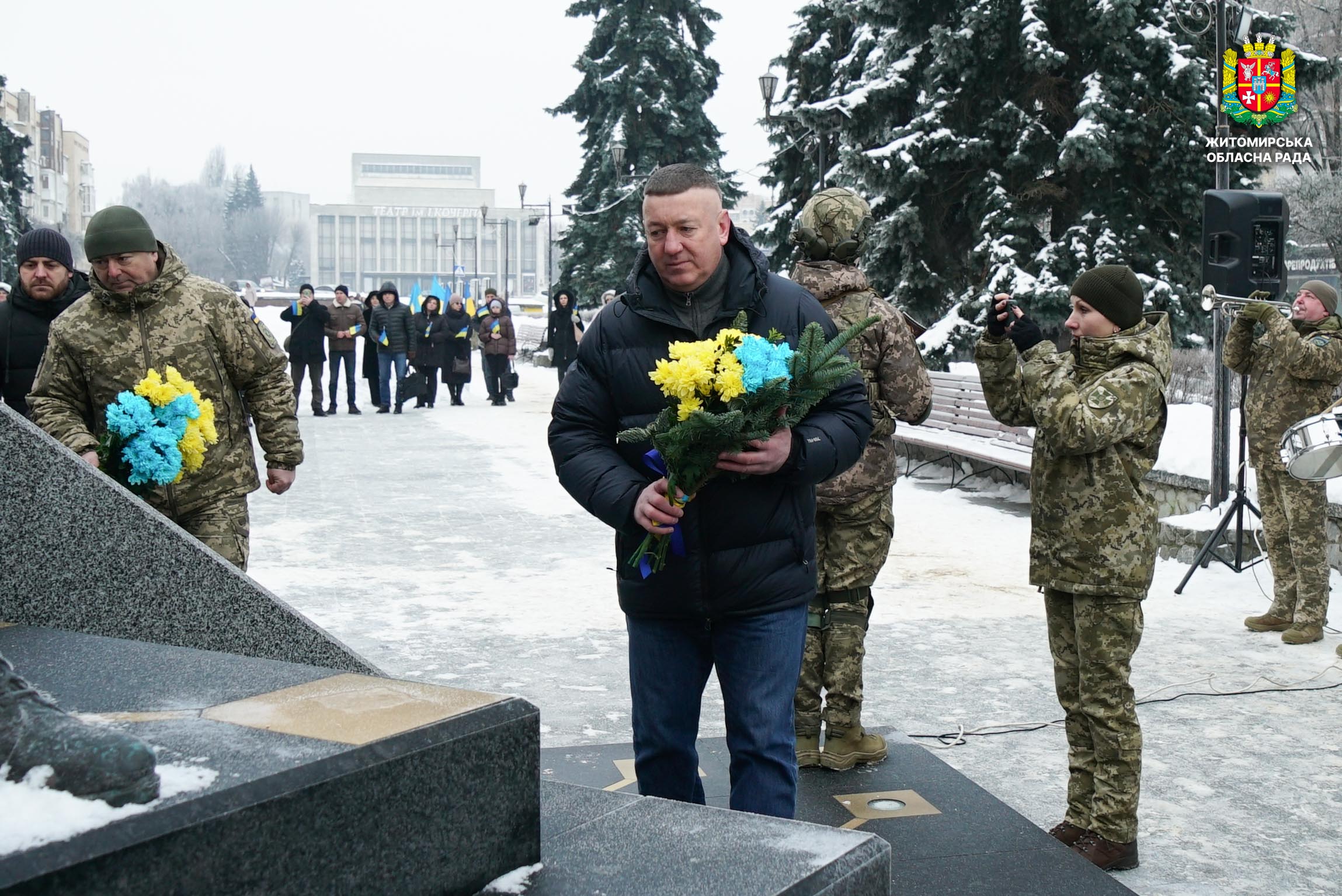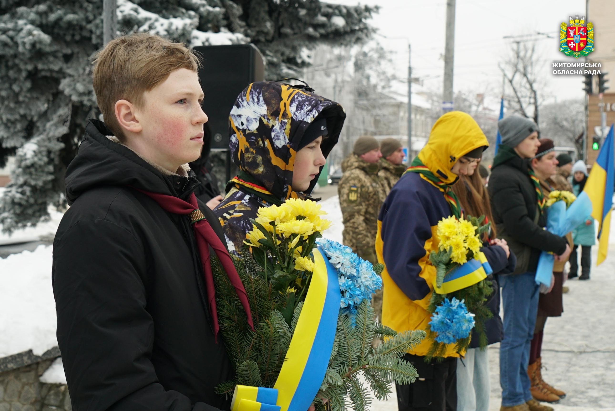 В єдності сила: у Житомирі відбулися урочистості до Дня Соборності України 22 січня Україна відзначає День Соборності — державне свято, що символізує неподільність українських земель, духовну єдність народу та незалежність держави. У цей день ми згадуємо дві визначні події української історії: проголошення незалежності Української Народної Республіки та Акт Злуки українських земель. Так, 22 січня 1918 року IV Універсалом Центральної Ради вперше у XX столітті було проголошено незалежність України, а 22 січня 1919 року на Софійському майдані в Києві відбулося об’єднання УНР і ЗУНР в єдину державу. В умовах війни ця дата є символом незламної єдності України. З нагоди Дня Соборності у Житомирі відбулися урочистості вшанування. У заходах взяли участь перший заступник голови Житомирської обласної ради Олег Дзюбенко, депутат обласної ради Олександр Дмитрук, представники виконавчого апарату, керівництво Житомирської ОВА та міської ради, родини Героїв, військовослужбовці, духовенство, рятувальники, правоохоронці та громадськість. Урочистості розпочалися на Алеї Слави Героїв. Учасники зібрання долучилися до загальнонаціональної хвилини мовчання та спільно виконали Державний Гімн у супроводі оркестру Житомирського військового інституту. Далі відбулося покладання квітів до пам'ятних стендів та встановлення лампадок до пам’ятного знака Героям Небесної Сотні. Окрім того, присутні встановили лампади до стели Героям Небесної Сотні біля Свято-Михайлівського кафедрального собору та поклали квіти до пам’ятника Івану Огієнку на вулиці Михайлівській. На майдані Перемоги відбулося покладання квітів до пам’ятного знака «Захисникам України у війні з російським агресором». Представники Ради Християнських церков Житомирщини провели молитву за Україну. Також учасники поклали квіти до пам’ятних місць видатних діячів української державності та вшанували загиблих і померлих учасників АТО/ООС біля меморіальних стендів. День Соборності України — це нагадування про те, що єдність, свобода та соборність є цінностями, які зміцнюють наш народ і визначають наше майбутнє. Через єдність Україна продовжує свій шлях до Перемоги, незалежності й процвітання.