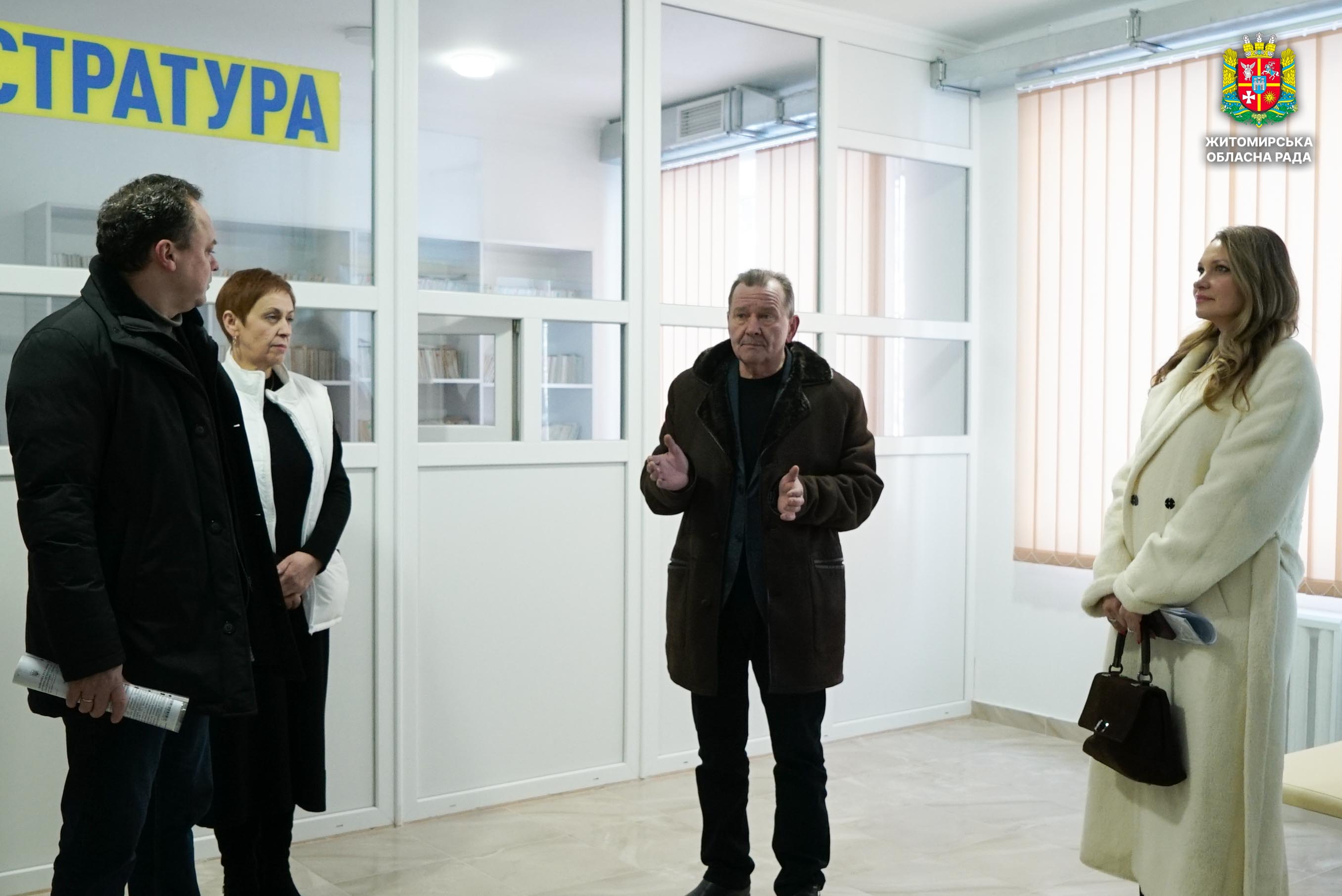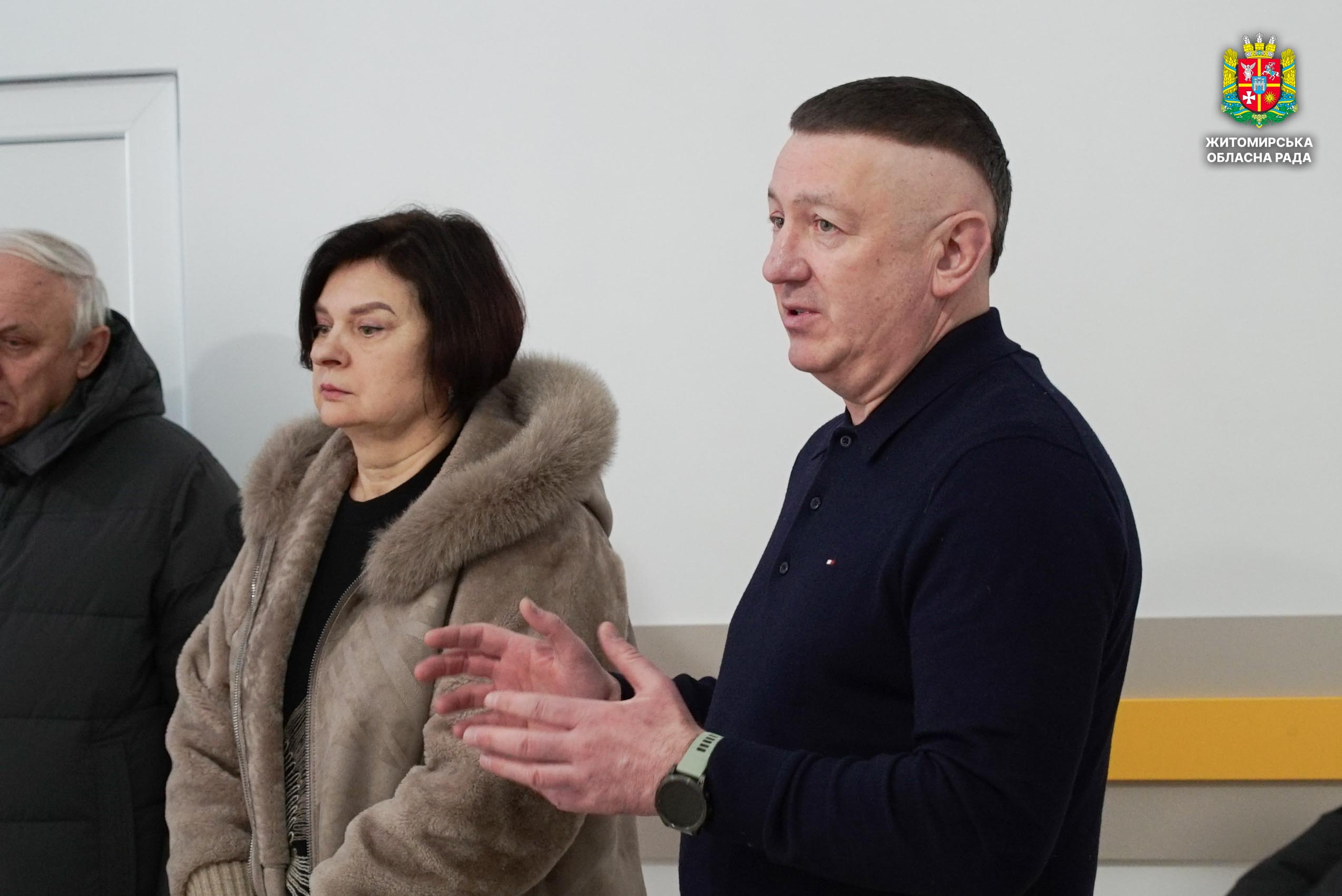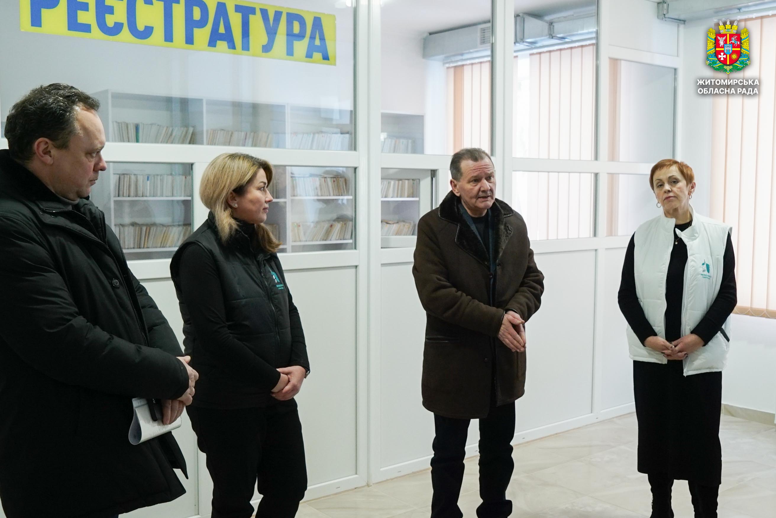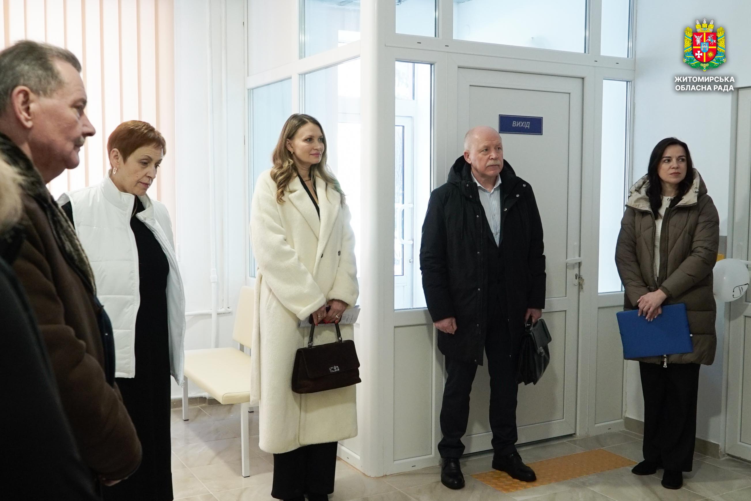 В обласному протитуберкульозному диспансері відкрили оновлене диспансерне відділення 10 лютого в КНП «Обласний протитуберкульозний диспансер» Житомирської обласної ради відбулося відкриття диспансерного відділення для амбулаторного прийому дорослих і дітей у приміщенні на базі закладу. У заході взяли участь депутат Житомирської обласної ради Олександр Дмитрук, начальниця Департаменту охорони здоров’я Житомирської ОВА, депутатка обласної ради Валентина Донець, керуючий справами виконавчого апарату обласної ради Віктор Назар, завідувачка відділу управління та протидії туберкульозу Державної установи «Центр громадського здоров’я МОЗ України» Яна Терлєєва, генеральний директор Державної установи «Житомирський обласний центр контролю та профілактики хвороб Міністерства охорони здоров'я України» Олександр Шпита, керівництво закладу та медичні працівники. Як зазначив директор КНП «Обласний протитуберкульозний диспансер» Віталій Дідик, розміщення відділення на території закладу дозволяє покращити організацію амбулаторного прийому та забезпечити пацієнтам можливість проходити всі необхідні обстеження й отримувати медичну допомогу в одному місці. Фінансування робіт з капітального ремонту та реконструкції відділення здійснювалося коштом обласного бюджету та Національної служби здоров’я України. Загальна вартість проєкту склала близько 8 млн гривень. Відділення оснащене новими меблями та медичним обладнанням. Створені комфортні умови для прийому пацієнтів і роботи медичного персоналу. «Оновлене відділення — це ще один крок до забезпечення жителів Житомирщини сучасною, доступною та якісною медичною допомогою»,— зазначив депутат Житомирської обласної ради Олександр Дмитрук. Простір відділення поділено на три функціональні зони: зону для медичних працівників, а також дві окремі зони для прийому дорослих і дітей, що дозволяє розмежувати потоки пацієнтів. За словами директора закладу Віталія Дідика, пацієнт має можливість у день звернення пройти комплексне обстеження. У закладі проводяться ультразвукові дослідження, бронхоскопія, лабораторні аналізи, а лікування призначається з першого дня. Пропускна спроможність відділення становить до 100 відвідувачів за одну зміну. Як повідомив Віталій Дідик, у 2025 році диспансер прийняв близько 8 тисяч відвідувачів, з них 560 — діти. Туберкульоз було діагностовано у 680 пацієнтів, з яких 14 діти. За результатами аналізу, проведеного експертами Державної установи «Центр громадського здоров’я МОЗ України» у 2024 році, Житомирщина посідає одну із лідерських позицій в Україні щодо якості медичної допомоги при туберкульозі. Окрім того, колектив обласного протитуберкульозного диспансеру отримав подяку від Центру громадського здоров’я МОЗ України за покращення якості медичної допомоги, злагоджену діяльність та координацію заходів із подолання туберкульозу. Завдяки цій роботі жителі області мають змогу отримувати високоякісні послуги з профілактики, діагностики та лікування цієї хвороби. Завідувачка відділу управління та протидії туберкульозу Державної установи «Центр громадського здоров’я МОЗ України» Яна Терлєєва високо оцінила професійну роботу команди закладу, Житомирської обласної ради та Департаменту охорони здоров’я ОВА у напрямку профілактики, вия