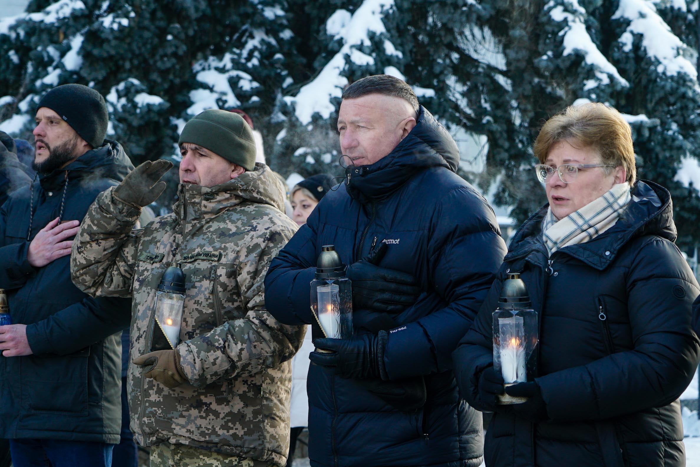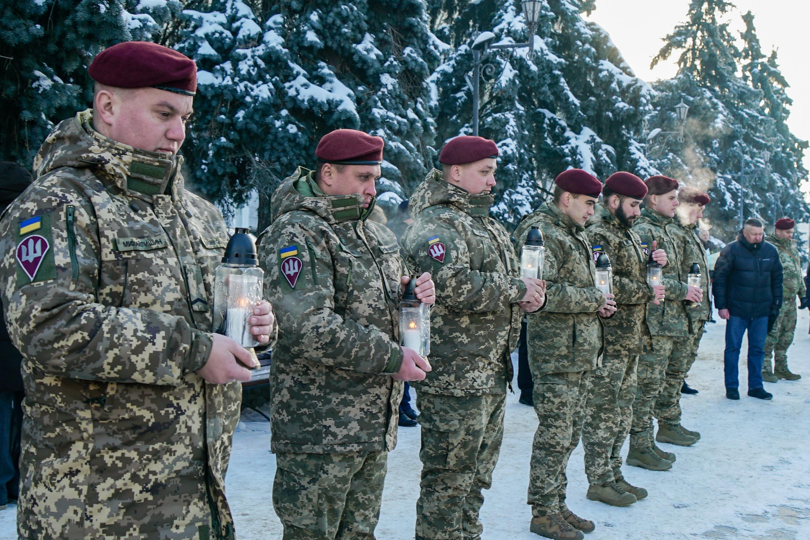 Житомирщина вшанувала захисників Донецького аеропорту 20 січня наша країна вшановує легендарних «кіборгів», які у 2014–2015 роках героїчно боронили Донецький аеропорт від російського агресора. 242 дні українські військові, добровольці, медики та волонтери протистояли ворогу, ставши символом незламності українського духу. Саме 20 січня 2015 року захисники летовища зазнали найбільших втрат. На знак памʼяті оборонців Донецького аеропорту у Житомирі біля пам’ятного знака «Захисникам України у війні з російським агресорам» відбувся меморіальний захід. Героїв вшанували депутат Житомирської обласної ради Олександр Дмитрук, заступник начальника Житомирської ОВА Віктор Градівський, секретар Житомирської міської ради Галина Шиманська, представники виконавчого апарату обласної ради, військовослужбовці, правоохоронці та громадськість. Учасники заходу вшанували полеглих хвилиною мовчання, а також встановили лампадки до пам’ятного знака «Захисникам України у війні з російським агресором» та меморіальних стендів полеглим і померлим воїнам АТО/ООС. Окрім того, військовослужбовці 199 навчального центру Десантно-штурмових військ Збройних Сил України встановили лампади до памʼятних стендів на Алеї Слави Героїв. Подвиг оборонців Донецького аеропорту назавжди залишився в серці країни, став прикладом стійкості та джерелом натхнення для нинішньої боротьби України за свободу.