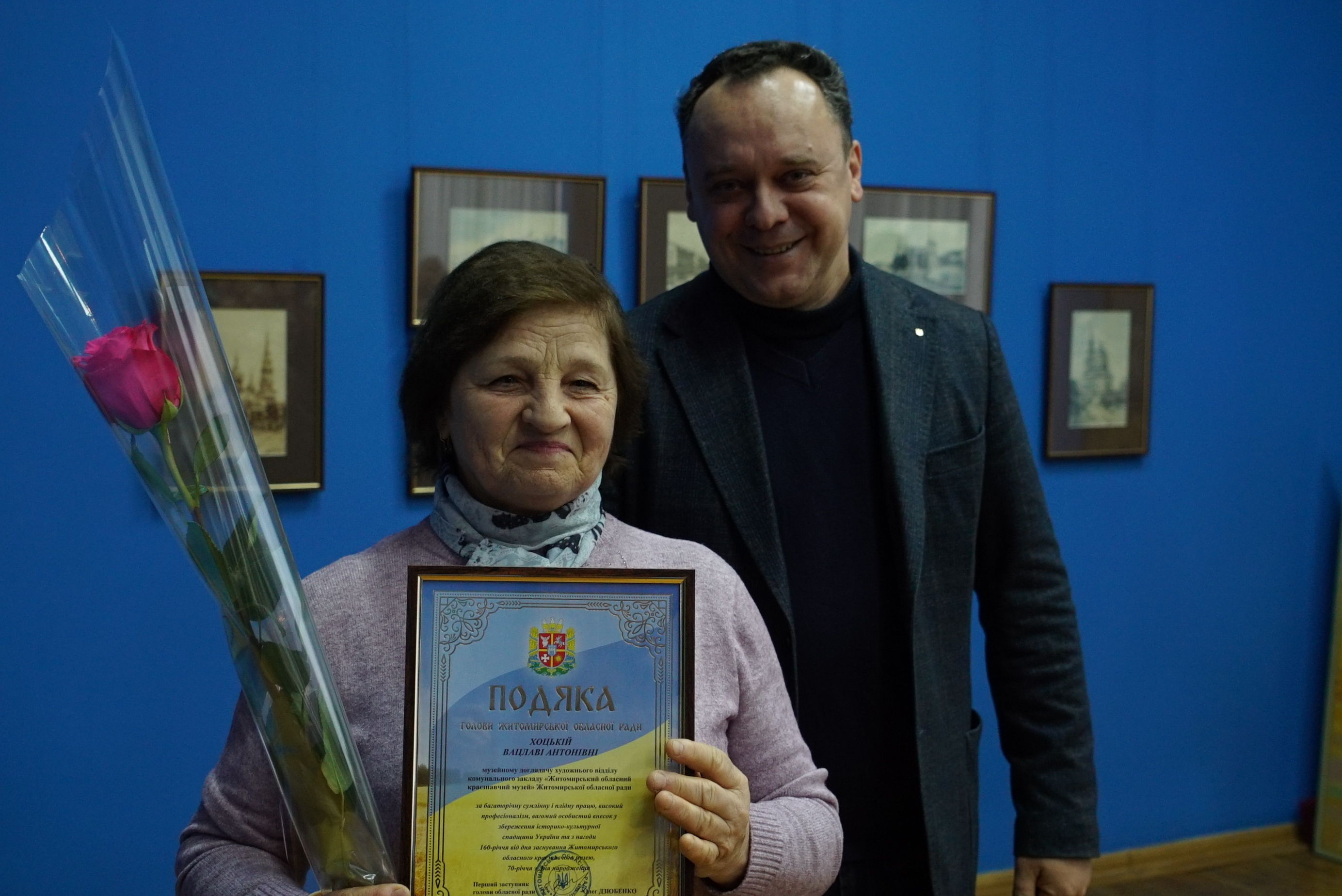 160 років Житомирському обласному краєзнавчому музею 28 жовтня у Житомирському обласному краєзнавчому музеї Житомирської обласної ради відбулися урочистості з нагоди 160-річчя від дня його заснування. Захід зібрав представників обласної та міської влади, музейників, науковців, митців, краєзнавців, археологів і громадськість. Житомирський обласний краєзнавчий музей — один із найстаріших культурних закладів України. Завдяки наполегливій праці багатьох поколінь музейників він став центром збереження й популяризації нашої культурної спадщини. Сьогодні працівники музею гідно продовжують традиції тих, хто розвивав його, відкриваючи нові сторінки минулого й надихаючи сучасників. Від імені першого заступника голови Житомирської обласної ради Олега Дзюбенка та депутатського корпусу колектив музею привітав керуючий справами виконавчого апарату обласної ради Віктор Назар. Він подякував працівникам за їхню працю, збереження історії, побажав подальших успіхів і натхнення, а також вручив відзнаки обласної ради. «Музей — це місце, де з нами розмовляє минуле. І поки ця розмова триває — ми маємо зв’язок зі своїм корінням, своєю землею, відчуваємо свою ідентичність. Дякуємо всім, хто віддано зберігає цю пам'ять і передає її далі», — сказав Віктор Назар. З нагоди 160-річчя від дня заснування Житомирського обласного краєзнавчого музею, за багаторічну сумлінну і плідну працю, високий професіоналізм, вагомий особистий внесок у збереження історико-культурної спадщини України Подякою голови Житомирської обласної ради нагороджено: МЕРУНКО Олесю Михайлівну, старшого наукового співробітника відділу фондів комунального закладу «Житомирський обласний краєзнавчий музей» Житомирської обласної ради; КАМІНСЬКУ Ірину Володимирівну, молодшого наукового співробітника сектору обліку фондів комунального закладу «Житомирський обласний краєзнавчий музей» Житомирської обласної ради; ПЕЧЕНЮКА Петра Петровича, завідувача відділу природи комунального закладу «Житомирський обласний краєзнавчий музей» Житомирської обласної ради; ХОЦЬКУ Вацлаву Антонівну, музейного доглядача художнього відділу комунальногозакладу «Житомирський обласний краєзнавчий музей» Житомирської обласної ради; ЛЕВКО Олену Вікторівну, головного бухгалтера музею комунального закладу «Житомирський обласний краєзнавчий музей» Житомирської обласної ради; ІЛІНБАЄВУ Ірину Анатоліївну, наукового співробітника історичного відділу комунального закладу «Житомирський обласний краєзнавчий музей» Житомирської обласної ради. Працівників музею також привітали заступниця начальника Житомирської ОВА Наталія Арендарчук, начальниця Управління культури та туризму Житомирської ОВА Тетяна Руденька, представники обласної організації Національної спілки краєзнавців України, Національної спілки художників України, громадських організацій та освітніх установ. Завершенням урочистостей стало відкриття виставки «Відреставровані шедеври з колекції Житомирського обласного краєзнавчого музею», де представлено унікальні експонати після реставрації. Довідково. Житомирський обласний краєзнавчий музей заснований у жовтні 1865 року. Основу музейного зібрання тоді склала приватна колекція місцевих гірських порід і мінералів волинського губернатора Михайла Черткова. З 1911 року 