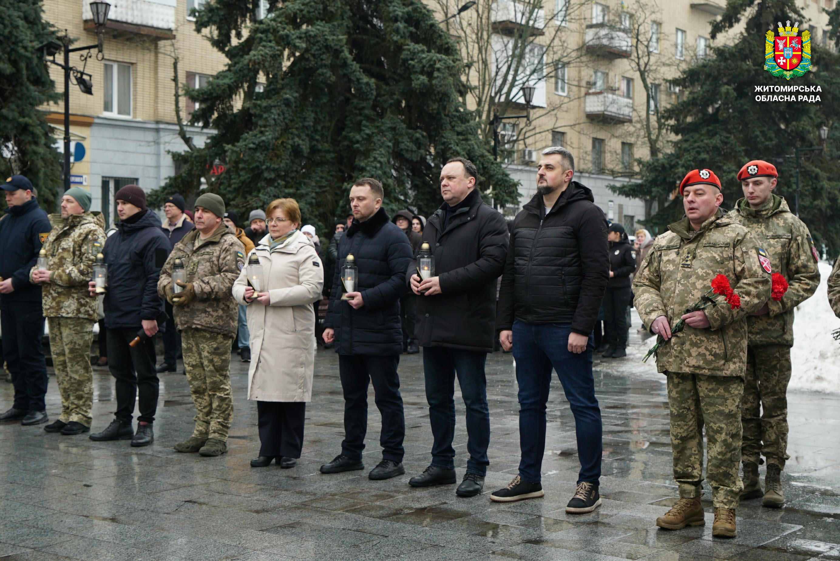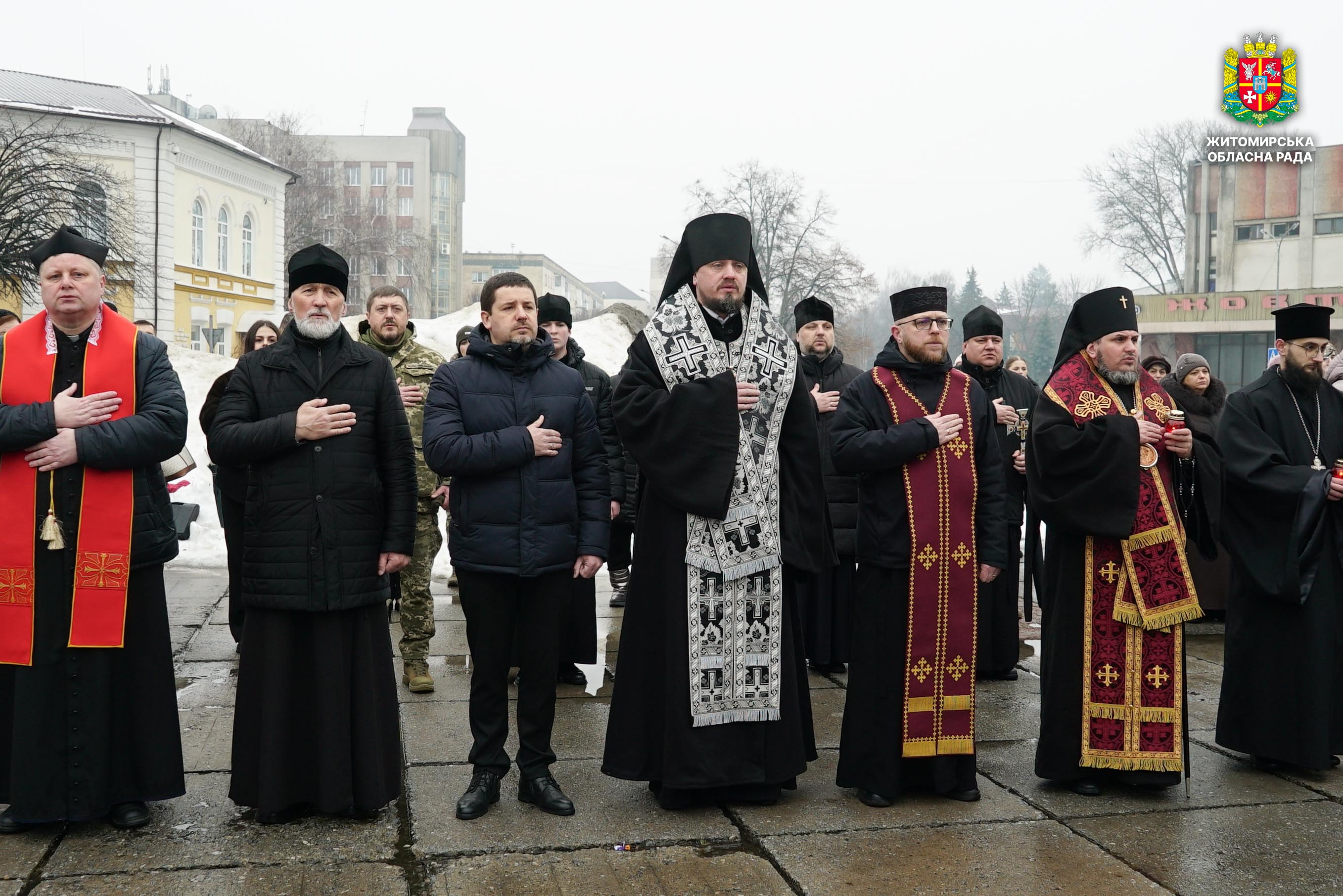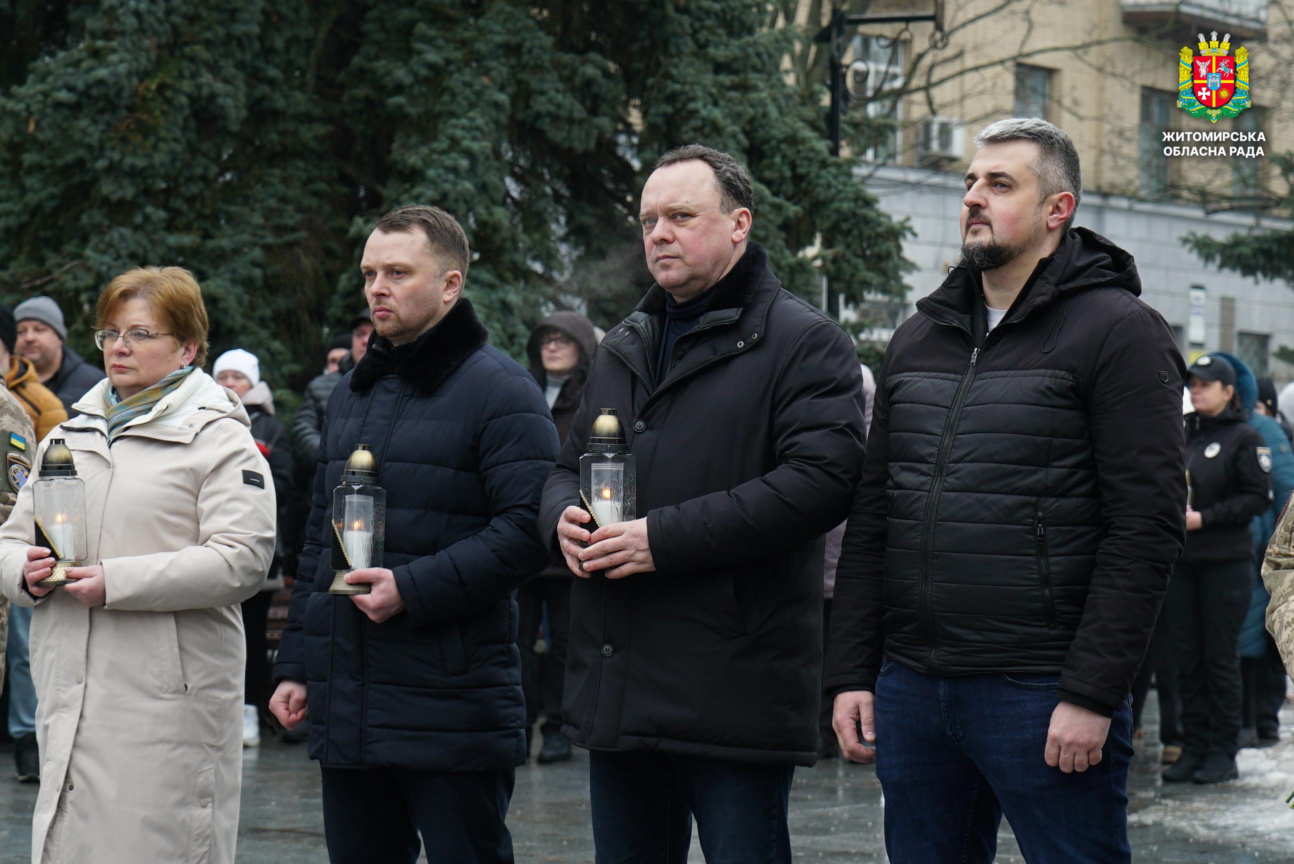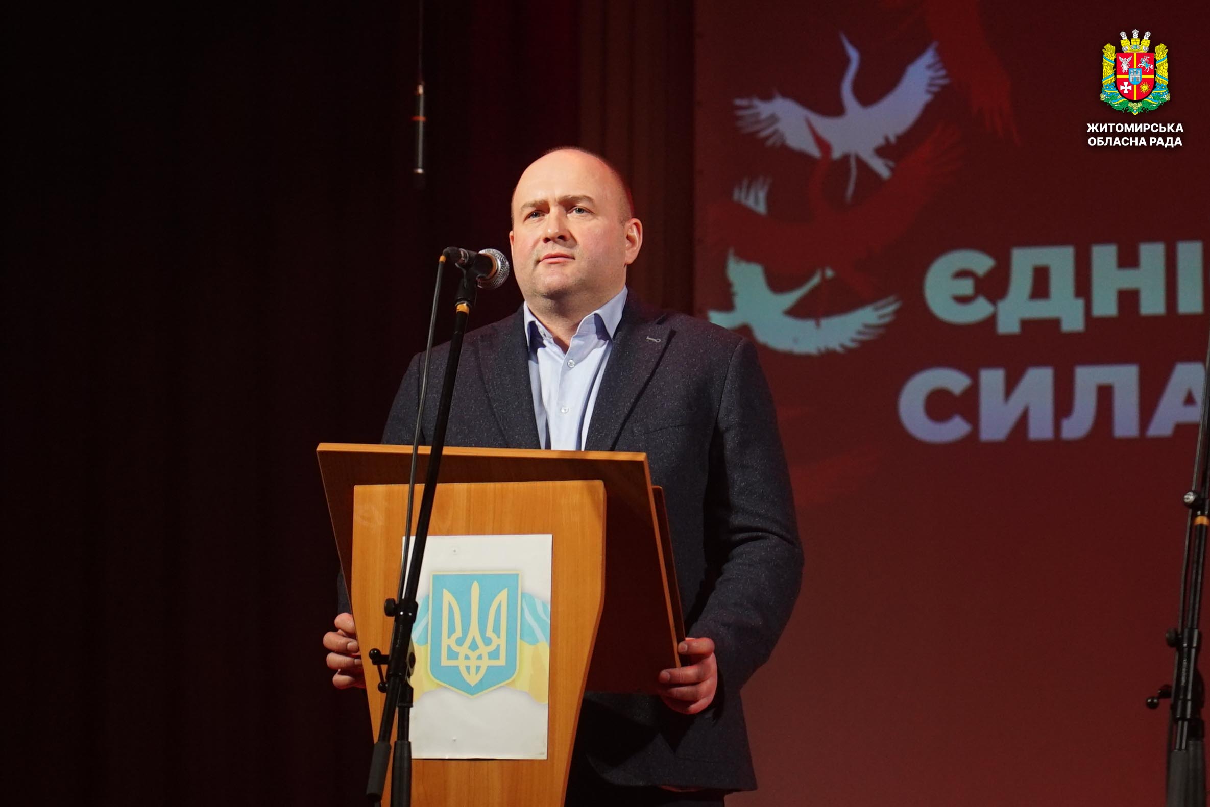 Чотири роки незламності: пам’ять, молитва і вдячність Героям 24 лютого 2026 року — четверта річниця повномасштабного вторгнення росії в Україну. Цей день про тих, хто віддав життя за свободу країни, і про силу народу, який встояв і продовжує боротися за своє майбутнє. Символічно, що цього дня відзначають Національний день молитви — день духовної єдності та спільного прохання про мир, захист і перемогу. З нагоди четвертої річниці повномасштабного російського вторгнення та Національного дня молитви у Житомирі відбулися пам’ятні заходи. У вшануваннях взяли участь перший заступник голови Житомирської обласної ради Олег Дзюбенко, керівництво Житомирської обласної військової адміністрації та Житомирської міської ради, представники виконавчого апарату обласної ради, духовенство, військові, правоохоронці, родини загиблих та громадськість. Меморіальний захід, сповнений скорботи та вдячності, пройшов на Алеї Слави Героїв. Присутні вшанували пам’ять полеглих воїнів хвилиною мовчання, спільно виконали Державний Гімн України у супроводі оркестру 199-го навчального центру Десантно-штурмових військ ЗСУ та встановили лампади до пам'ятних стендів. Представники Ради Християнських Церков Житомирщини провели поминальний молебень. Учасники заходу також вшанували пам’ять Героїв біля пам’ятного знака «Захисникам України у війні з російським агресором» на майдані Перемоги та меморіальних стендів загиблих і померлих учасників Антитерористичної операції та Операції об’єднаних сил. Опісля вшанування продовжилися у Житомирській обласній філармонії імені Святослава Ріхтера, де відбувся духовно-мистецький захід під назвою «Єдність у вірі — сила в боротьбі». Програма поєднала музику, слово та спільну молитву за Україну. «Сьогодні ми вшановуємо наших Героїв, які віддали життя за свободу України, і дякуємо всім, хто продовжує цю боротьбу. Наша сила — у єдності, у підтримці одне одного та вірі, яка не дає нам зламатися навіть у найтемніші часи. Поки ми разом — Україна непереможна», — зазначив перший заступник голови Житомирської обласної ради Олег Дзюбенко. Завершився захід проникливою композицією «Моє ім’я – Україна», що стала символом любові до Батьківщини та віри у її майбутнє.