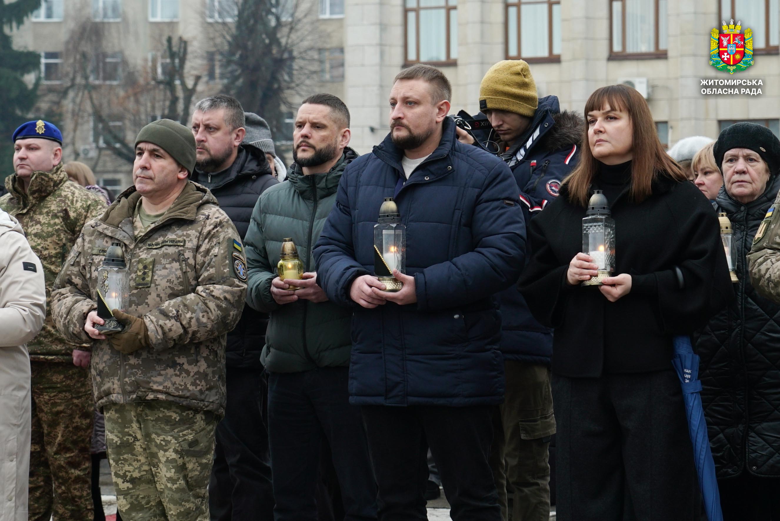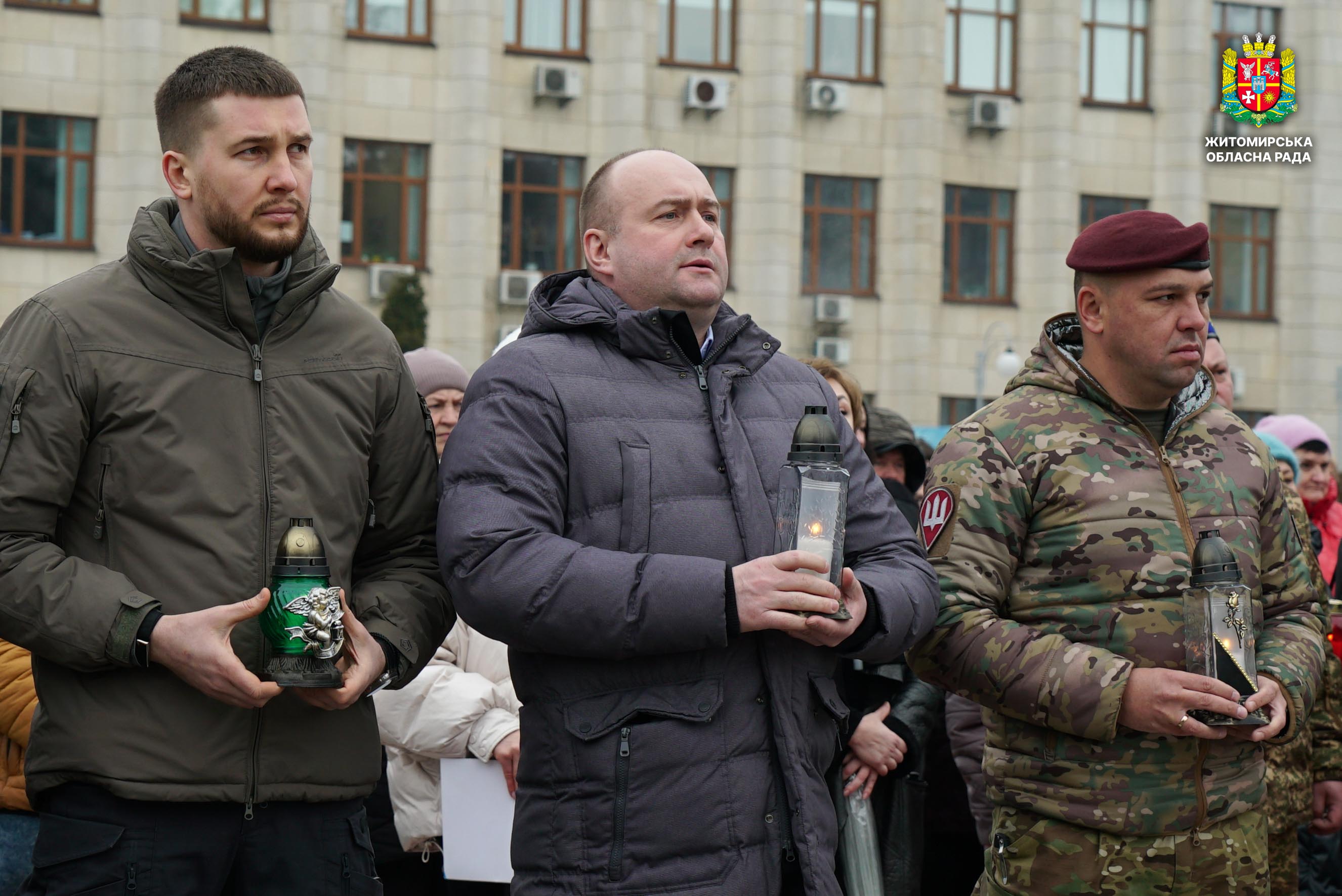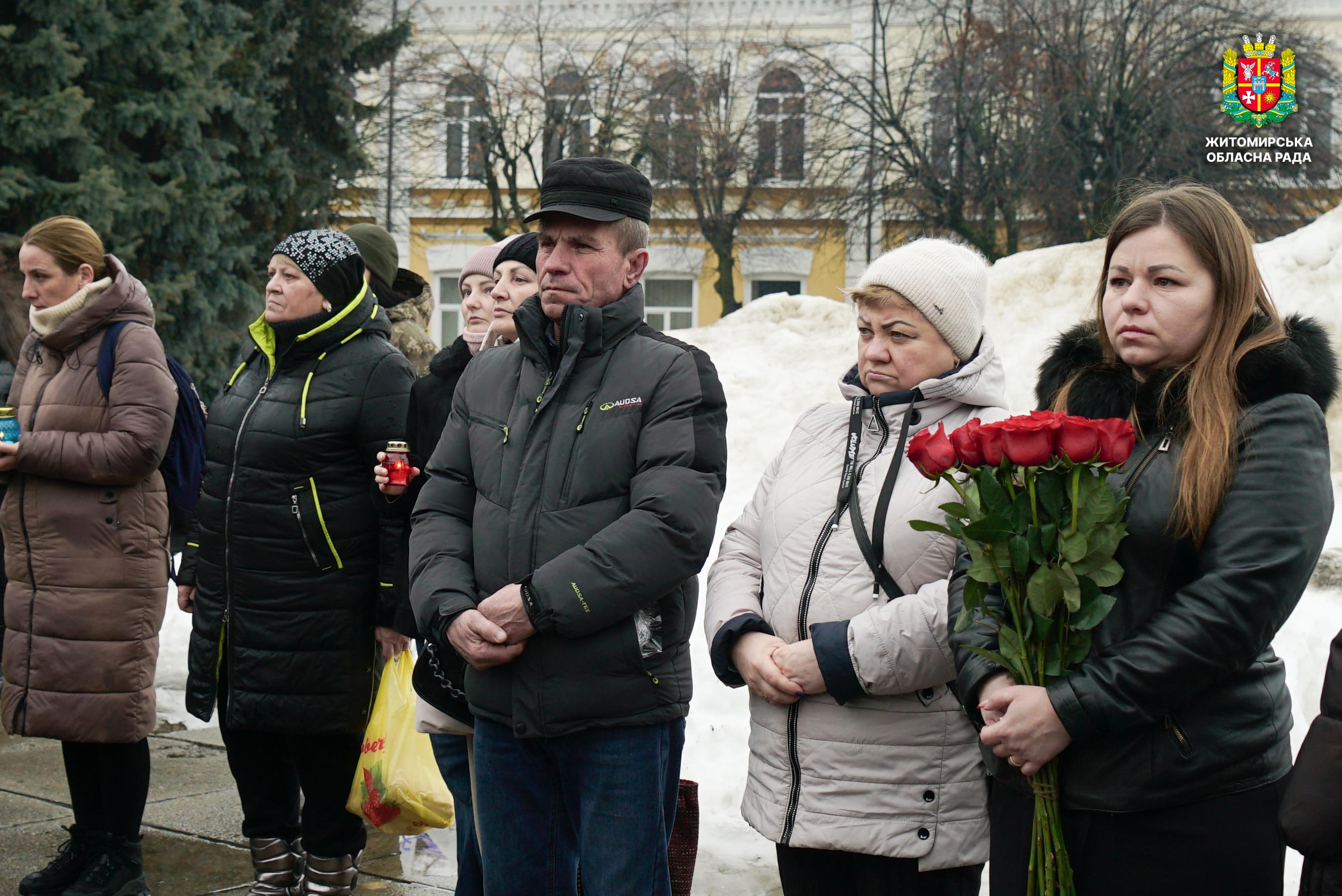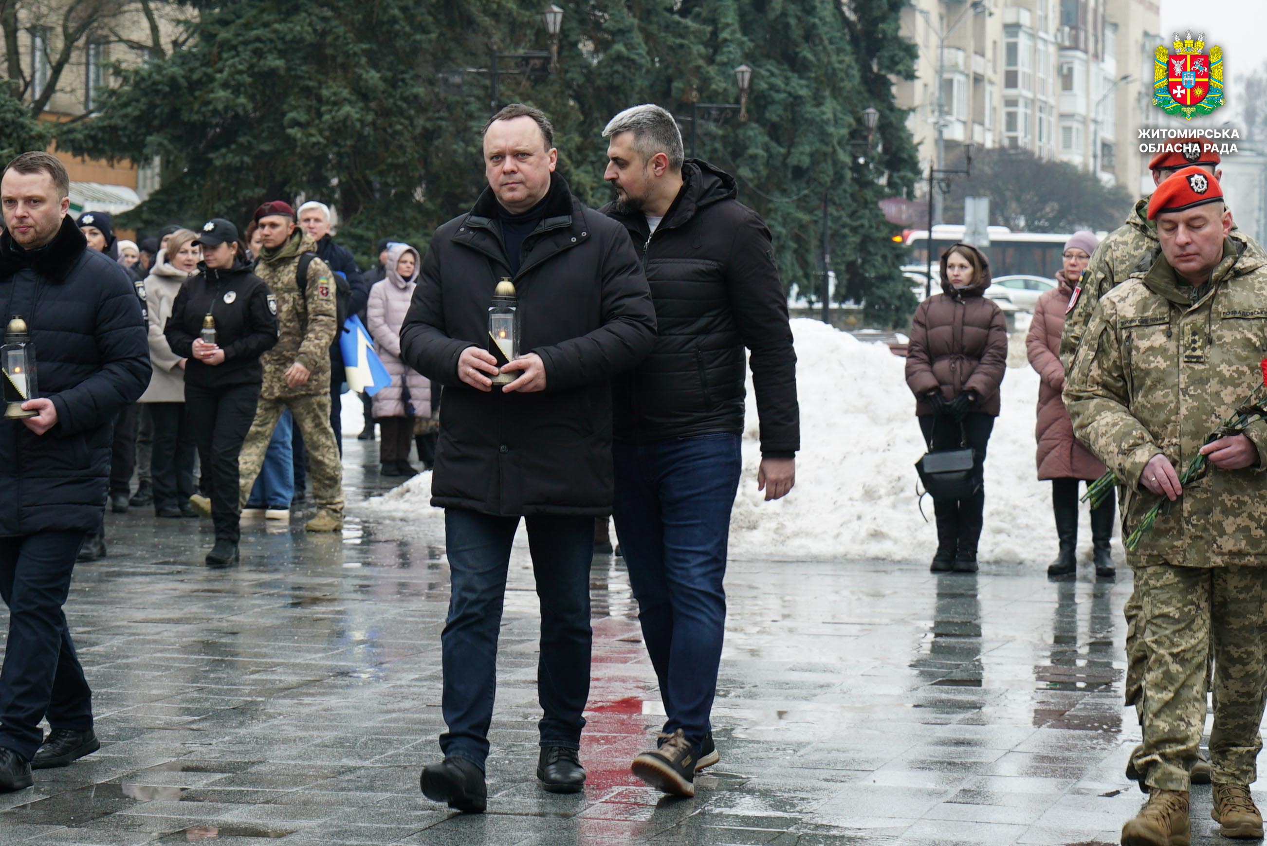 Чотири роки незламності: пам’ять, молитва і вдячність Героям 24 лютого 2026 року — четверта річниця повномасштабного вторгнення росії в Україну. Цей день про тих, хто віддав життя за свободу країни, і про силу народу, який встояв і продовжує боротися за своє майбутнє. Символічно, що цього дня відзначають Національний день молитви — день духовної єдності та спільного прохання про мир, захист і перемогу. З нагоди четвертої річниці повномасштабного російського вторгнення та Національного дня молитви у Житомирі відбулися пам’ятні заходи. У вшануваннях взяли участь перший заступник голови Житомирської обласної ради Олег Дзюбенко, керівництво Житомирської обласної військової адміністрації та Житомирської міської ради, представники виконавчого апарату обласної ради, духовенство, військові, правоохоронці, родини загиблих та громадськість. Меморіальний захід, сповнений скорботи та вдячності, пройшов на Алеї Слави Героїв. Присутні вшанували пам’ять полеглих воїнів хвилиною мовчання, спільно виконали Державний Гімн України у супроводі оркестру 199-го навчального центру Десантно-штурмових військ ЗСУ та встановили лампади до пам'ятних стендів. Представники Ради Християнських Церков Житомирщини провели поминальний молебень. Учасники заходу також вшанували пам’ять Героїв біля пам’ятного знака «Захисникам України у війні з російським агресором» на майдані Перемоги та меморіальних стендів загиблих і померлих учасників Антитерористичної операції та Операції об’єднаних сил. Опісля вшанування продовжилися у Житомирській обласній філармонії імені Святослава Ріхтера, де відбувся духовно-мистецький захід під назвою «Єдність у вірі — сила в боротьбі». Програма поєднала музику, слово та спільну молитву за Україну. «Сьогодні ми вшановуємо наших Героїв, які віддали життя за свободу України, і дякуємо всім, хто продовжує цю боротьбу. Наша сила — у єдності, у підтримці одне одного та вірі, яка не дає нам зламатися навіть у найтемніші часи. Поки ми разом — Україна непереможна», — зазначив перший заступник голови Житомирської обласної ради Олег Дзюбенко. Завершився захід проникливою композицією «Моє ім’я – Україна», що стала символом любові до Батьківщини та віри у її майбутнє.
