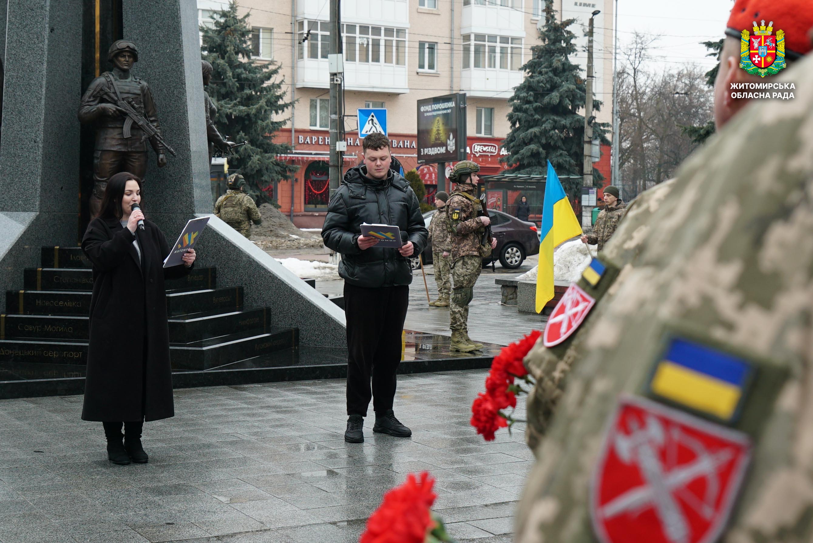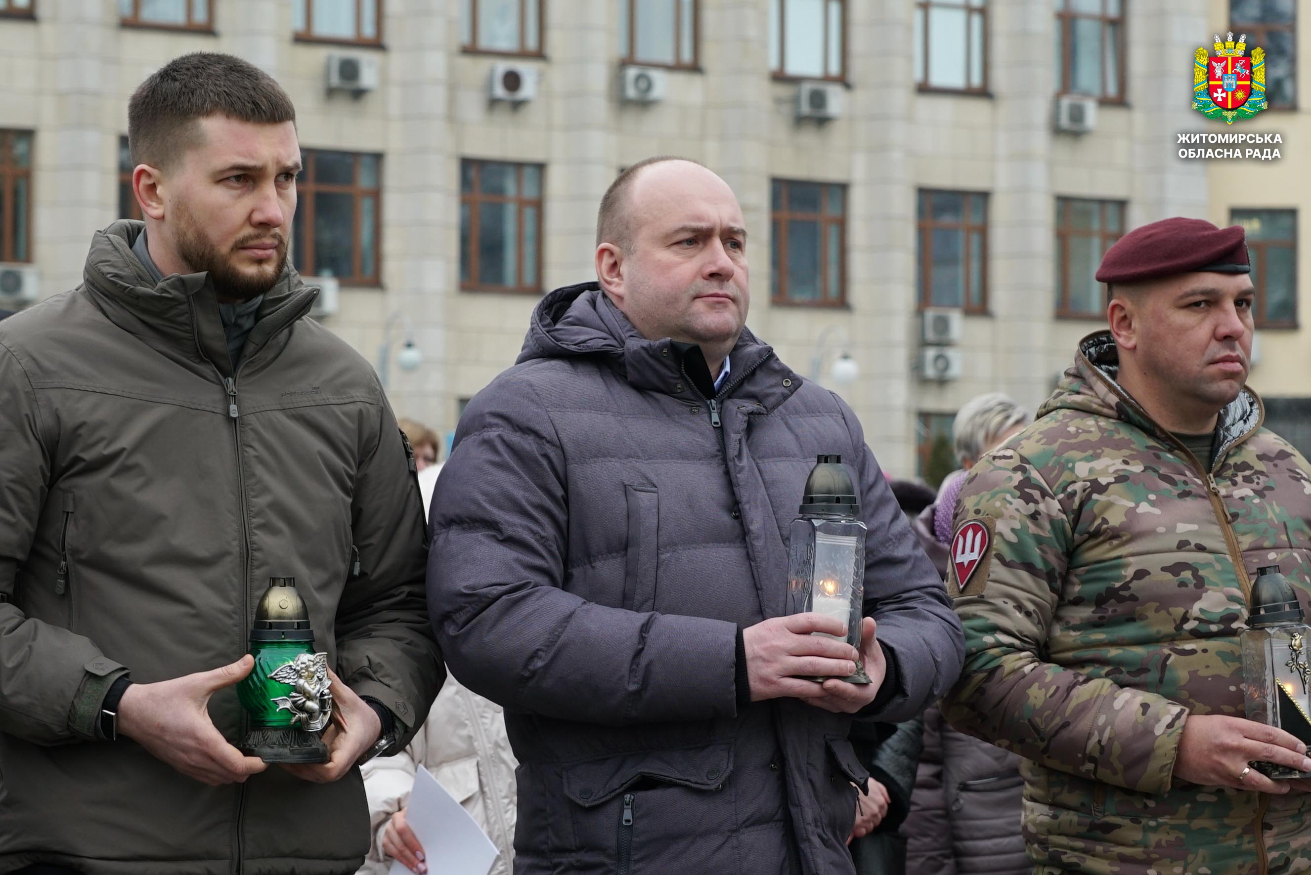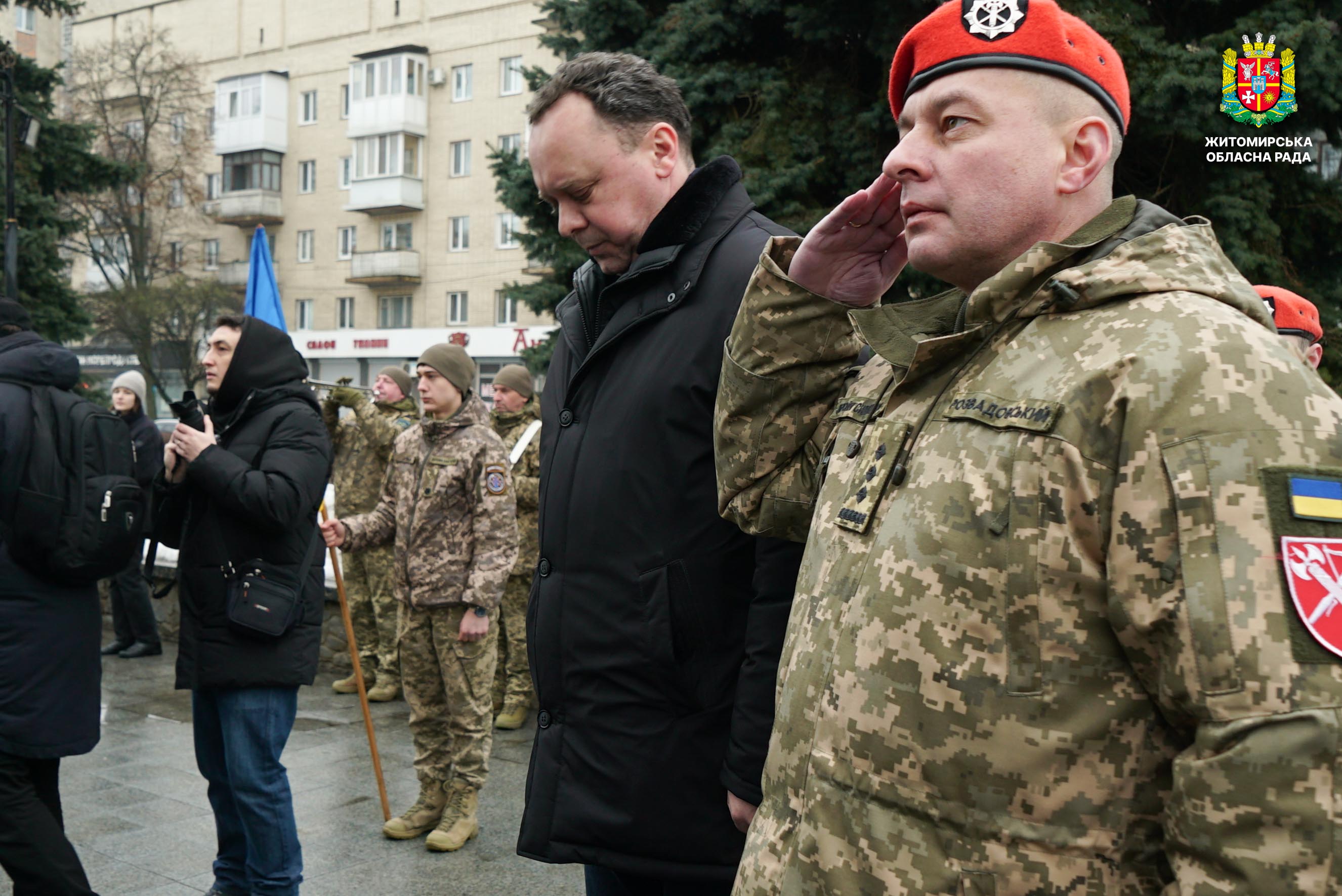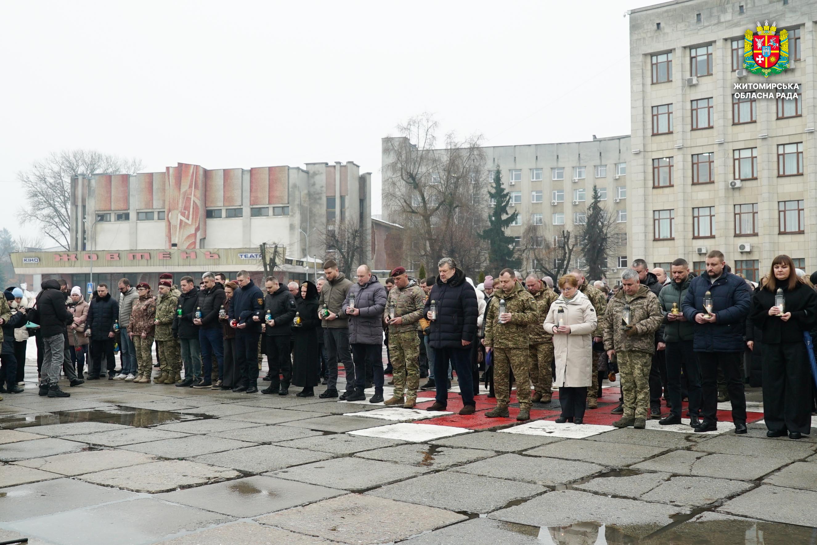 Чотири роки незламності: пам’ять, молитва і вдячність Героям 24 лютого 2026 року — четверта річниця повномасштабного вторгнення росії в Україну. Цей день про тих, хто віддав життя за свободу країни, і про силу народу, який встояв і продовжує боротися за своє майбутнє. Символічно, що цього дня відзначають Національний день молитви — день духовної єдності та спільного прохання про мир, захист і перемогу. З нагоди четвертої річниці повномасштабного російського вторгнення та Національного дня молитви у Житомирі відбулися пам’ятні заходи. У вшануваннях взяли участь перший заступник голови Житомирської обласної ради Олег Дзюбенко, керівництво Житомирської обласної військової адміністрації та Житомирської міської ради, представники виконавчого апарату обласної ради, духовенство, військові, правоохоронці, родини загиблих та громадськість. Меморіальний захід, сповнений скорботи та вдячності, пройшов на Алеї Слави Героїв. Присутні вшанували пам’ять полеглих воїнів хвилиною мовчання, спільно виконали Державний Гімн України у супроводі оркестру 199-го навчального центру Десантно-штурмових військ ЗСУ та встановили лампади до пам'ятних стендів. Представники Ради Християнських Церков Житомирщини провели поминальний молебень. Учасники заходу також вшанували пам’ять Героїв біля пам’ятного знака «Захисникам України у війні з російським агресором» на майдані Перемоги та меморіальних стендів загиблих і померлих учасників Антитерористичної операції та Операції об’єднаних сил. Опісля вшанування продовжилися у Житомирській обласній філармонії імені Святослава Ріхтера, де відбувся духовно-мистецький захід під назвою «Єдність у вірі — сила в боротьбі». Програма поєднала музику, слово та спільну молитву за Україну. «Сьогодні ми вшановуємо наших Героїв, які віддали життя за свободу України, і дякуємо всім, хто продовжує цю боротьбу. Наша сила — у єдності, у підтримці одне одного та вірі, яка не дає нам зламатися навіть у найтемніші часи. Поки ми разом — Україна непереможна», — зазначив перший заступник голови Житомирської обласної ради Олег Дзюбенко. Завершився захід проникливою композицією «Моє ім’я – Україна», що стала символом любові до Батьківщини та віри у її майбутнє.