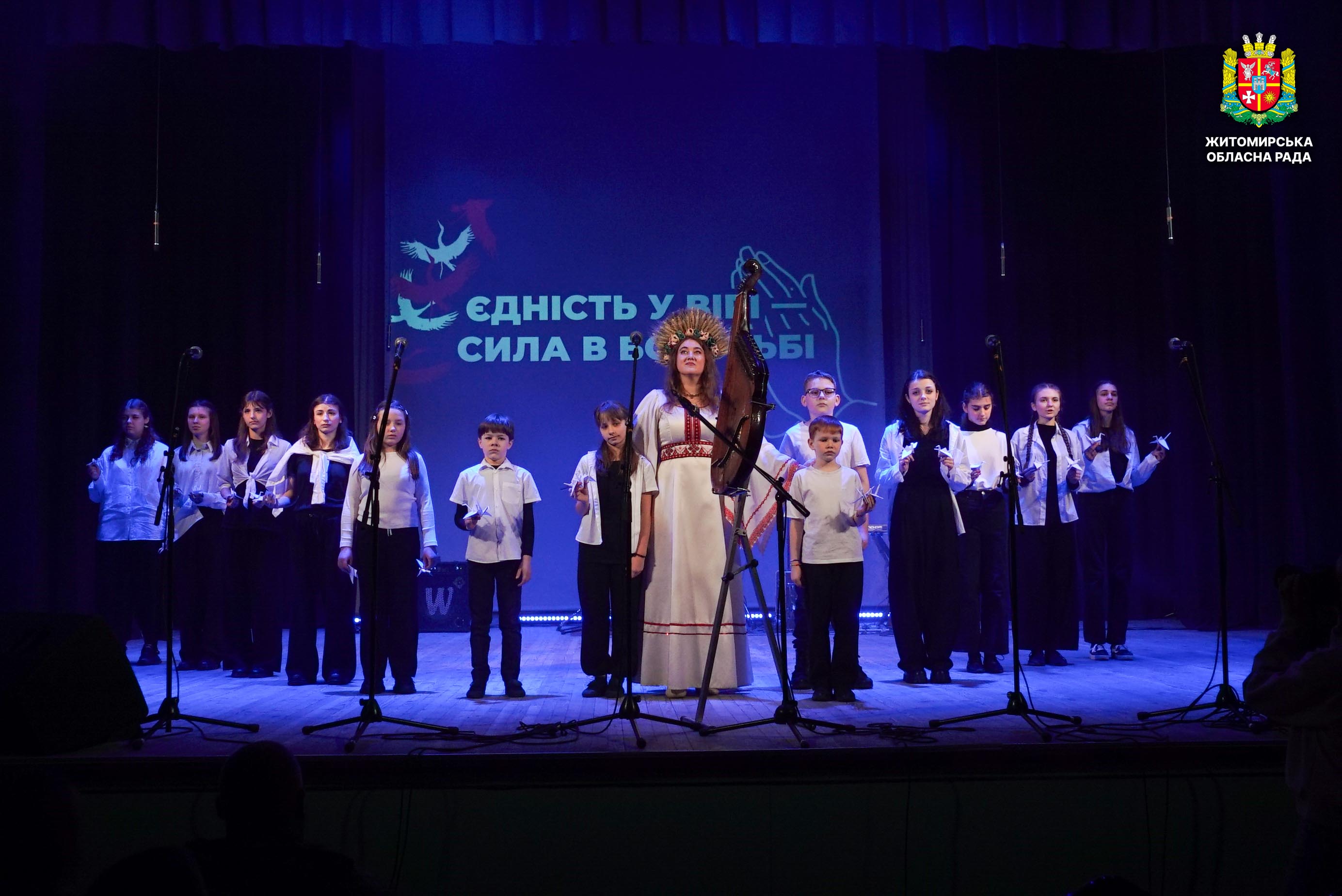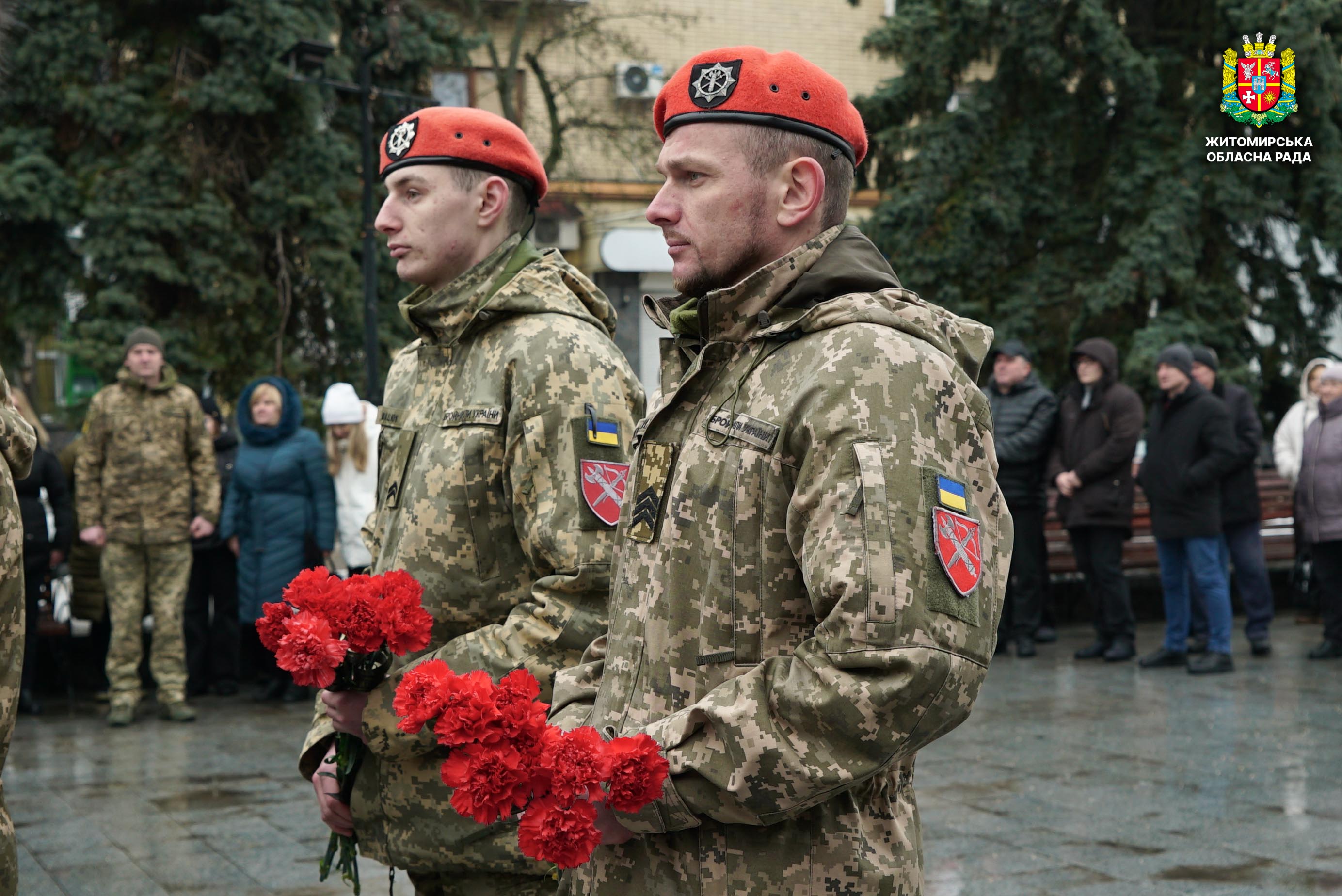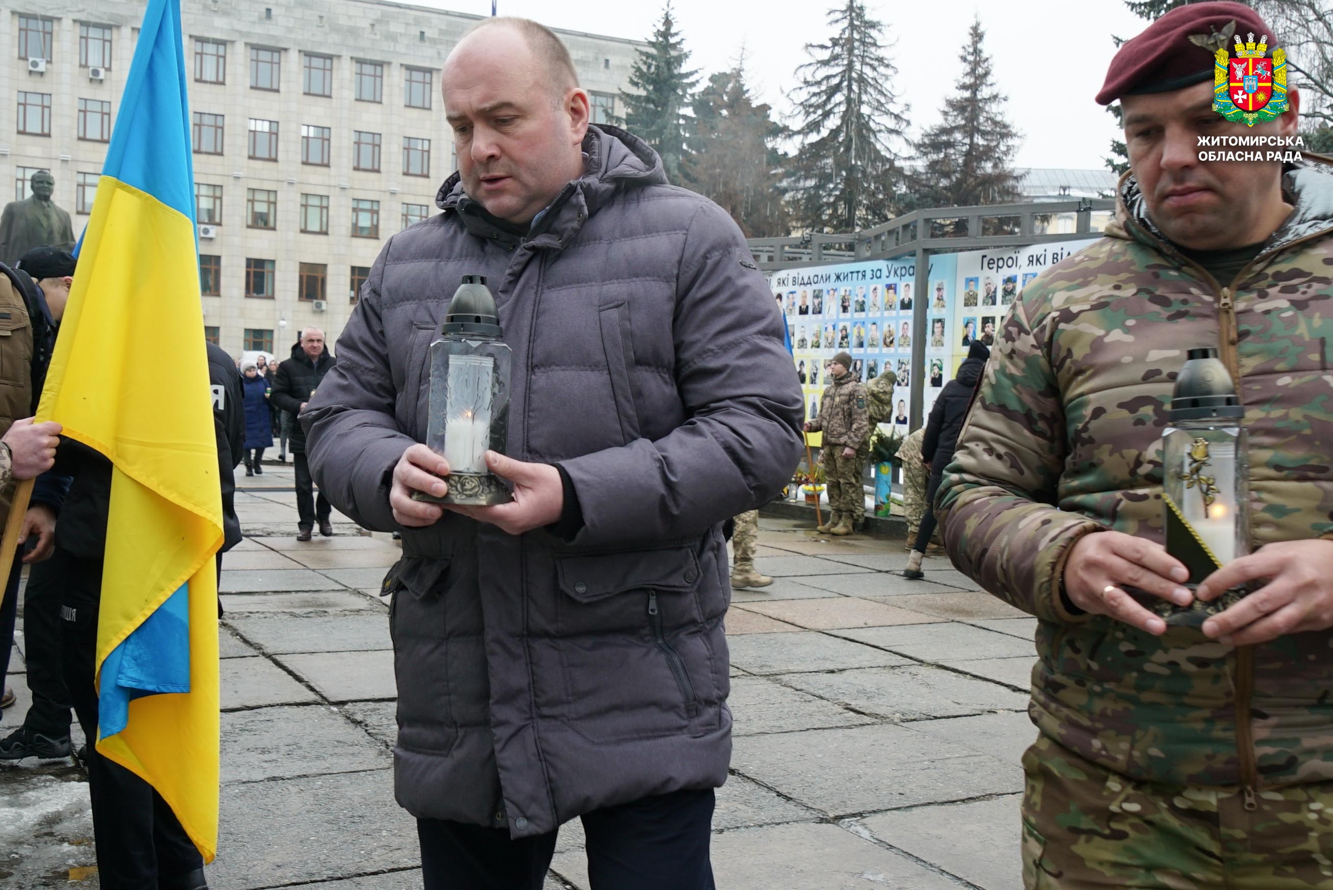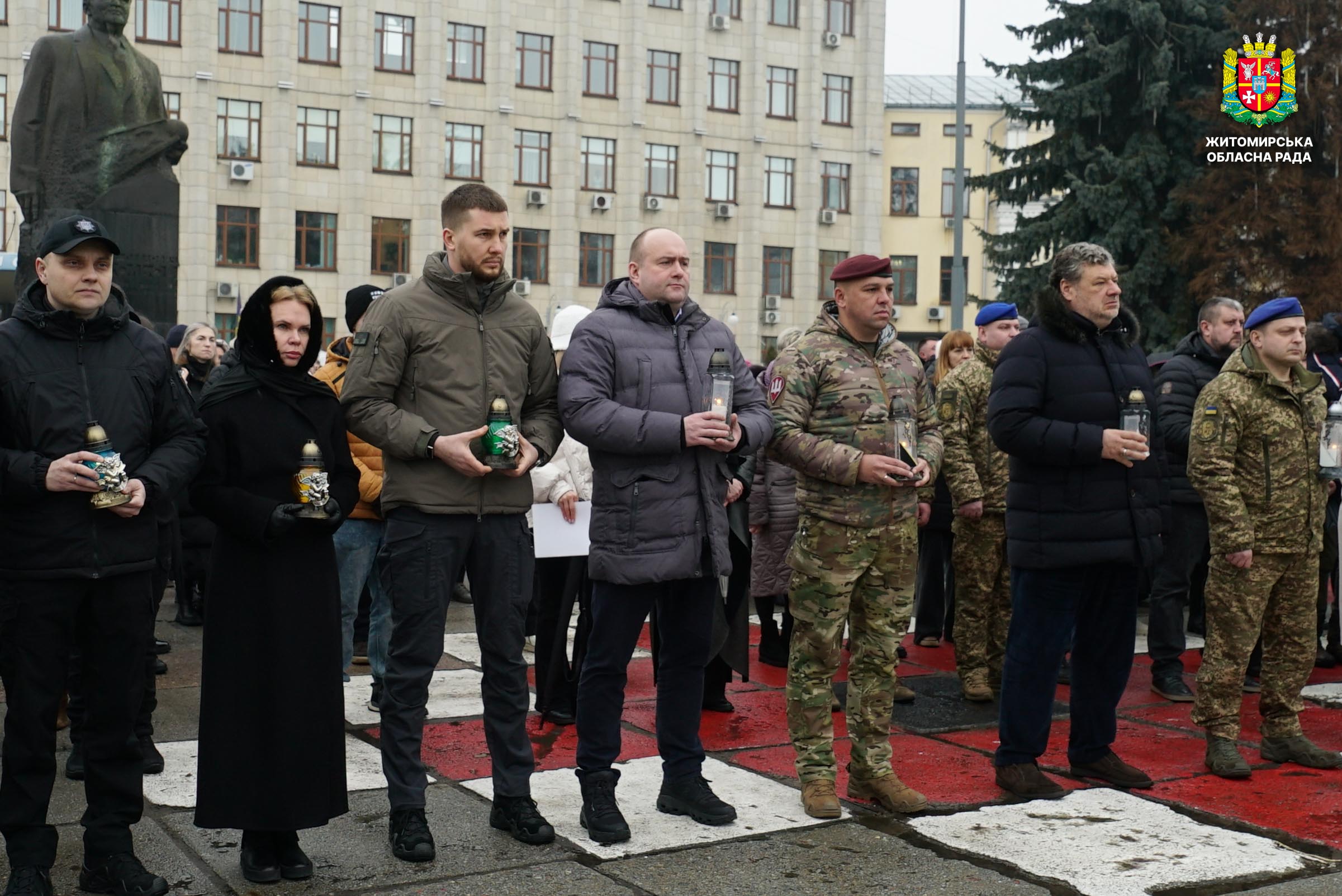 Чотири роки незламності: пам’ять, молитва і вдячність Героям 24 лютого 2026 року — четверта річниця повномасштабного вторгнення росії в Україну. Цей день про тих, хто віддав життя за свободу країни, і про силу народу, який встояв і продовжує боротися за своє майбутнє. Символічно, що цього дня відзначають Національний день молитви — день духовної єдності та спільного прохання про мир, захист і перемогу. З нагоди четвертої річниці повномасштабного російського вторгнення та Національного дня молитви у Житомирі відбулися пам’ятні заходи. У вшануваннях взяли участь перший заступник голови Житомирської обласної ради Олег Дзюбенко, керівництво Житомирської обласної військової адміністрації та Житомирської міської ради, представники виконавчого апарату обласної ради, духовенство, військові, правоохоронці, родини загиблих та громадськість. Меморіальний захід, сповнений скорботи та вдячності, пройшов на Алеї Слави Героїв. Присутні вшанували пам’ять полеглих воїнів хвилиною мовчання, спільно виконали Державний Гімн України у супроводі оркестру 199-го навчального центру Десантно-штурмових військ ЗСУ та встановили лампади до пам'ятних стендів. Представники Ради Християнських Церков Житомирщини провели поминальний молебень. Учасники заходу також вшанували пам’ять Героїв біля пам’ятного знака «Захисникам України у війні з російським агресором» на майдані Перемоги та меморіальних стендів загиблих і померлих учасників Антитерористичної операції та Операції об’єднаних сил. Опісля вшанування продовжилися у Житомирській обласній філармонії імені Святослава Ріхтера, де відбувся духовно-мистецький захід під назвою «Єдність у вірі — сила в боротьбі». Програма поєднала музику, слово та спільну молитву за Україну. «Сьогодні ми вшановуємо наших Героїв, які віддали життя за свободу України, і дякуємо всім, хто продовжує цю боротьбу. Наша сила — у єдності, у підтримці одне одного та вірі, яка не дає нам зламатися навіть у найтемніші часи. Поки ми разом — Україна непереможна», — зазначив перший заступник голови Житомирської обласної ради Олег Дзюбенко. Завершився захід проникливою композицією «Моє ім’я – Україна», що стала символом любові до Батьківщини та віри у її майбутнє.