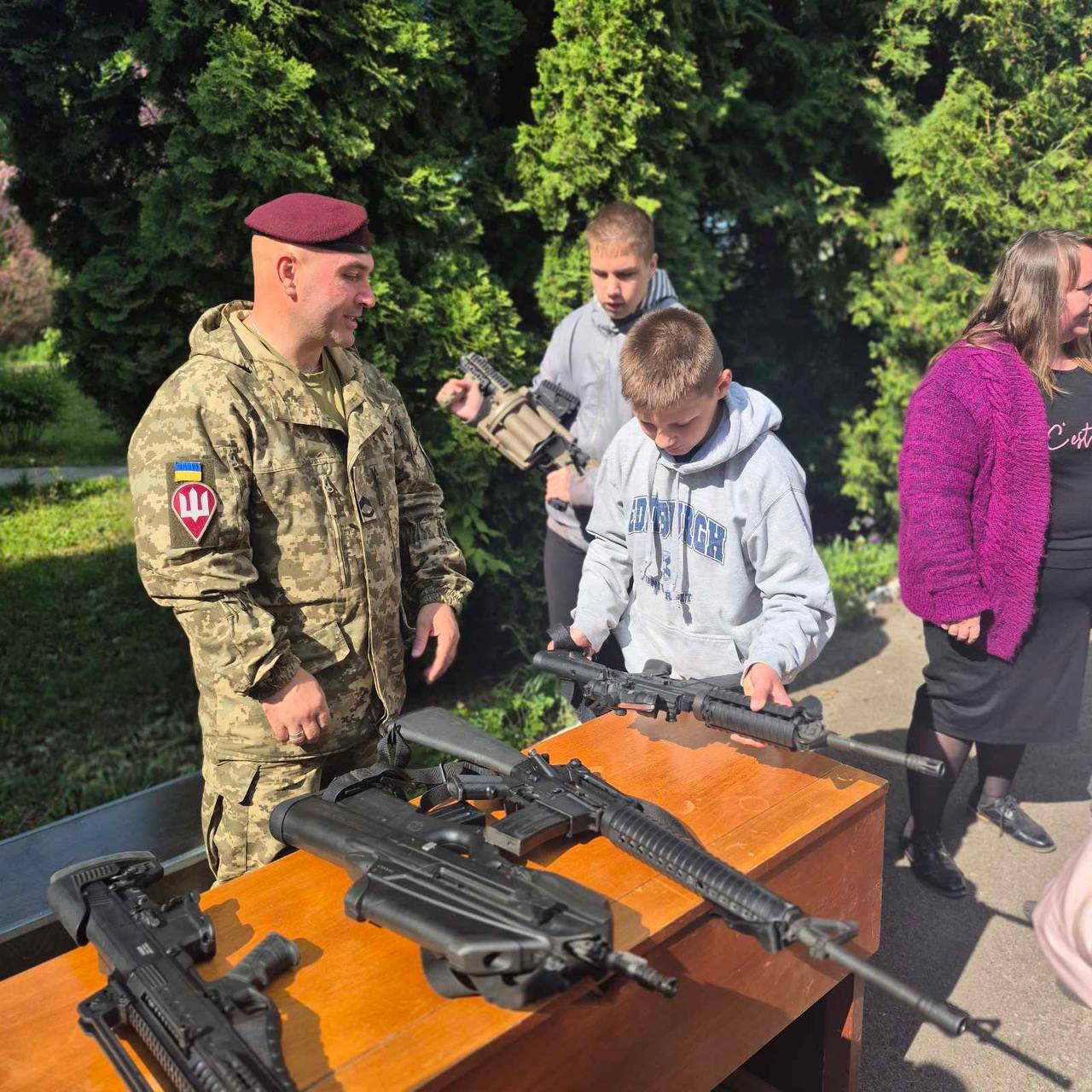 Для дітей з особливими освітніми потребами провели заняття з громадянської оборони за участі військових ДШВ У Житомирській спеціальній школі Житомирської обласної ради відбулося практичне заняття з громадянської оборони для учнів з особливими освітніми потребами. Захід організовано за участі військовослужбовців 199 навчального центру Десантно-штурмових військ Збройних Сил України. Метою заняття стало формування в учнів базових знань і навичок у сфері цивільного захисту, популяризація військово-патріотичного виховання, а також ознайомлення з особливостями служби в Збройних Силах України. Під час заходу школярі ознайомилися з різними зразками стрілецької зброї, спорядженням військовослужбовців, принципами роботи евакуаційної техніки. Діти мали змогу особисто потримати макети зброї, поспілкуватися з військовими, поставити запитання й отримати відповіді. «Особливо дітей зацікавила демонстрація засобів евакуації поранених та спеціального обладнання, яке військові використовують під час рятувальних операцій на полі бою. Такі заходи є надзвичайно важливими в умовах сьогодення. Вони не лише сприяють обізнаності молоді щодо дій у надзвичайних ситуаціях, а й виховують повагу до українських захисників, формують розуміння ролі Збройних Сил у захисті держави, патріотизм, а також любов до рідної країни», — зазначила Світлана Лесик, директорка Житомирської спеціальної школи.