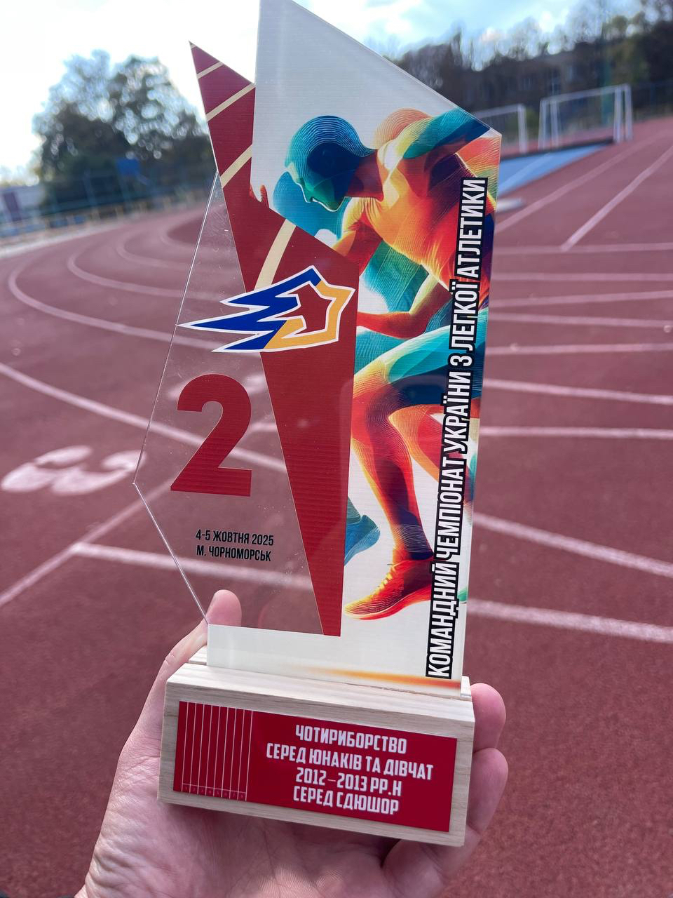 Легкоатлети з Житомирщини вибороли срібло командного чемпіонату України З 3 по 5 жовтня в місті Чорноморськ Одеської області відбувся командний чемпіонат України з легкої атлетики (чотириборство) серед команд закладів фізичної культури і спорту, юнаків та дівчат 2012–2013 років народження. У змаганнях взяли участь близько 200 спортсменів із десяти областей України. Команда Житомирської спеціалізованої дитячо-юнацької спортивної школи олімпійського резерву з легкої атлетики Житомирської обласної ради, до складу якої увійшло вісім вихованців школи, продемонструвала високі результати та посіла друге місце серед спеціалізованих легкоатлетичних шкіл України. Вітаємо спортсменів та їхніх тренерів із успішним виступом і бажаємо нових перемог!