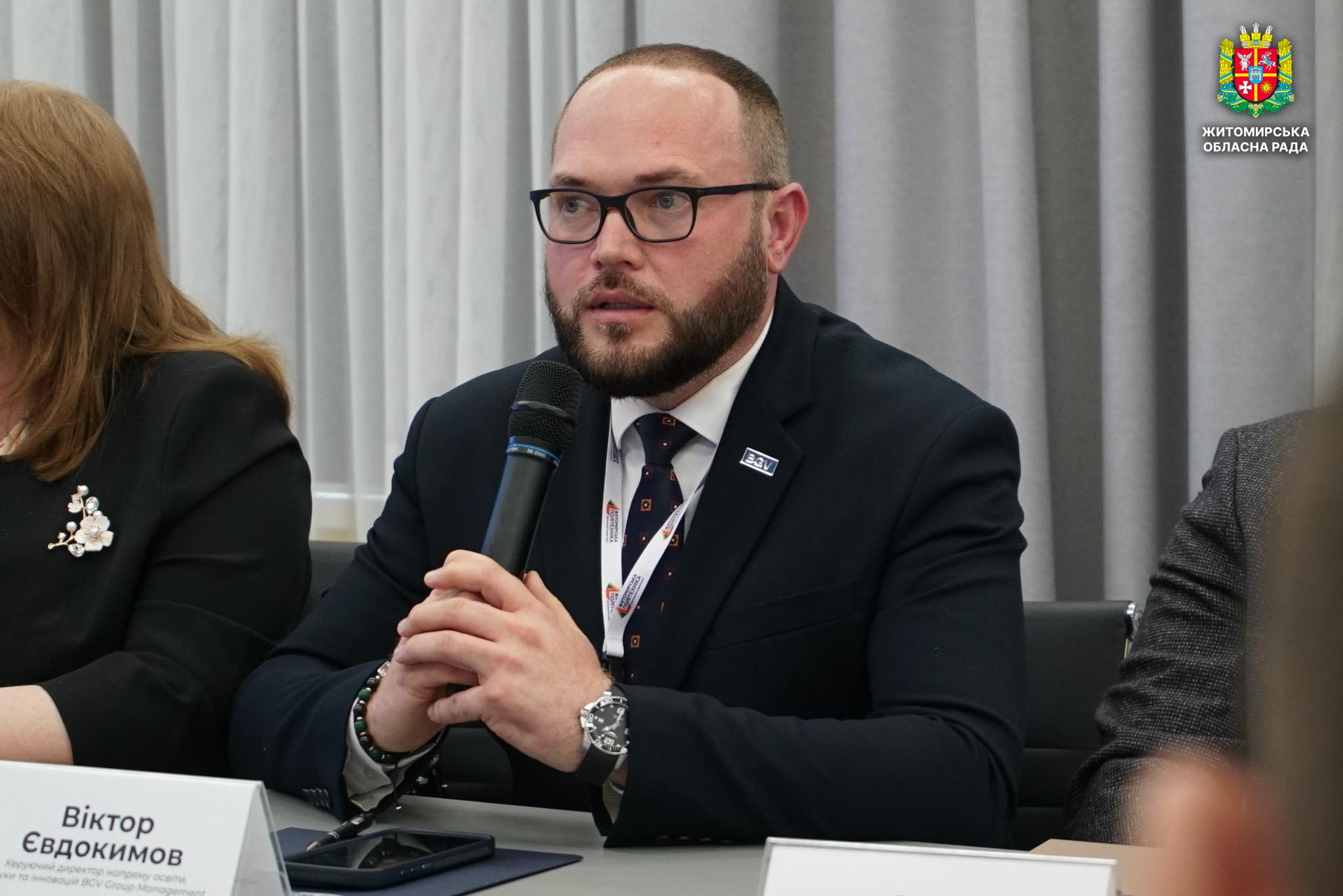 Олег Дзюбенко взяв участь у регіональному форумі з дуальної освіти 3 квітня у Державному університеті «Житомирська політехніка» відбувся форум «Дуальна освіта: інтеграція освіти та ринку праці», участь у якому взяв перший заступник голови Житомирської обласної ради Олег Дзюбенко. Захід об’єднав представників органів влади, освітян, бізнесу та експертів для обговорення розвитку дуальної освіти — ефективної моделі підготовки кадрів відповідно до потреб ринку праці. Форум відбувся за участі заступника Міністра освіти і науки України Миколи Трофименка, начальника Житомирської обласної військової адміністрації Віталія Бунечка, заступниці Житомирського міського голови Світлани Ольшанської, керуючого директора напряму освіти, науки та інновацій BGV Group Management Віктора Євдокимова, в.о. ректора Поліського національного університету, депутата обласної ради Олега Скидана, ректорки Житомирського державного університету імені Івана Франка Галини Киричук. Захід модерувала ректорка Державного університету «Житомирська політехніка», депутатка обласної ради Оксана Олійник. У межах заходу відбулися три панельні дискусії. Перша була присвячена стратегічній взаємодії влади, бізнесу та освіти. Друга зосереджувалася на розвитку екосистеми дуальної освіти і досвіді закладів Житомирщини. Під час третьої обговорювалися потреби сектору економіки та роль бізнесу у підготовці кадрів. «Наразі наша держава живе в реаліях серйозних викликів — війна, потреба у швидкому відновленні, трансформація економіки. У цих умовах важливо, щоб освіта була максимально практичною. Завдяки дуальній освіті студенти набувають реальних навичок ще під час навчання та стають фахівцями, які потрібні ринку праці вже сьогодні»,— зазначив перший заступник голови Житомирської обласної ради Олег Дзюбенко. Він також наголосив, що дуальна освіта має охоплювати не лише заклади вищої освіти, а й професійно-технічну та передвищу освіту, адже ці рівні формують основу кадрового потенціалу. Окрім того, у своєму виступі Олег Дзюбенко підкреслив важливість завершення реформи професійно-технічної освіти, щоб вона відповідала запитам ринку праці.