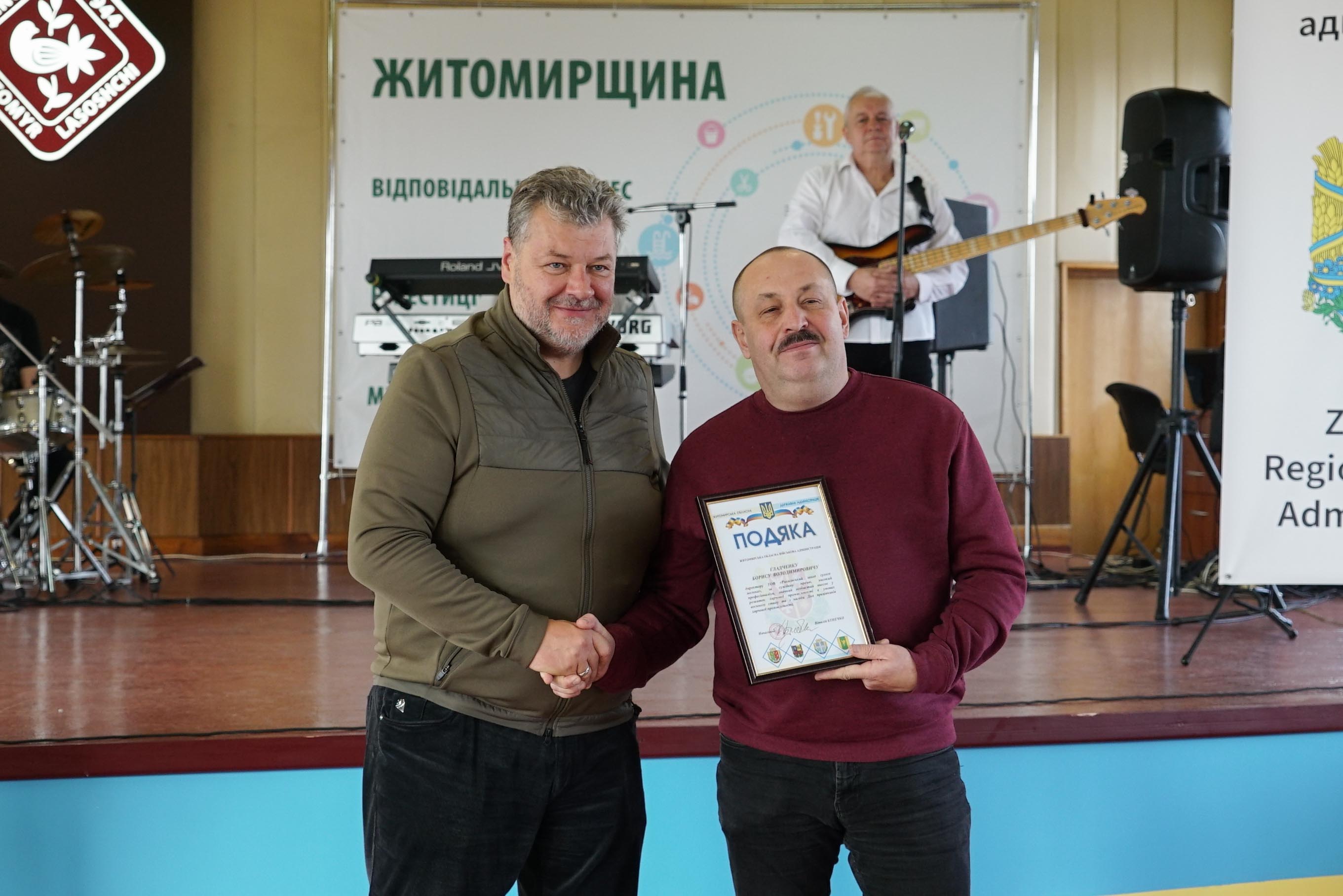 Працівників харчової промисловості Житомирщини відзначили до професійного свята 16 жовтня у межах проєкту «Діалог влади та бізнесу» на базі АТ «Житомирські ласощі» відбулося засідання з нагоди Дня працівників харчової промисловості. В урочистій атмосфері лунали слова подяки тим, хто щодня забезпечує стабільність економіки, розвиває галузь і зберігає виробничі традиції Житомирщини. У заході взяли участь представники влади, харчових виробництв області та підприємці. Від імені першого заступника голови Житомирської обласної ради Олега Дзюбенка та депутатського корпусу із професійним святом працівників харчової промисловості привітала депутатка обласної ради, директорка ТОВ «Торговий дім «Житомирські ласощі» Тетяна Нікітіч. У своєму виступі Тетяна Нікітіч підкреслила, що саме представники галузі створюють якісний український продукт і зміцнюють продовольчу безпеку країни. Вона подякувала всім, хто своєю працею тримає економічний фронт і продовжує розвивати Житомирщину навіть у важкі часи. З вітальним словом до присутніх звернувся начальник Житомирської обласної військової адміністрації Віталій Бунечко, відзначивши професіоналізм і самовідданість працівників харчової промисловості. Під час заходу працівників і колективи підприємств Житомирщини було відзначено відзнаками, зокрема вітальними листами Міністерства економіки, довкілля та сільського господарства України, Подяками Житомирської обласної військової адміністрації та Житомирської обласної ради. З нагоди Дня працівників харчової промисловості, за сумлінну і віддану працю, високий професіоналізм, вагомий внесок у забезпечення продовольчої безпеки області Подякою голови Житомирської обласної ради нагороджено: РУДЕНЬКОГО Андрія Олександровича, засновника та керівника ТОВ «АЛЕНРУД», депутата Житомирської обласної ради; НІКІТІЧ Тетяну Геннадіївну, директорку ТОВ «Торговий дім «Житомирські ласощі», депутатку Житомирської обласної ради; ГАЛЕЦЬКОГО Геннадія Болеславовича, директора ТОВ «М’ясовита»; ПОРТЯНКА Сергія Федоровича, генерального директора ПрАТ «Звягельхліб»; ЯНУШЕВИЧА Миколу Вікторовича, директора ТОВ «Крафтовий світ»; ШУЛЯКА Віктора Володимировича, голову ФГ «Землі Заріччя».