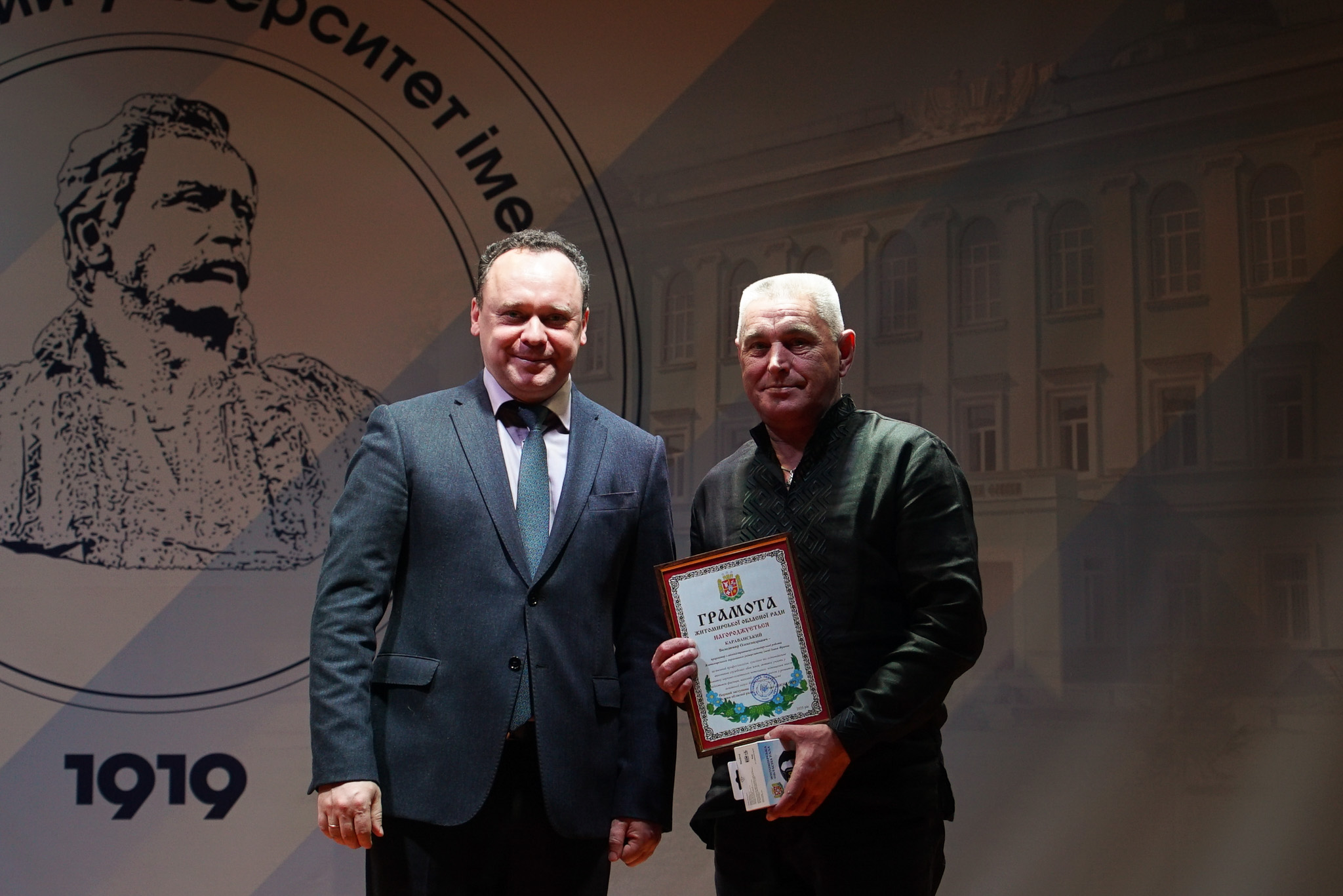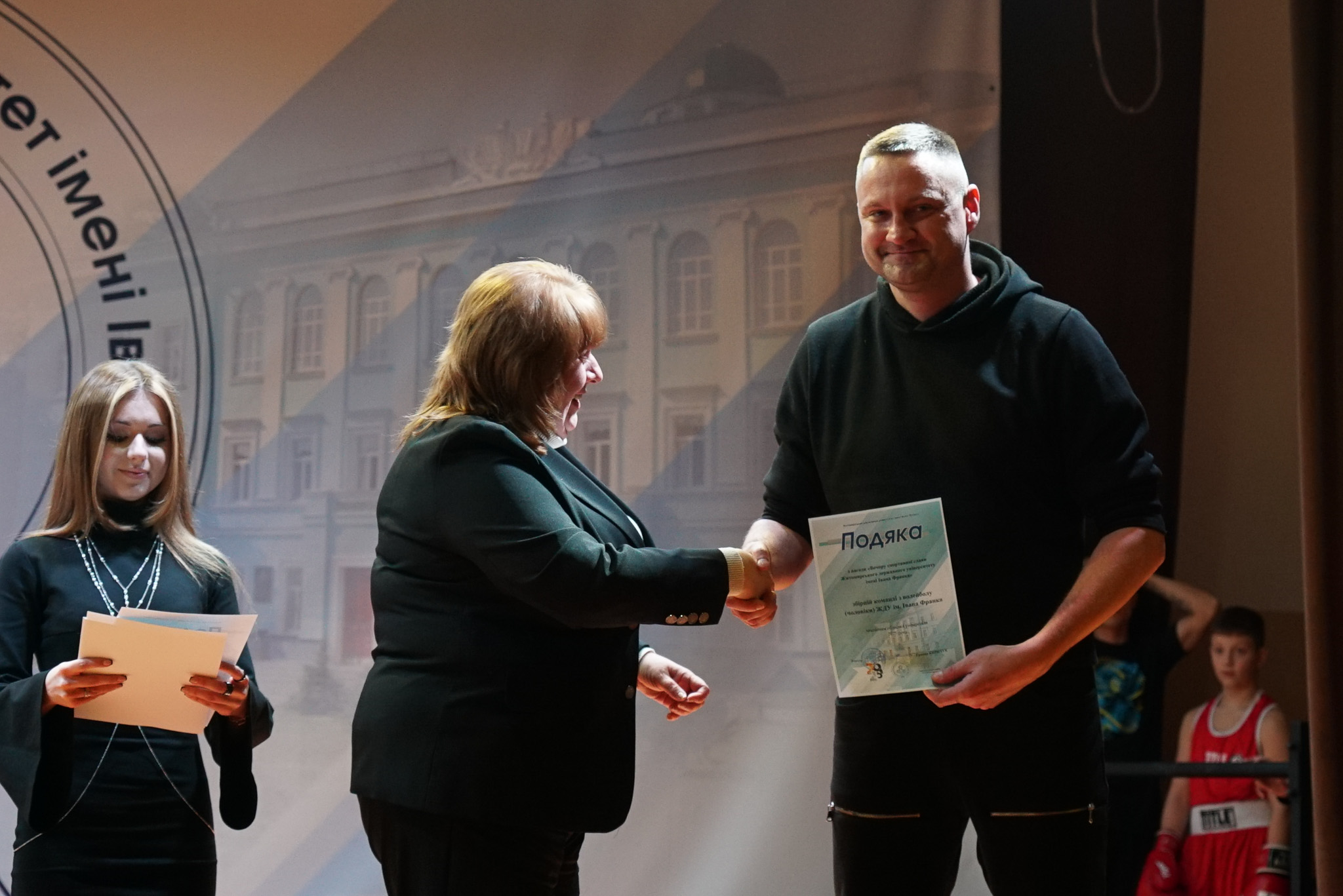 У ЖДУ імені Івана Франка відбувся "Вечір спортивної слави" 3 грудня в актовій залі Житомирського державного університету імені Івана Франка відбувся "Вечір спортивної слави" з нагоди 21-ї річниці факультету фізичного виховання і спорту. В урочистостях взяли участь представники обласної та міської влади, спортсмени, тренери, випускники, викладачі та студенти. За роки свого існування факультет став справжньою кузнею чемпіонів – переможців та призерів всеукраїнських, європейських та світових спортивних змагань, місцем формування характеру й професіоналізму. Серед почесних гостей свята був керуючий справами виконавчого апарату Житомирської обласної ради Віктор Назар. Від імені першого заступника голови обласної ради Олега Дзюбенка та всього депутатського корпусу він привітав спортивну родину факультету з річницею, а також вручив грамоти та подяки обласної ради. «Успіх у спорті народжується там, де є наполеглива праця, дисципліна і командна підтримка. Ваш колектив демонструє це протягом багатьох років, готуючи спортсменів, які здатні досягати високих результатів та прославляти Житомирщину на змаганнях різного рівня. Бажаю вам продовжувати цей шлях, здобувати нові перемоги та впевнено рухатися до найамбітніших цілей»,— зазначив у своїй вітальній промові Віктор Назар. Присутніх також привітали начальник Житомирської ОВА Віталій Бунечко, начальник Управління молоді та спорту Житомирської ОВА Сергій Козловець, ректорка ЖДУ імені Івана Франка Галина Киричук, декан факультету фізичного виховання і спорту Андрій Лайчук та інші гості.