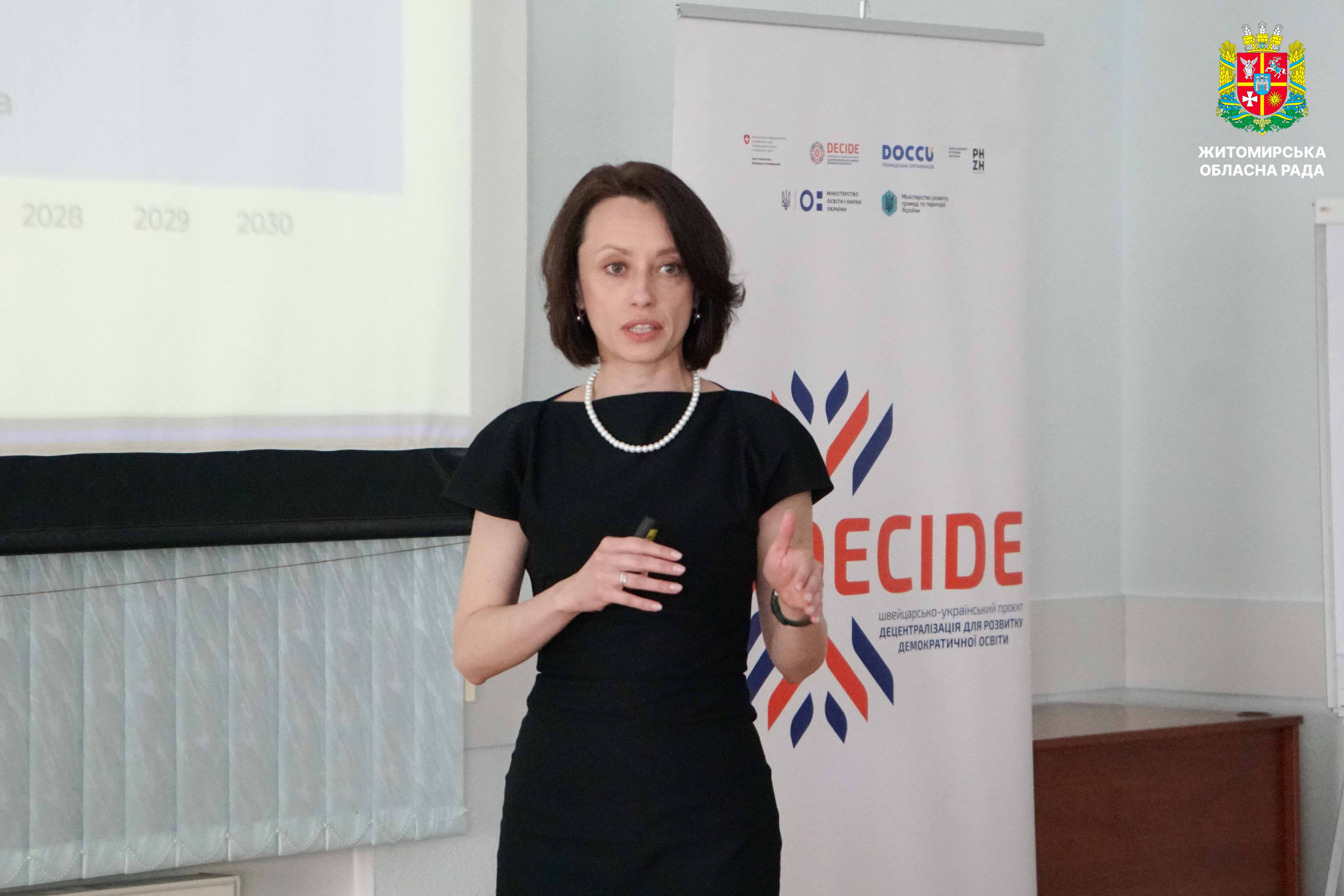 У Житомирі обговорили впровадження реформи старшої профільної школи 15 квітня у Житомирі відбувся семінар-практикум «Реформа старшої профільної школи: можливості і виклики для громади», організований у межах швейцарсько-українського проєкту DECIDE у співпраці з Міністерством освіти і науки України. У заході взяли участь представники центральних органів влади, місцевого самоврядування, освітньої галузі та експертного середовища. Зокрема, заступниця Міністра освіти і науки України Надія Кузьмичова, народні депутати України Богдан Кицак та Сергій Кузьміних, депутатка Житомирської обласної ради Людмила Кицак, менеджерка проєкту DECIDE Валентина Полторак, керівництво Житомирської обласної військової адміністрації. Під час заходу обговорили державну та регіональну політику у сфері профільної середньої освіти, а також практичні аспекти впровадження реформи на рівні громад. Йшлося, зокрема, про формування спроможної мережі ліцеїв, прийняття управлінських рішень на основі даних, реалізацію освітньої субвенції у 2026 році та розвиток співробітництва територіальних громад у сфері освіти. Як зазначила Людмила Кицак, реформа старшої профільної школи потребує відповідальних і виважених рішень. «Реформа старшої профільної школи — це про якість освіти і майбутнє наших дітей. Для громад сьогодні важливо не лише розуміти зміст змін, а й мати практичні інструменти для їх реалізації. Такі заходи дають можливість обмінюватися досвідом, знаходити відповіді на ключові питання та приймати обґрунтовані рішення. Лише спільна і злагоджена робота дозволить досягти якісного результату», — наголосила депутатка. У межах програми семінару учасники також ознайомилися з практичним досвідом організації освітнього процесу під час навчального візиту до ліцею №12 м. Житомира імені С. Ковальчука.