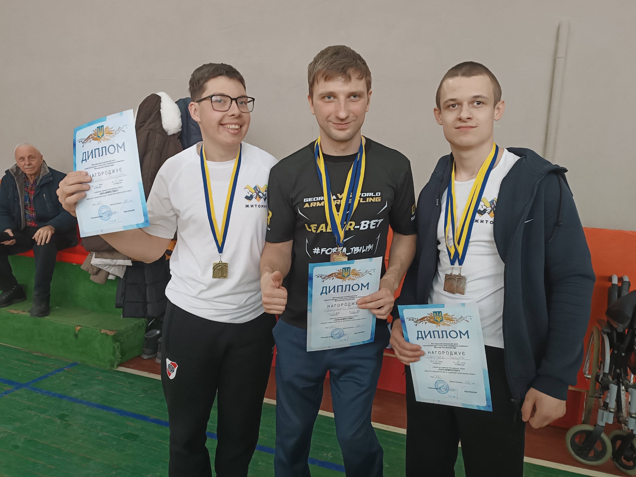 У Житомирі відбувся відкритий чемпіонат області з пара-армрестлінгу для осіб з інвалідністю 19 лютого Житомирський регіональний центр «Інваспорт» Житомирської обласної ради провів відкритий чемпіонат області з пара-армрестлінгу серед осіб з інвалідністю. У змаганнях взяли участь 55 спортсменів із Житомира, Звягеля та Коростеня, а також вихованці Житомирської обласної ДЮСШ осіб з інвалідністю Житомирської обласної ради та Потіївського навчально-реабілітаційного центру Житомирської обласної ради. Спортсмени змагалися на ліву і праву руки у 14 вагових категоріях. Чемпіонами області у своїх вагових категоріях стали: • КОТЮК Олена (Звягель) • ДУЯНОВА Дарина (Житомир) • НАЗАРУК Даніїл (Звягель) • КОСЯНЧУК Ілля (Звягель) • ЗИМАРОЄВ Володимир (Житомир) • ГЛУХАНЮК Олексій (Звягель) • ПАЛЄХА Олександр (Коростень) • ВАСЬКІВСЬКА Марина (Звягель) • ЗАГОРУЙКО Іванна (Звягель) • ШМАТ Іванна (Звягель) • ТРОЦ Анна (Потіївка) • КОНДРАТЕНКО Олена (Коростень) • ПРОЦУН Анна (Звягель) • ОСІПЧУК Михайло (Коростень) • ДЕГТЯРЕНКО Олексій (Звягель) • ЛУЦИШИН Дмитро (Житомир) • ЛЕСЬКО Олексій (Коростень) • ПІНЧУК Олександр (Звягель) • СТРЕТОВИЧ Олексій (Коростень) У загальнокомандному заліку перемогла команда міста Звягель, на ІІ місці — спортсмени з Коростеня, а на ІІІ місці — спортсмени з Житомира. Як зазначають організатори, учасники продемонстрували високий рівень технічної та фізичної підготовки. За підсумками змагань чемпіони та призери вибороли право представляти Житомирщину на чемпіонаті України з пара-армрестлінгу, який заплановано на початок березня цього року. Вітаємо всіх учасників із гідними виступами та бажаємо нових спортивних здобутків!