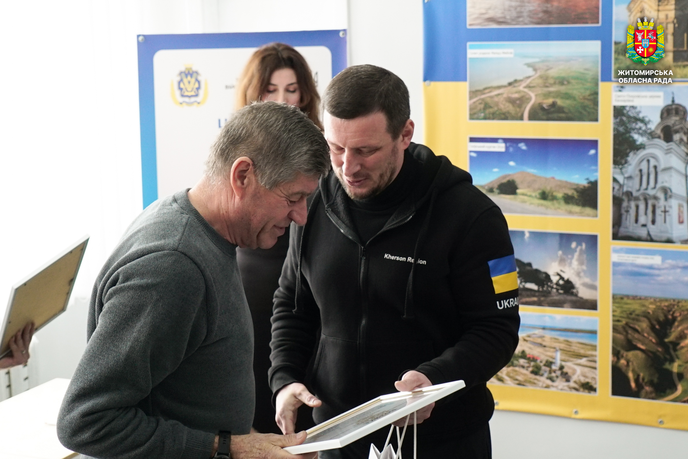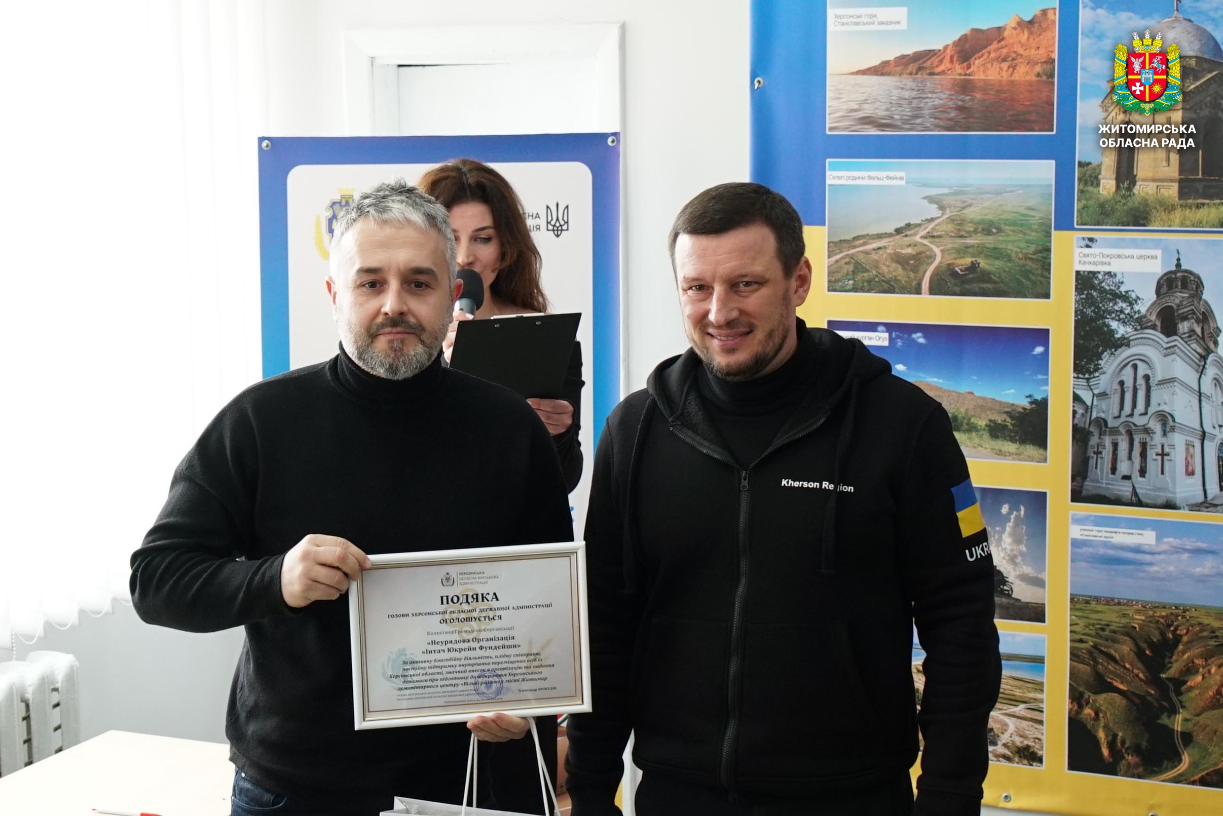 У Житомирі відкрили центр допомоги ВПО з Херсонщини «Вільні разом» 6 лютого у Житомирі відбулося відкриття центру допомоги внутрішньо переміщеним особам з Херсонської області «Вільні разом». Центр створено для надання комплексної підтримки жителям Херсонщини, які через війну були змушені залишити свої домівки та знайшли прихисток на Житомирщині. У заході взяли участь начальник Херсонської обласної військової адміністрації Олександр Прокудін, начальник Житомирської обласної військової адміністрації Віталій Бунечко, керуючий справами виконавчого апарату Житомирської обласної ради Віктор Назар, секретар Житомирської міської ради Галина Шиманська, представники органів влади, громадських і благодійних організацій, міжнародних партнерів та внутрішньо переміщені особи. Перед початком заходу присутні вшанували пам’ять загиблих захисників і захисниць України хвилиною мовчання. Центр «Вільні разом» є частиною всеукраїнської мережі гуманітарних осередків, створених за ініціативи Херсонської обласної військової адміністрації. У центрі надаватимуть інформаційні, психологічні, соціальні та освітні послуги, а також сприятимуть адаптації та інтеграції внутрішньо переміщених осіб. Зокрема, передбачено консультації з відновлення документів та оформлення соціальних виплат, організацію мовних курсів і культурних заходів, а також гуманітарну допомогу та сприяння у пошуку роботи чи житла. Під час заходу Подякою голови Херсонської обласної державної адміністрації було відзначено першого заступника голови Житомирської обласної ради Олега Дзюбенка та депутатський корпус Житомирської обласної ради — за сприяння у створенні центру допомоги ВПО з Херсонщини, надання приміщення для його розміщення та допомогу в проведенні капітального ремонту. Також подяками відзначили директора КП по експлуатації адмінбудинків Житомирської обласної ради Вадима П'янікіна, представників громадських і благодійних організацій та міжнародних партнерів. «Люди, які залишили свій дім через війну, потребують підтримки та розуміння. Важливо, щоб вони відчували, що можуть розраховувати на допомогу і не залишені наодинці зі своїми проблемами»,— зазначив керуючий справами виконавчого апарату Житомирської обласної ради Віктор Назар. Відкриття центру «Вільні разом» стало прикладом міжрегіональної співпраці та практичної підтримки внутрішньо переміщених осіб, які знайшли прихисток на Житомирщині. Центр допомоги ВПО з Херсонщини «Вільні разом» розташований у місті Житомирі за адресою: вул. Шевченка, 18 А.
