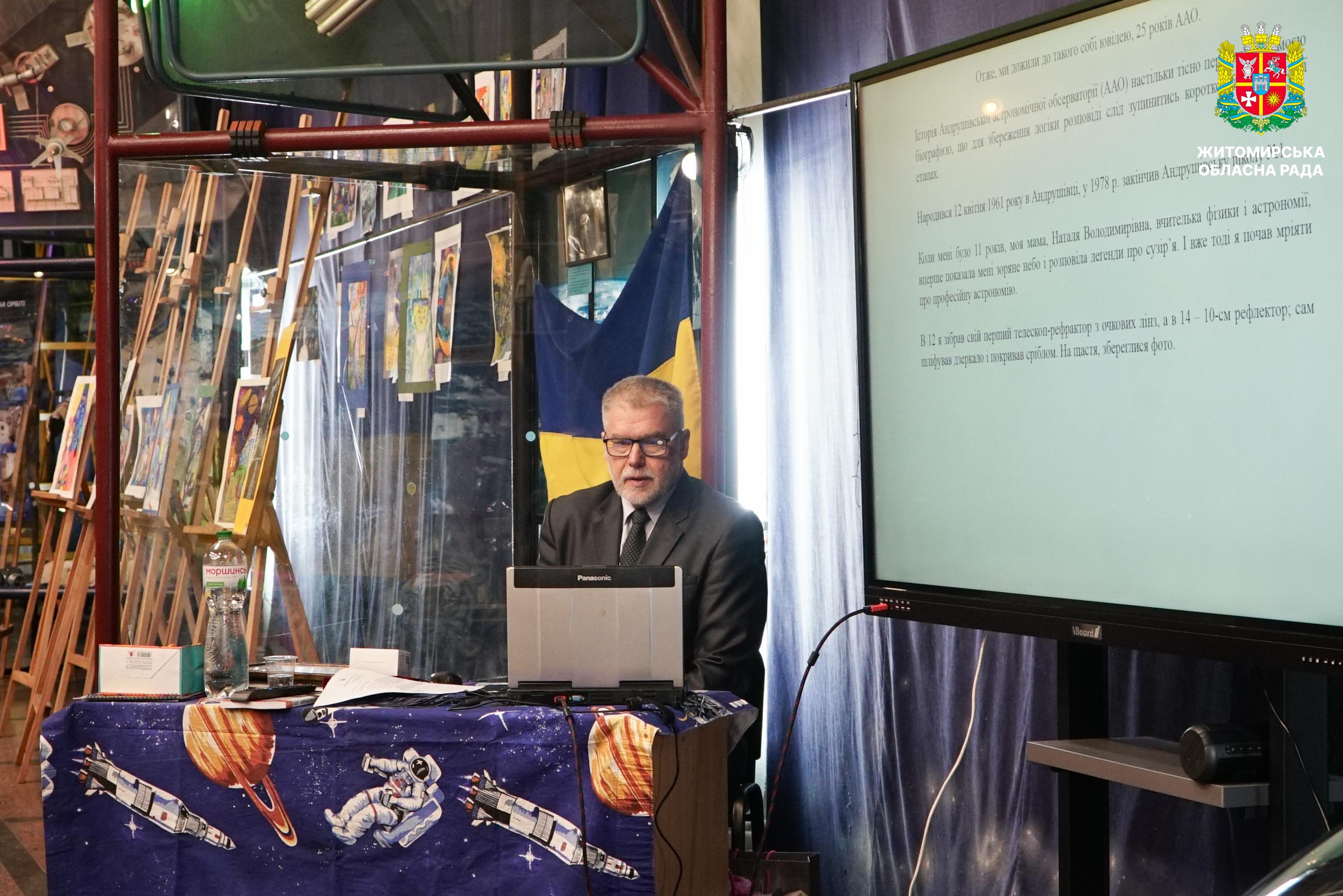 У Житомирі відзначили 25-річчя Андрушівської астрономічної обсерваторії «Липневий ранок» 14 квітня у Національному музеї космонавтики імені Сергія Павловича Корольова відбулися урочистості з нагоди 25-річчя єдиної в Україні приватної астрономічної обсерваторії «Липневий ранок». Захід об’єднав представників наукової спільноти, органів влади, партнерів установи та громадськість. Зокрема, в урочистостях взяли участь депутат Житомирської обласної ради Олег Скидан, заступниця начальника Житомирської обласної військової адміністрації Наталія Арендарчук, начальниця Управління культури та туризму Житомирської ОВА Тетяна Руденька, керуючий справами виконавчого апарату Житомирської обласної ради Віктор Назар. Захід відкрила директорка Національного музею космонавтики імені С. П. Корольова, депутатка Житомирської обласної ради Ірина Дячук. Вона привітала засновника та директора обсерваторії Юрія Іващенка з ювілеєм установи від імені першого заступника голови Житомирської обласної ради Олега Дзюбенка та всього депутатського корпусу. У своєму виступі Ірина Дячук побажала подальших наукових здобутків, нових відкриттів та невичерпного натхнення. Також Ірина Дячук вручила Юрію Іващенку грамоту Житомирської обласної ради. Під час заходу учасники мали змогу ознайомитися з історією створення обсерваторії, її етапами розвитку та науковими досягненнями. Зокрема, директор обсерваторії Юрій Іващенко представив результати 25-річної діяльності установи. Окрім того, у межах заходу відкрито ювілейну виставку з архівними матеріалами та фотографіями. Довідково. Андрушівська астрономічна обсерваторія — перша приватна астрономічна обсерваторія в Україні, створена 12 квітня 2001 року в селі Гальчин поблизу міста Андрушівка на Житомирщині. Її засновником став український астроном-ентузіаст Юрій Іващенко, який започаткував проєкт із метою розвитку незалежних астрономічних спостережень в Україні та участі в міжнародних дослідженнях малих тіл Сонячної системи. Від початку діяльності обсерваторія стала одним із наукових центрів аматорської та напівпрофесійної астрономії в Україні. Вона спеціалізується на пошуку астероїдів, спостереженнях за космічним сміттям і об’єктами техногенного походження. Завдяки систематичним спостереженням тут було відкрито понад 300 астероїдів, частина з яких отримала назви, пов’язані з українською географією та культурою. У міжнародному науковому середовищі обсерваторія здобула визнання як один із активних центрів відкриття малих планет, увійшовши до світового рейтингу відкривачів астероїдів. Сьогодні обсерваторія продовжує роботу, використовуючи сучасне телескопічне обладнання та відкриваючи можливості для екскурсій, освітніх програм і популяризації астрономічних знань серед широкої аудиторії.