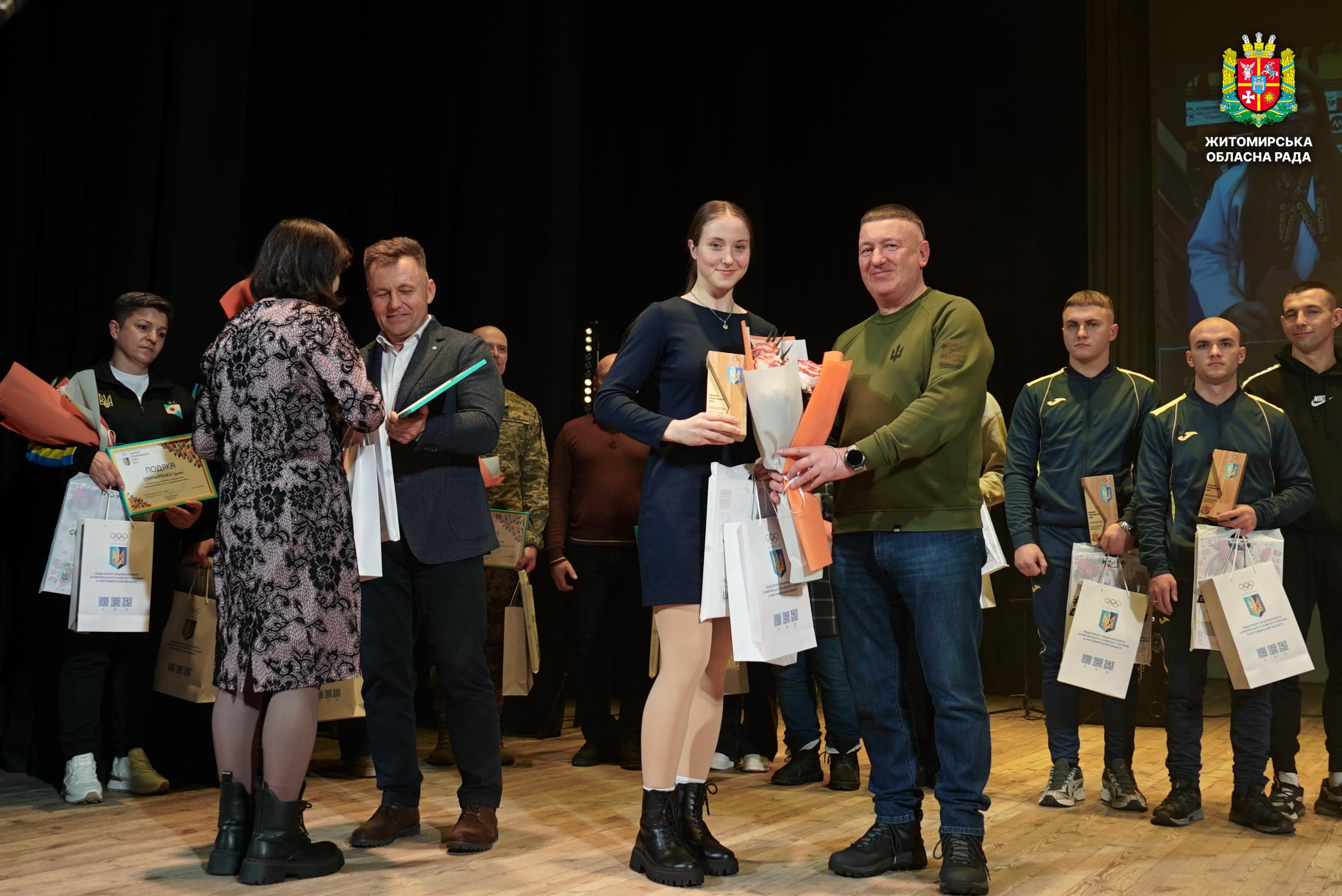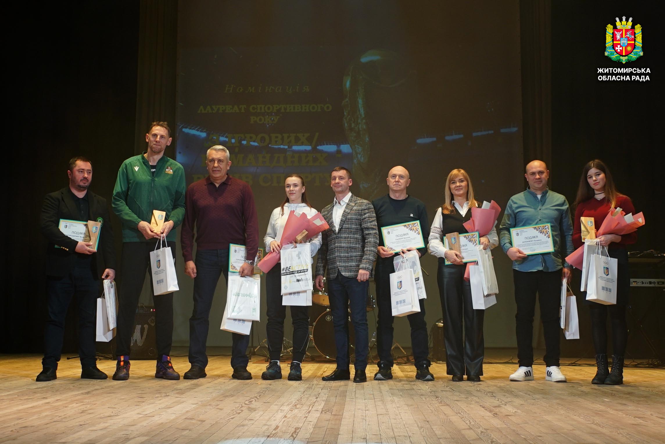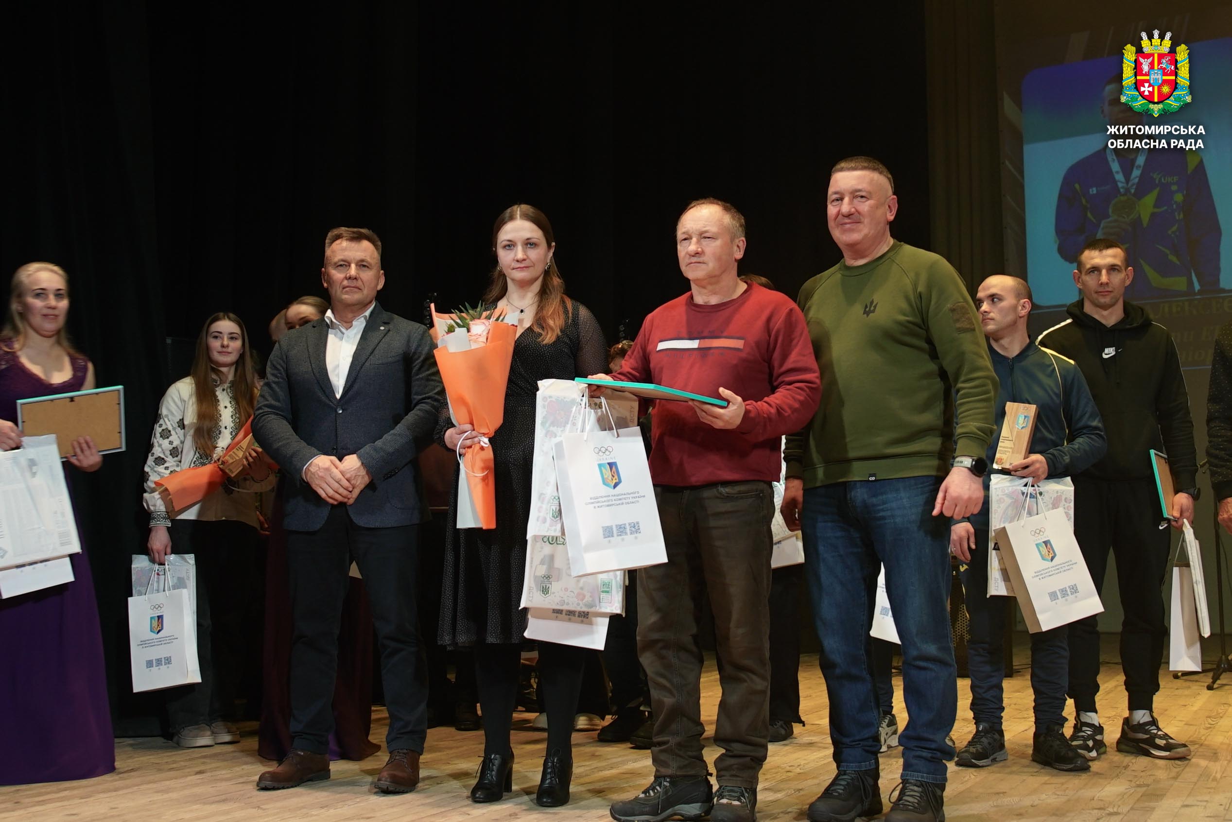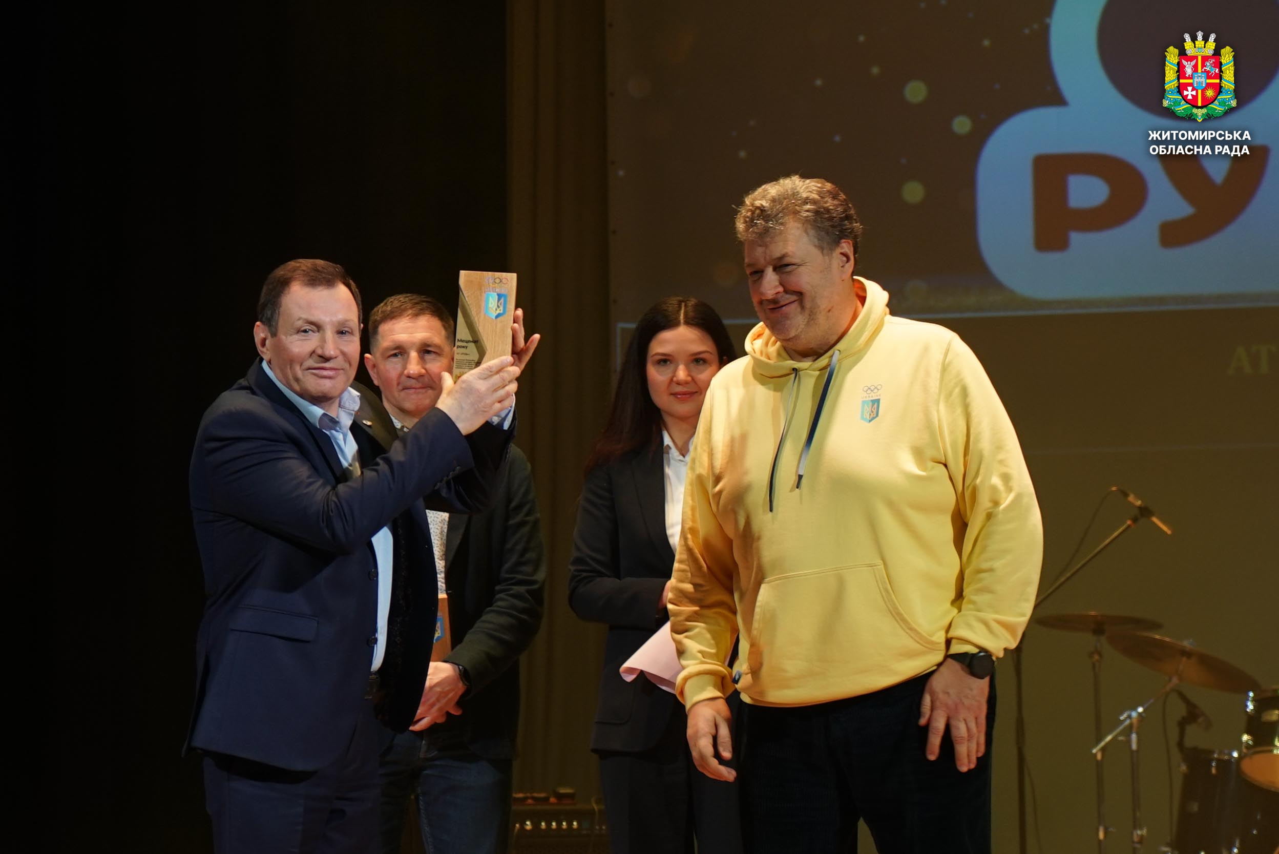У Житомирі відзначили лауреатів спортивного 2025 року 28 січня у Житомирській обласній філармонії імені Святослава Ріхтера відбулася урочиста церемонія нагородження «Лауреати спортивного 2025 року» — одна з найяскравіших подій спортивного життя області. Церемонія пройшла в особливій атмосфері — зі словами вдячності українським захисникам і захисницям та вшануванням пам’яті представників спортивної спільноти, які віддали життя за свободу України. Під час заходу відзначили спортсменів і тренерів — призерів всеукраїнських і міжнародних змагань, представників олімпійських і неолімпійських видів спорту, спортсменів з інвалідністю, команди й клуби, а також меценатів і партнерів, які підтримують розвиток спорту на Житомирщині. Серед відзначених благодійників — депутат Житомирської обласної ради, президент АТ «Рудь» Петро Рудь, який активно сприяє розвитку олімпійського руху та підтримує спортсменів. Від імені першого заступника голови Житомирської обласної ради Олега Дзюбенка та всього депутатського корпусу учасників урочистостей привітали депутати обласної ради Олександр Дмитрук та Микола Григорович, які подякували спортсменам і тренерам за працю, наполегливість і гідне представлення області на спортивних аренах. «Спорт — це характер, дисципліна та витривалість. Сильна, свідома молодь, яка займається спортом, формує міцну націю, а міцна нація — запорука нашої Перемоги», — підкреслив у своєму вітальному слові Олександр Дмитрук. Микола Григорович висловив слова вдячності чемпіонам, викладачам та батькам, а також окремо подякував факультету фізичного виховання і спорту Житомирського державного університету імені Івана Франка за підготовку вчителів та тренерів. Під час церемонії також пролунали вітальні слова від керівництва Житомирської обласної військової адміністрації, Національного олімпійського комітету України. Відбулися вручення нагород, почесних звань та відзнак лауреатам спортивного року. Окрасою заходу стали музичні та хореографічні виступи, показові номери спортивних і творчих колективів області.