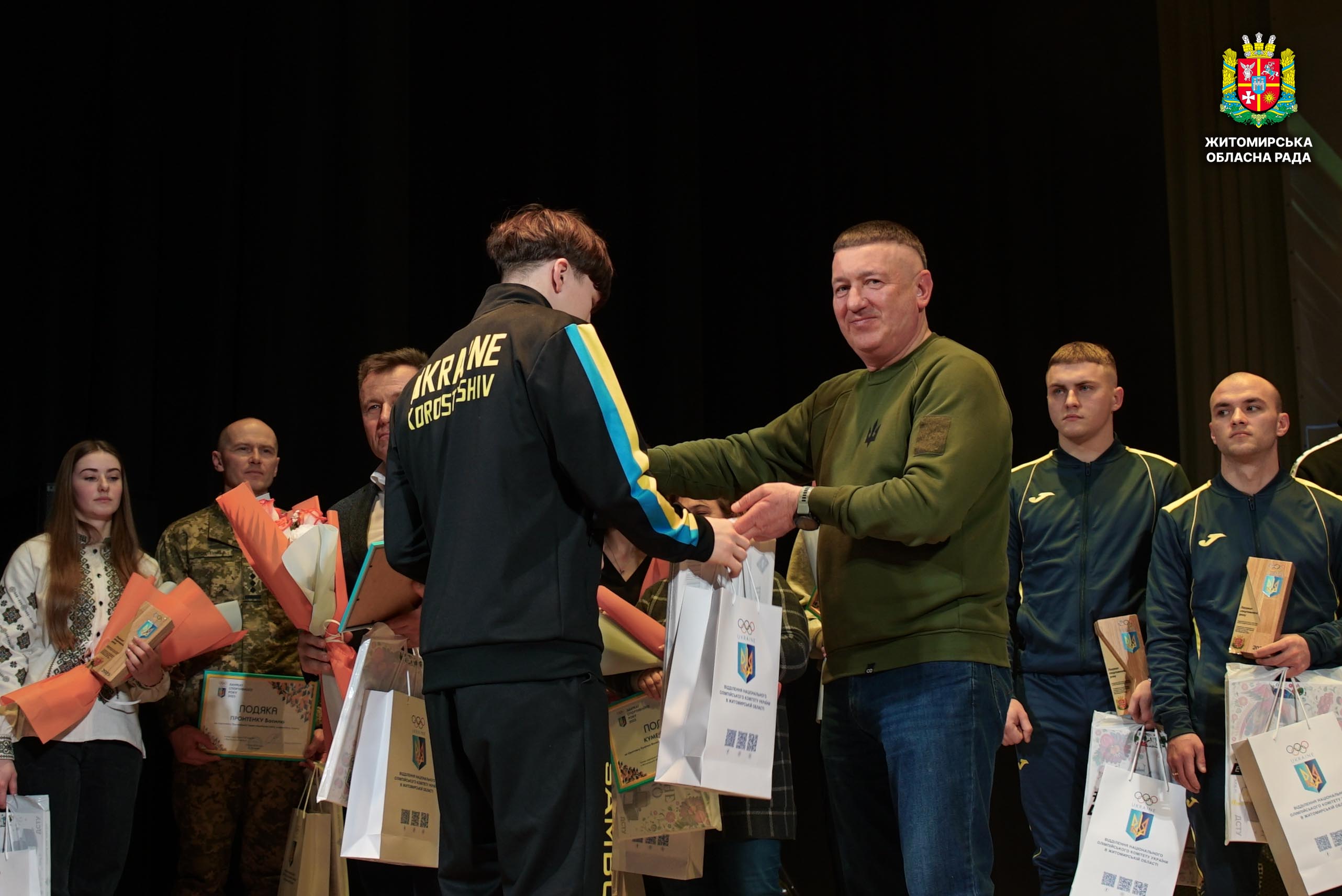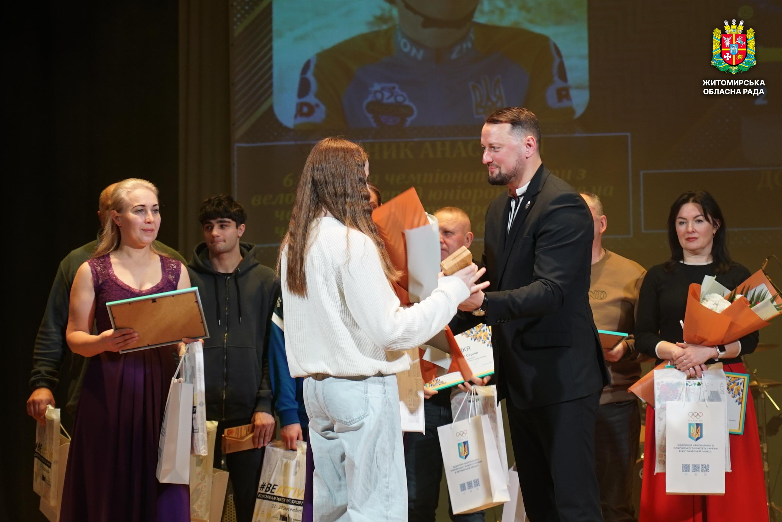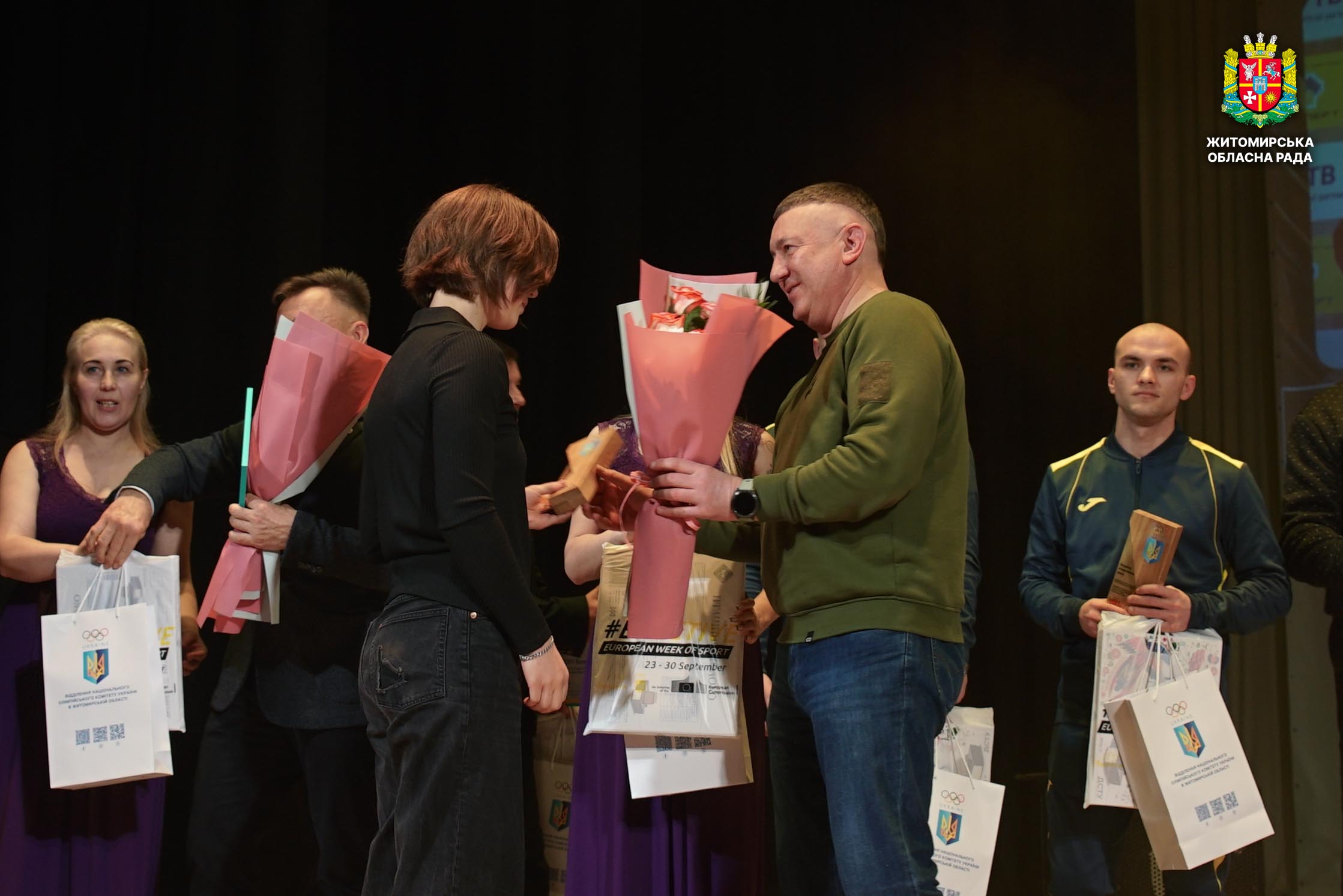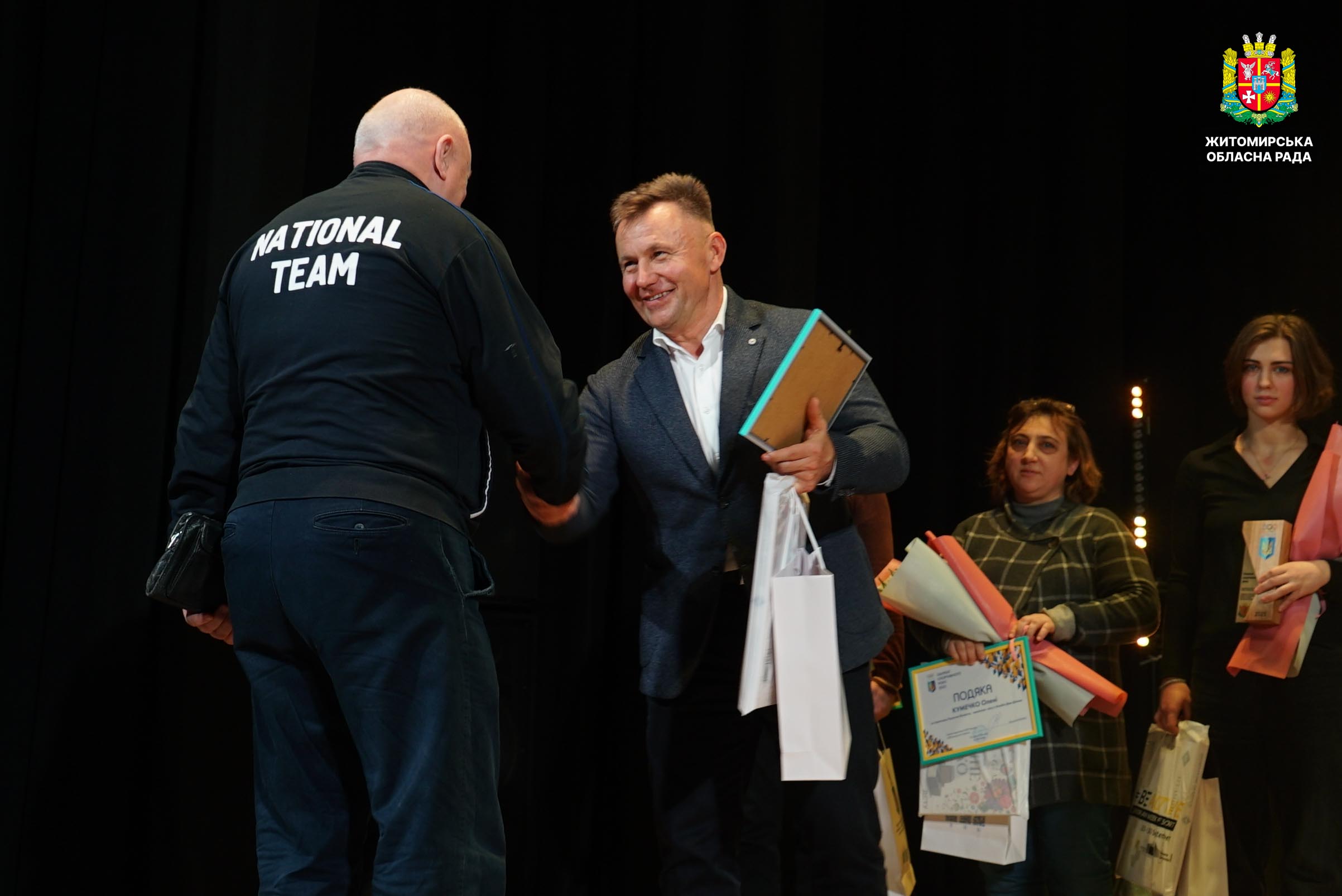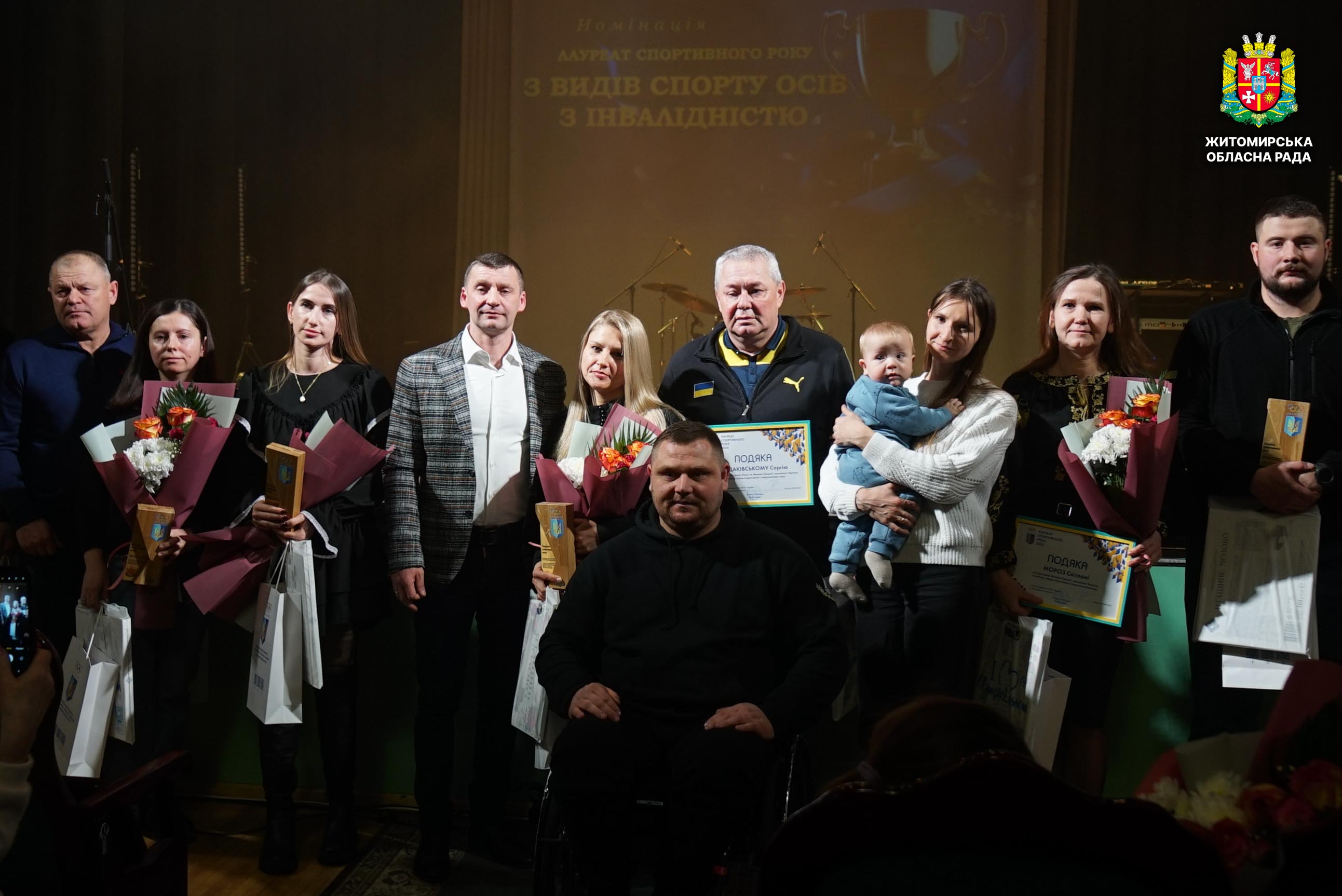 У Житомирі відзначили лауреатів спортивного 2025 року 28 січня у Житомирській обласній філармонії імені Святослава Ріхтера відбулася урочиста церемонія нагородження «Лауреати спортивного 2025 року» — одна з найяскравіших подій спортивного життя області. Церемонія пройшла в особливій атмосфері — зі словами вдячності українським захисникам і захисницям та вшануванням пам’яті представників спортивної спільноти, які віддали життя за свободу України. Під час заходу відзначили спортсменів і тренерів — призерів всеукраїнських і міжнародних змагань, представників олімпійських і неолімпійських видів спорту, спортсменів з інвалідністю, команди й клуби, а також меценатів і партнерів, які підтримують розвиток спорту на Житомирщині. Серед відзначених благодійників — депутат Житомирської обласної ради, президент АТ «Рудь» Петро Рудь, який активно сприяє розвитку олімпійського руху та підтримує спортсменів. Від імені першого заступника голови Житомирської обласної ради Олега Дзюбенка та всього депутатського корпусу учасників урочистостей привітали депутати обласної ради Олександр Дмитрук та Микола Григорович, які подякували спортсменам і тренерам за працю, наполегливість і гідне представлення області на спортивних аренах. «Спорт — це характер, дисципліна та витривалість. Сильна, свідома молодь, яка займається спортом, формує міцну націю, а міцна нація — запорука нашої Перемоги», — підкреслив у своєму вітальному слові Олександр Дмитрук. Микола Григорович висловив слова вдячності чемпіонам, викладачам та батькам, а також окремо подякував факультету фізичного виховання і спорту Житомирського державного університету імені Івана Франка за підготовку вчителів та тренерів. Під час церемонії також пролунали вітальні слова від керівництва Житомирської обласної військової адміністрації, Національного олімпійського комітету України. Відбулися вручення нагород, почесних звань та відзнак лауреатам спортивного року. Окрасою заходу стали музичні та хореографічні виступи, показові номери спортивних і творчих колективів області.