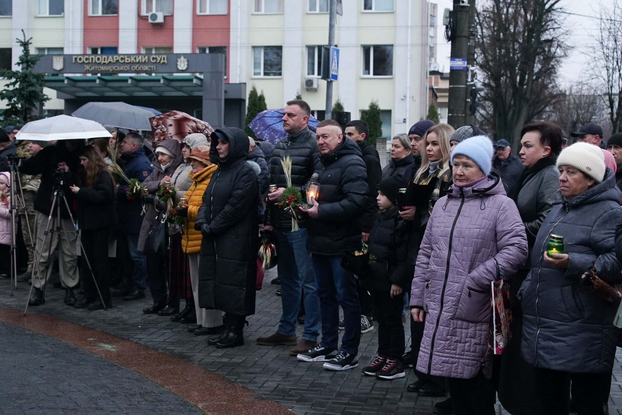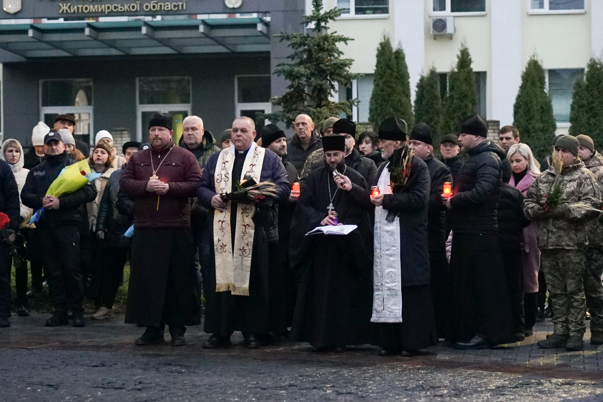 У Житомирі вшанували пам’ять жертв Голодоморів Щороку у четверту суботу листопада Україна вшановує пам’ять жертв Голодомору 1932–1933 років та масових штучних голодів 1921–1923 і 1946–1947 років. Ці злочини радянського тоталітарного режиму знищили мільйони людських життів і назавжди залишилися скорботною сторінкою нашої історії. 22 листопада до пам’ятного знака «Сумуючий янгол» прийшли представники влади, правоохоронних органів, військовослужбовці, духовенство та громадськість, аби вшанувати памʼять жертв Голодоморів. У меморіальному заході взяли участь депутати Житомирської обласної ради Тетяна Парфентієва, Ірина Дячук та Олександр Дмитрук, представники виконавчого апарату обласної ради, керівництво Житомирської ОВА та Житомирської міської влади. О 16:00 присутні долучилися до загальнонаціональної хвилини мовчання, вшановуючи загиблих. Творчі колективи Житомирського фахового коледжу культури і мистецтв ім. І. Огієнка та Житомирської обласної філармонії ім. С. Ріхтера представили театралізований пролог «Невиліковна рана мого народу», після чого представники Ради Християнських Церков Житомирщини провели поминальний молебень. Також учасники заходу долучилися до Всеукраїнської акції «Запали свічку пам’яті», поклали композиції із колоссям і встановили лампади до пам’ятного знака. Памʼятаємо…