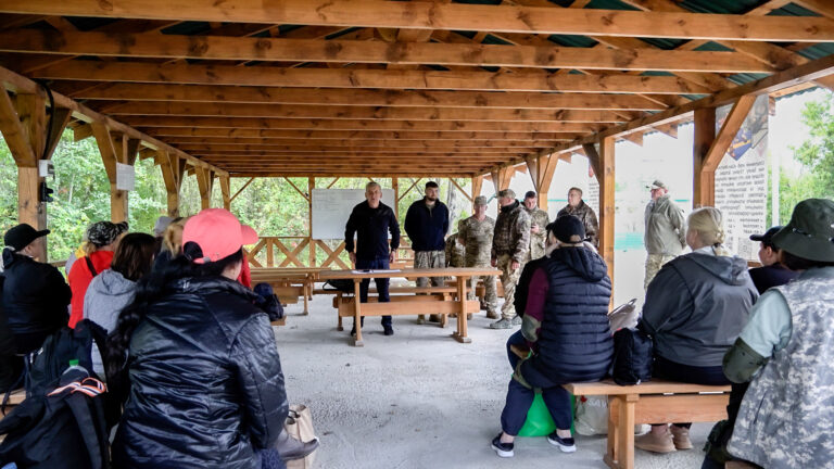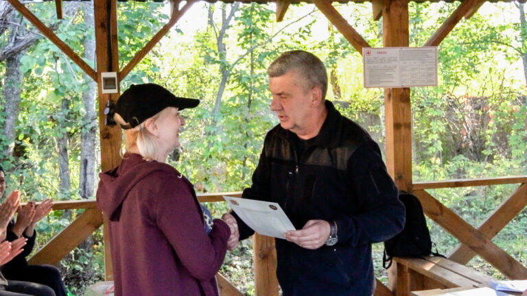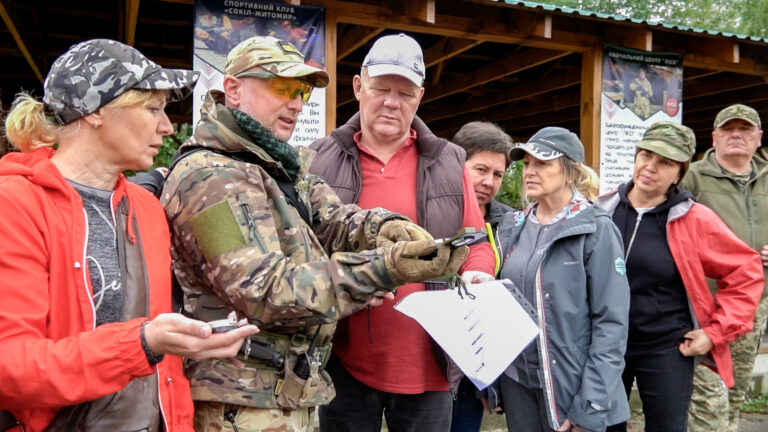 У Житомирському обласному центрі національного спротиву ще дві групи учасників завершили курс і отримали сертифікати 20 вересня під керівництвом Житомирського обласного центру підготовки громадян до національного спротиву Житомирської обласної ради відбулися завершальні тактико-стройові навчання для майже 30 учасників – чоловіків і жінок, які пройшли інтенсивний 48-годинний курс. Заняття проводилися за всебічного сприяння та на території навчального полігону громадської організації “Ліга сприяння обороні”. Програма розпочалася з фізичної розминки та вправ. Далі курсанти відпрацьовували переміщення визначеним маршрутом у лісовій місцевості з дотриманням правил прихованого руху. Під час цього завдання вони потрапляли в умовні засідки та тренувалися надавати допомогу «пораненим» і евакуйовувати їх. Навчання проводилися на трьох навчальних місцях: • Стрілецька підготовка – стрільба з АК-74 з відпрацюванням точності та прицільності. • Тактична підготовка – дії у складі підрозділу зі зброєю в умовах, наближених до бойових. • Домедична допомога – накладання турнікетів, пов’язок, надання першої допомоги та евакуація постраждалих. За результатами занять керівник Центру Олег Держанівський вручив сертифікати 26 випускникам. Нагадаємо, 10 липня під час 27-ї позачергової сесії Житомирської обласної ради восьмого скликання депутати ухвалили рішення про створення комунального закладу «Житомирський обласний центр підготовки громадян до національного спротиву» та призначення його керівника Олега Держанівського. Метою діяльності Центру є підвищення готовності населення до дій в умовах загроз, надзвичайних ситуацій та військової агресії.