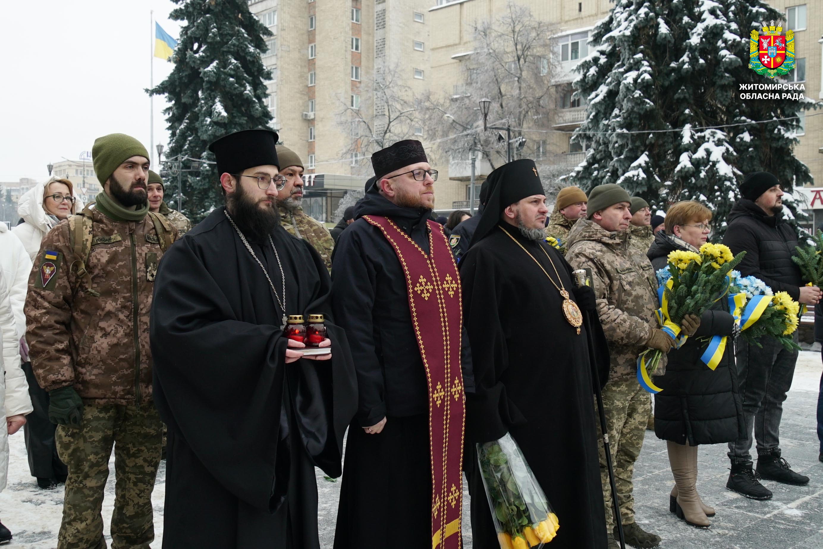В єдності сила: у Житомирі відбулися урочистості до Дня Соборності України 22 січня Україна відзначає День Соборності — державне свято, що символізує неподільність українських земель, духовну єдність народу та незалежність держави. У цей день ми згадуємо дві визначні події української історії: проголошення незалежності Української Народної Республіки та Акт Злуки українських земель. Так, 22 січня 1918 року IV Універсалом Центральної Ради вперше у XX столітті було проголошено незалежність України, а 22 січня 1919 року на Софійському майдані в Києві відбулося об’єднання УНР і ЗУНР в єдину державу. В умовах війни ця дата є символом незламної єдності України. З нагоди Дня Соборності у Житомирі відбулися урочистості вшанування. У заходах взяли участь перший заступник голови Житомирської обласної ради Олег Дзюбенко, депутат обласної ради Олександр Дмитрук, представники виконавчого апарату, керівництво Житомирської ОВА та міської ради, родини Героїв, військовослужбовці, духовенство, рятувальники, правоохоронці та громадськість. Урочистості розпочалися на Алеї Слави Героїв. Учасники зібрання долучилися до загальнонаціональної хвилини мовчання та спільно виконали Державний Гімн у супроводі оркестру Житомирського військового інституту. Далі відбулося покладання квітів до пам'ятних стендів та встановлення лампадок до пам’ятного знака Героям Небесної Сотні. Окрім того, присутні встановили лампади до стели Героям Небесної Сотні біля Свято-Михайлівського кафедрального собору та поклали квіти до пам’ятника Івану Огієнку на вулиці Михайлівській. На майдані Перемоги відбулося покладання квітів до пам’ятного знака «Захисникам України у війні з російським агресором». Представники Ради Християнських церков Житомирщини провели молитву за Україну. Також учасники поклали квіти до пам’ятних місць видатних діячів української державності та вшанували загиблих і померлих учасників АТО/ООС біля меморіальних стендів. День Соборності України — це нагадування про те, що єдність, свобода та соборність є цінностями, які зміцнюють наш народ і визначають наше майбутнє. Через єдність Україна продовжує свій шлях до Перемоги, незалежності й процвітання.