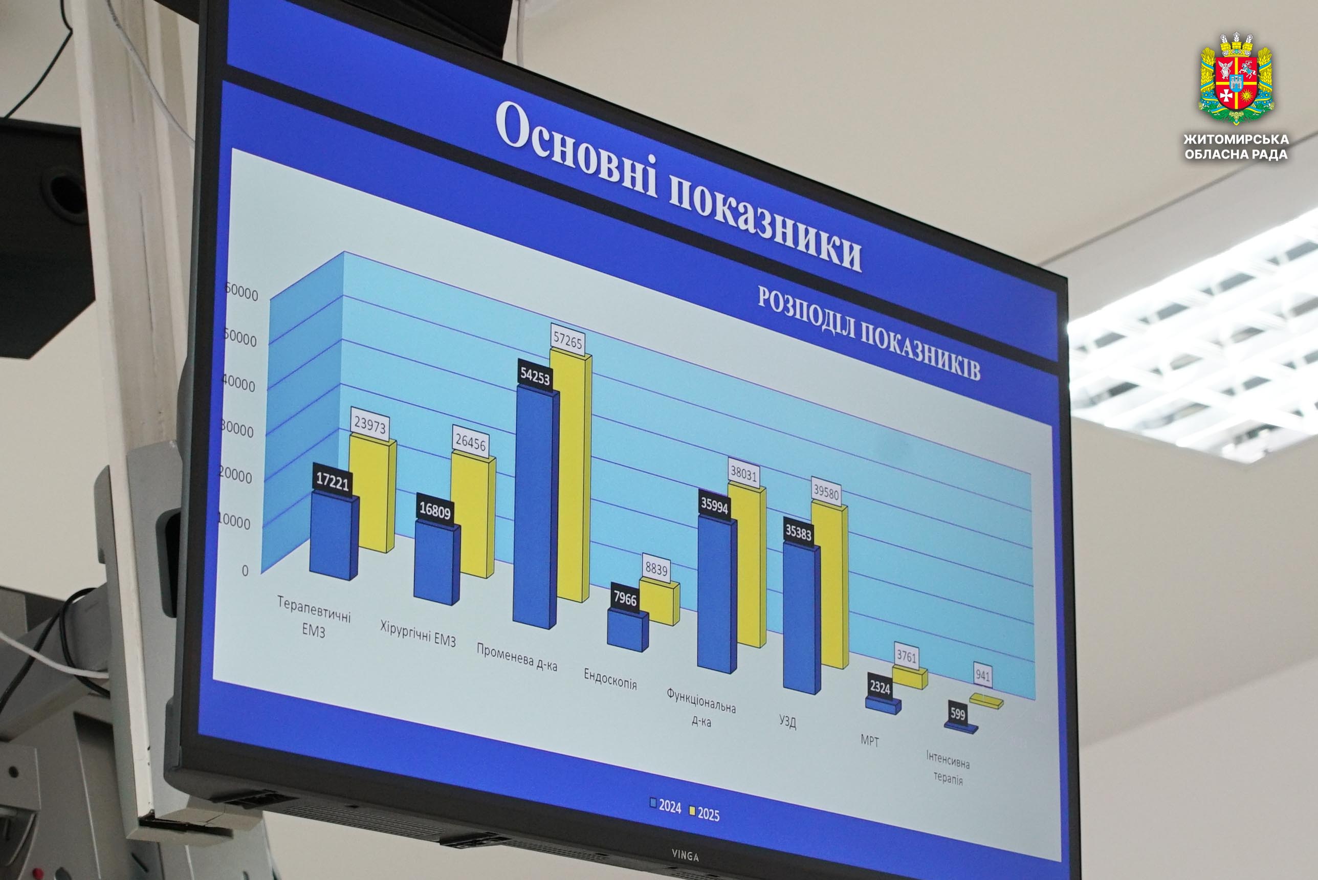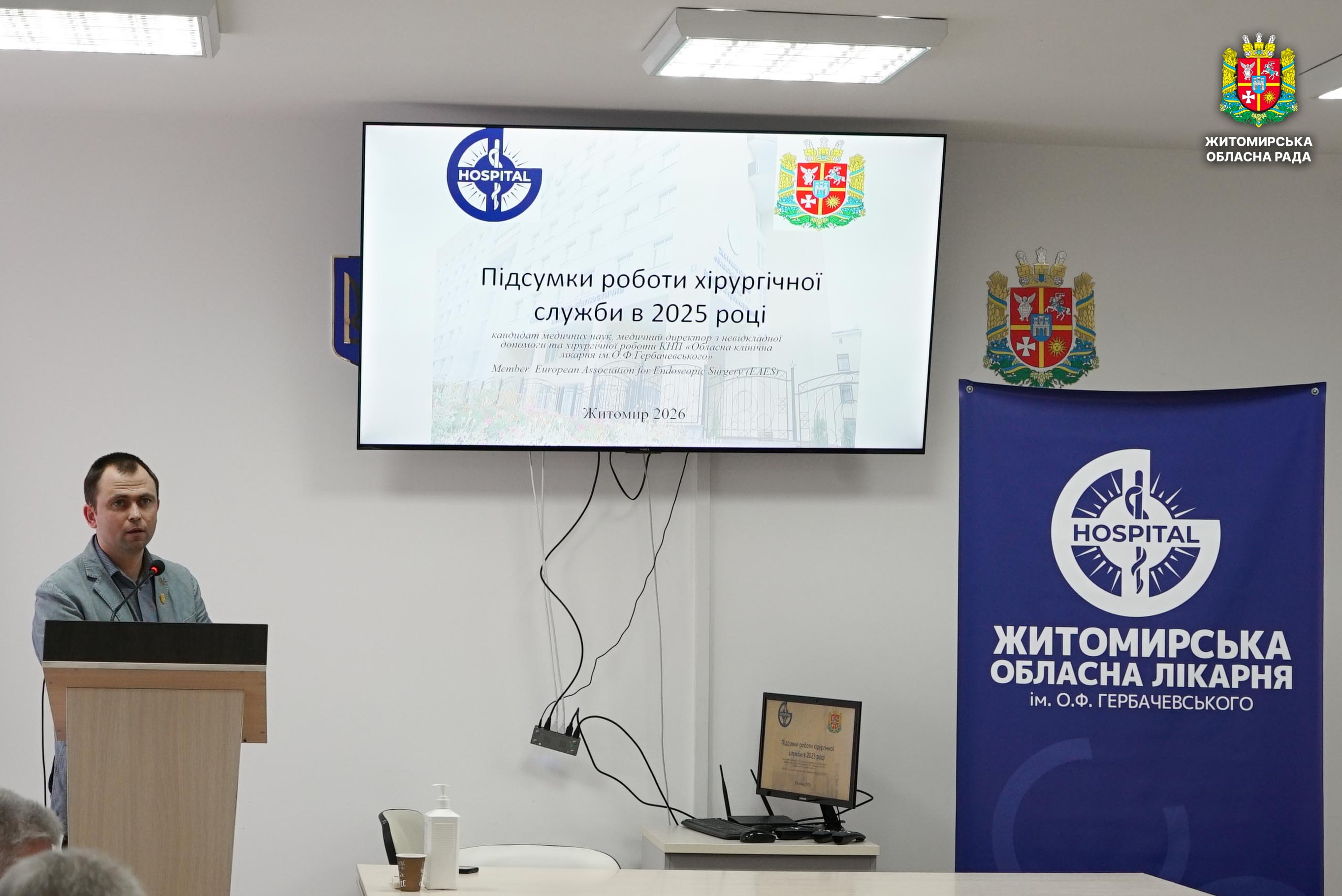 В обласній клінічній лікарні ім. О. Ф. Гербачевського відбулося засідання підсумкової медичної ради 25 лютого у КНП «Обласна клінічна лікарня ім. О. Ф. Гербачевського» Житомирської обласної ради відбулося засідання підсумкової медичної ради, під час якого представлено результати роботи закладу за 2025 рік та визначено перспективи подальшого удосконалення і розвитку у 2026 році. Окрім членів медичної ради та керівників відділень лікарні, у засіданні взяли участь керівництво та депутати Житомирської обласної ради. На початку засідання виконувач обов’язків генерального директора закладу Олександр Веселовський подякував колективу за професіоналізм та відданість роботі, зазначивши, що спільна праця та постійне вдосконалення медичних послуг дозволили лікарні отримати у 2025 році на третину більше коштів від НСЗУ, ніж у 2024 році. Він також поінформував присутніх про основні досягнення лікарні за минулий рік. Зокрема, впровадження нової медичної інформаційної системи з хмарним зберіганням даних, що дозволило оптимізувати роботу медичного персоналу та покращити доступність медичних послуг для пацієнтів. У результаті обсяг надання стаціонарної медичної допомоги зріс на 48%, а лікарня нині працює з повним завантаженням ліжкового фонду. Протягом року проведено ремонт операційного блоку, відкрито сучасне приймальне відділення, встановлено МРТ, придбано власне лабораторне обладнання, що дозволяє зменшити вартість обстежень. Також створено амбулаторне клінічне відділення для проведення профілактичних оглядів. Серед пріоритетних напрямів розвитку закладу було визначено кардіохірургію, офтальмологічну службу та реконструктивну хірургію. У лікарні впроваджено сучасні рентген-ендоваскулярні втручання, започатковано систему заміни кришталика ока, розширено можливості ендопротезування суглобів та відкрито відділення реконструктивної хірургії, де виконують пересадку шкіри з використанням мікрохірургічних технологій, що є особливо актуальним для лікування поранених військовослужбовців. Посилено кардіологічну службу, придбано обладнання для лікування порушень серцевого ритму та три апарати гемодіалізу, що дозволило розширити доступ пацієнтів до життєво необхідної допомоги. Також під час засідання було анонсовано проведення реконструкції приміщень лікарні, яка передбачає створення сучасного простору для фізичної та медико-психологічної реабілітації на базі колишнього обласного консультативно-діагностичного центру. Окрім того, учасникам зібрання були представлені підсумки лікувально-діагностичної роботи лікарні в умовах контрактування з Національною службою здоров’я України, результати діяльності хірургічної служби та плани її розвитку, а також презентовано економічний аналіз роботи закладу. Керівництво та депутати Житомирської обласної ради відзначили високі результати роботи лікарні, ефективне впровадження сучасних технологій та постійну роботу з удосконалення матеріально-технічної бази. Також депутати побажали закладу реалізації планів, постійної уваги до пацієнтів та подальшого підвищення якості медичних послуг.