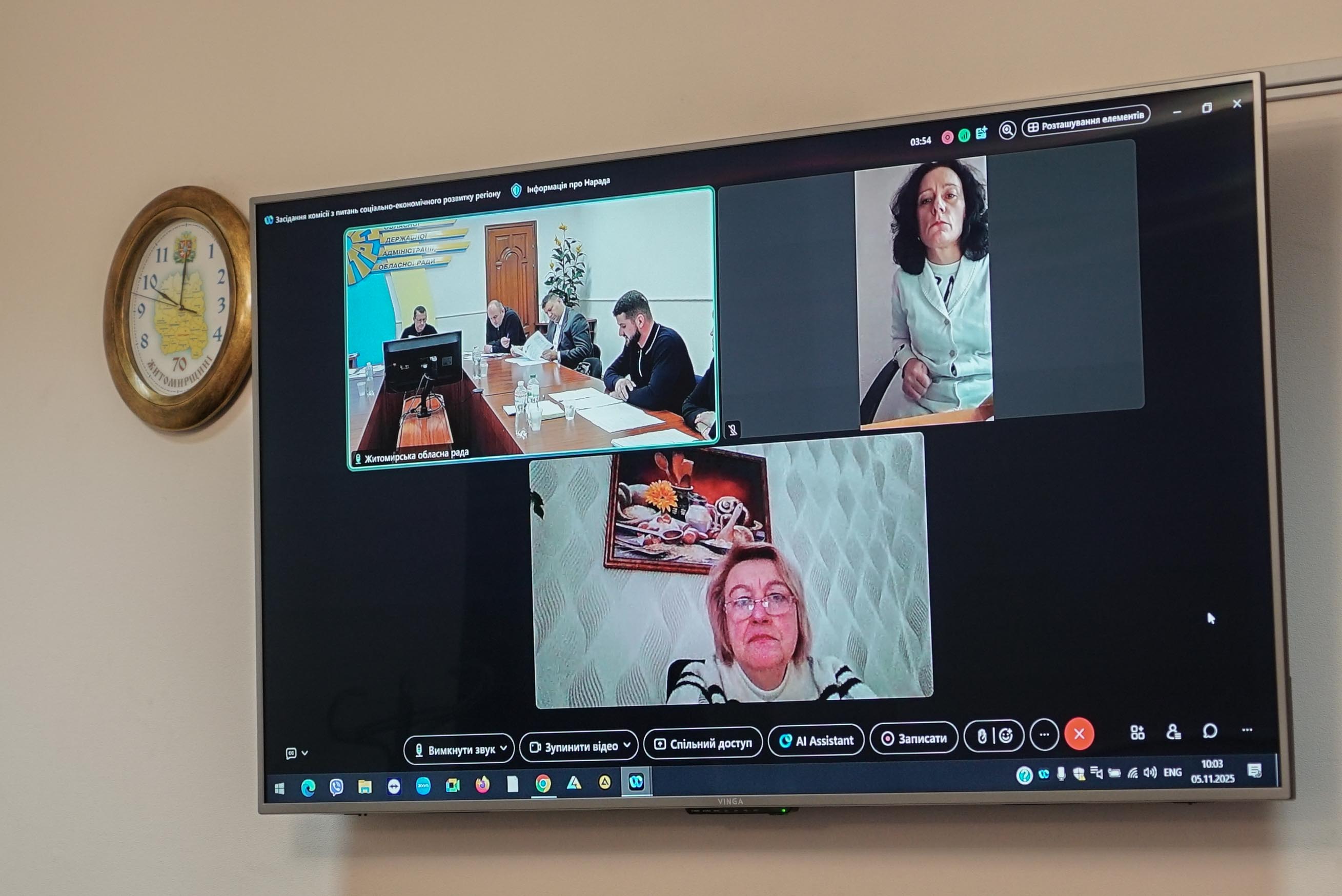 В обласній раді провели засідання двох постійних комісій 5 листопада в обласній раді відбулися засідання двох постійних комісій: з питань соціально-економічного розвитку, інвестиційної діяльності, будівництва, транспорту та зв’язку та засідання з питань регламенту, депутатської діяльності, місцевого самоврядування, законності, правопорядку та антикорупційної діяльності. У роботі комісій взяли участь перший заступник голови Житомирської обласної ради Олег Дзюбенко, заступники начальника Житомирської ОВА Наталія Арендарчук та Олександр Федько. На засіданні постійної комісії з питань "соціально-економічного розвитку", яка пройшла під головуванням Віталія Сороки, депутати розглянули внесення змін до Програми економічного і соціального розвитку Житомирської області на 2025, погодивши відповідний проєкт рішення. Про зміни доповів директор Департаменту агропромислового розвитку та економічної політики Житомирської ОВА Павло Куц. У своїй доповіді він зазначив, що зміни, які вносяться до Програми, передбачають, зокрема, доповнення заходів до розділу «Безбарʼєрність». За його словами це дозволить забезпечити реалізацію безбарʼєрних маршрутів у населених пунктах області для покращення життєдіяльності людей з інвалідністю та інших маломобільних груп населення. Депутати також розглянули звернення Коростенської районної, Овруцької міської та низки селищних і сільських рад щодо незадовільного стану автомобільних доріг на їхніх територіях. Заступник директора Департаменту регіонального розвитку Житомирської ОВА Володимир Гришковець повідомив, що на утриманні області перебуває понад 6,9 тис. км доріг загального користування і 370 мостів. Однак у 2025 році фінансування на їх утримання складає лише 62,7 млн грн, що становить менше 10% від необхідного і не дозволяє проводити капітальні ремонти та реконструкції. Попри обмежений бюджет, за дев’ять місяців поточного року вдалося здійснити понад 45 тис. кв. м ямкового ремонту, профілювати понад 1,3 тис. км доріг та встановити 100 дорожніх знаків, що частково покращило стан дорожньої інфраструктури та рівень безпеки руху. Під час засідання «регламентної» комісії, яку провів Олег Скидан, депутати заслухали Інформацію про діяльність органів Житомирської обласної прокуратури за шість місяців 2025 року та підтримали відповідний проєкт рішення. Перший заступник керівника обласної прокуратури Олег Мостиховський прозвітував про результати роботи прокуратури, зокрема у напрямках протидії злочинності, корупції, захисту інтересів держави, прав і свобод громадян, а також пріоритетних завдань на наступний період. Комісія також розглянула питання щодо обрання представників громадськості до складу двох поліцейських комісій — Головного управління Національної поліції в Житомирській області Національної поліції України та Управління поліції охорони. Після заслуховування кандидатів депутати погодили відповідний проєкт рішення та рекомендували внести його на розгляд сесії обласної ради, включивши до складу поліцейської комісії Головного управління Національної поліції в Житомирській області таких представників громадськості: Василя Козела та Леоніда Врублевського. Також комісія погодила проєкт рішення щодо формування складу поліцейської комісії Управління поліції охорони в Жито